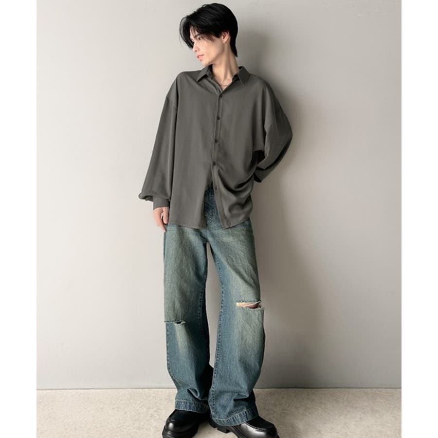 上質なとろみ素材。オーバーサイズシャツ(長袖)