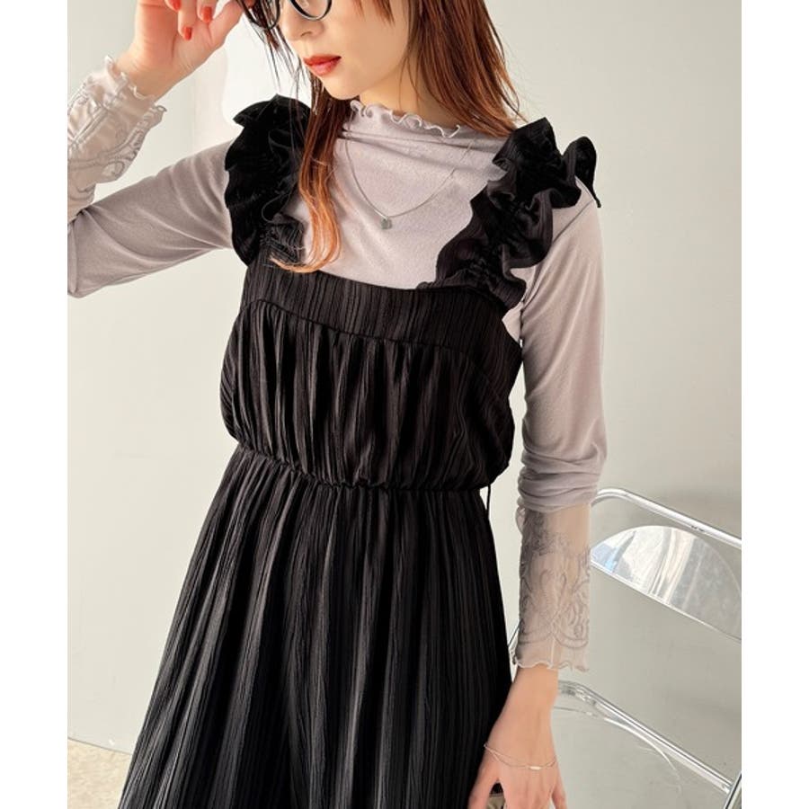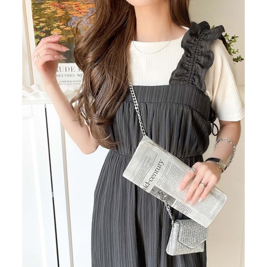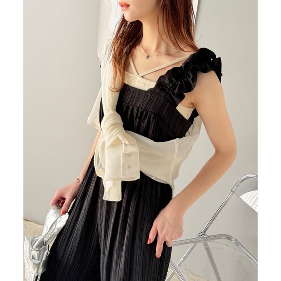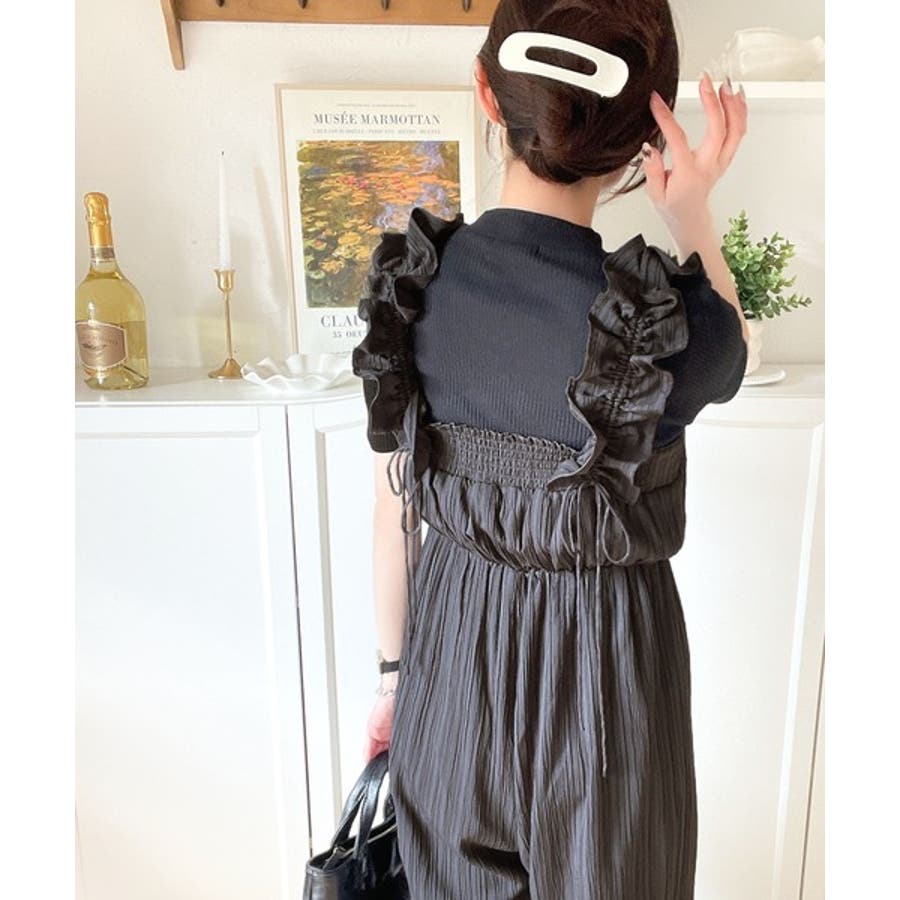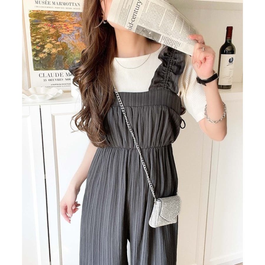 フリルギャザーが女性らしさを引き立てるオールインワン。