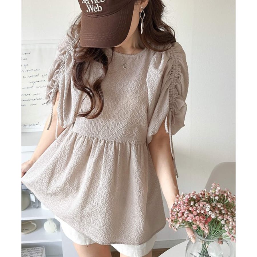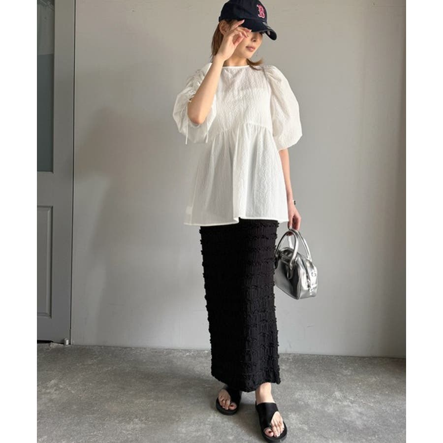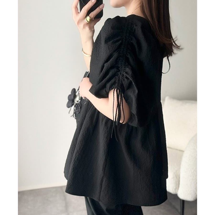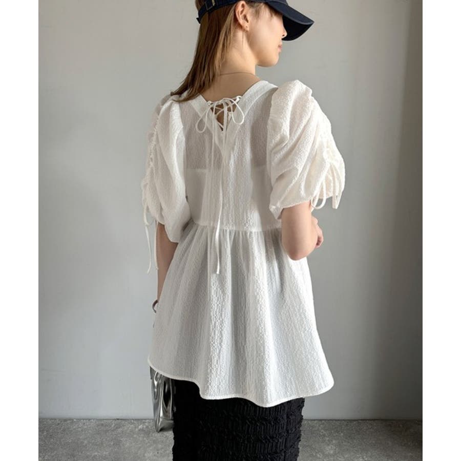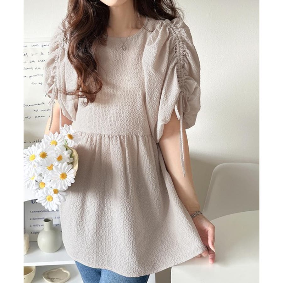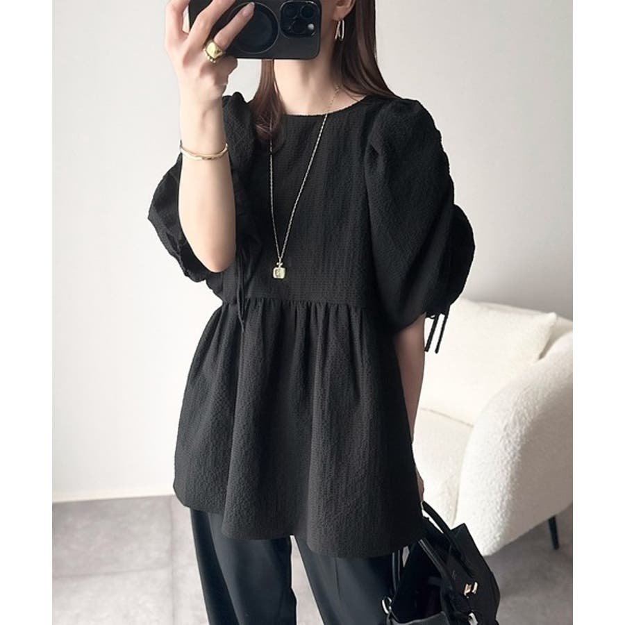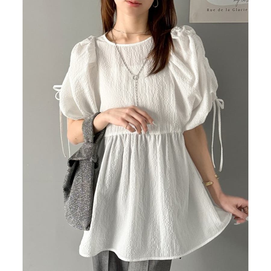 パフギャザーでふんわりとしたシルエットが特徴のこのブラウス。