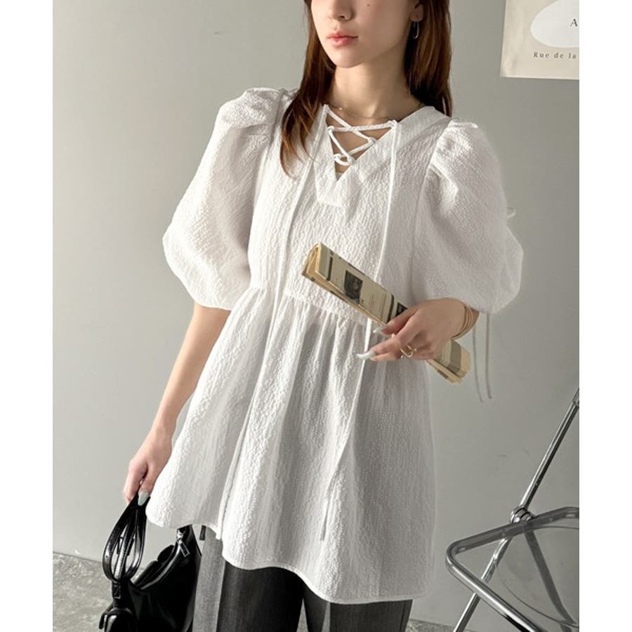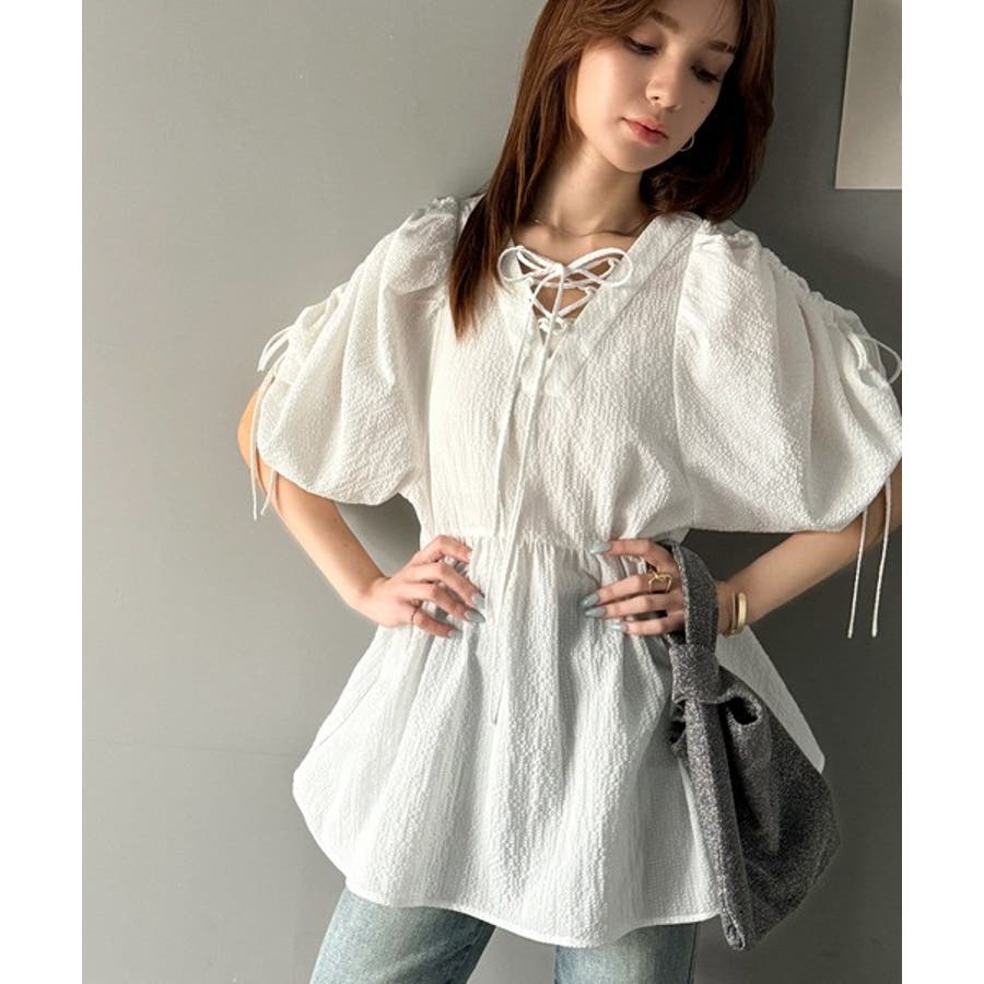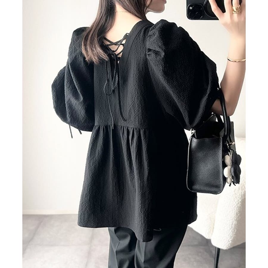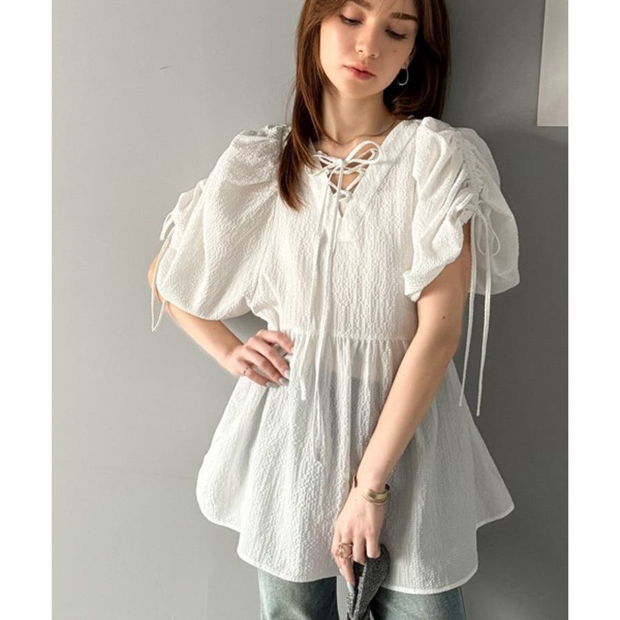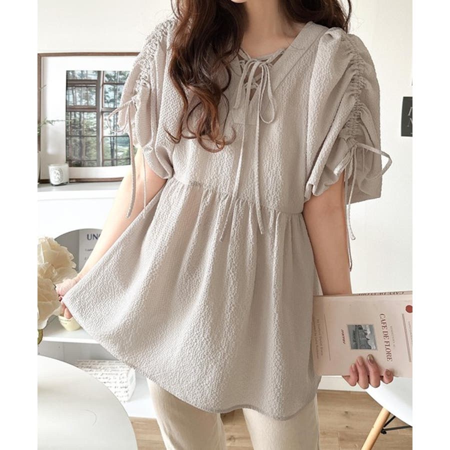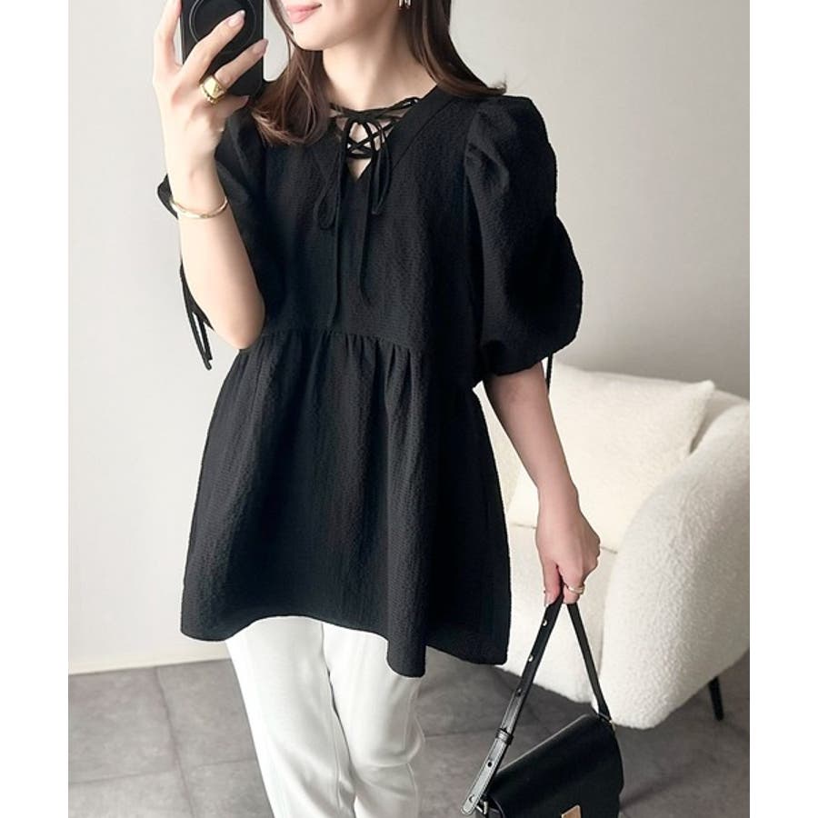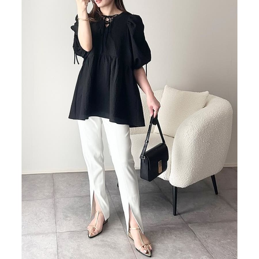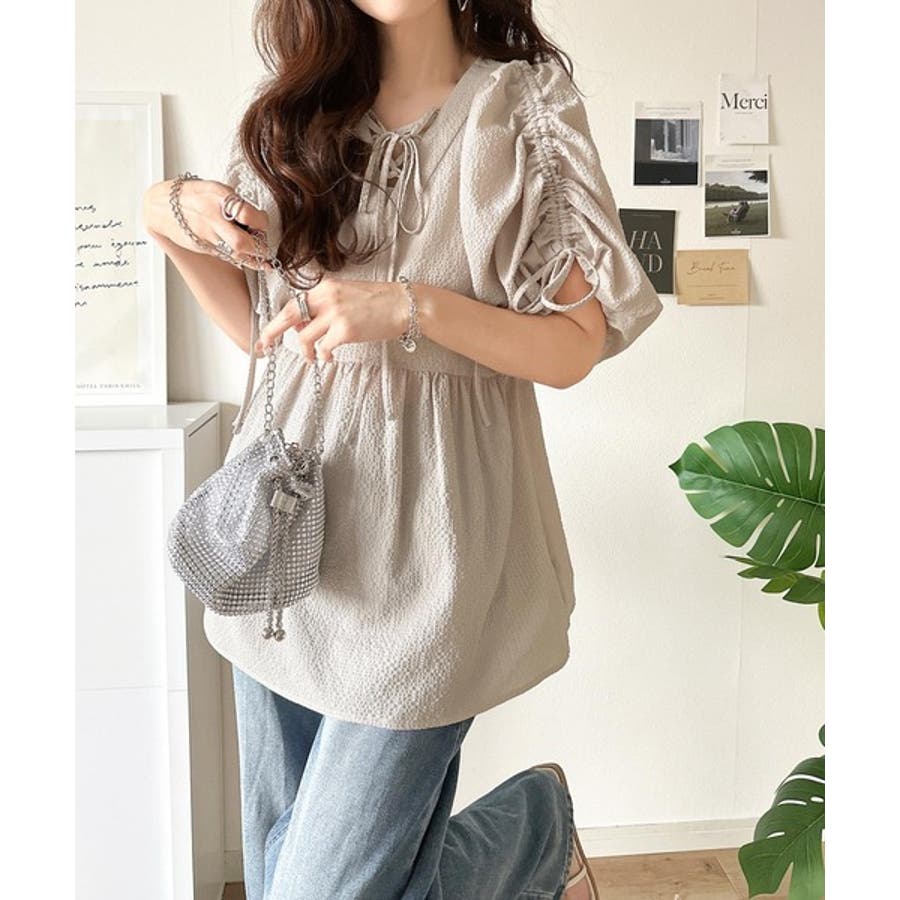 パフギャザーでふんわりとしたシルエットが特徴のこのブラウス。
