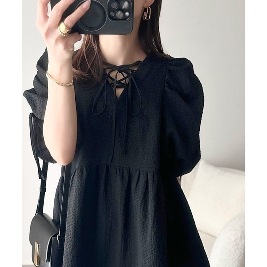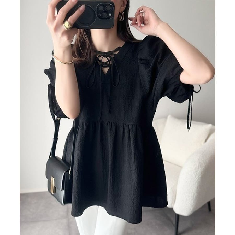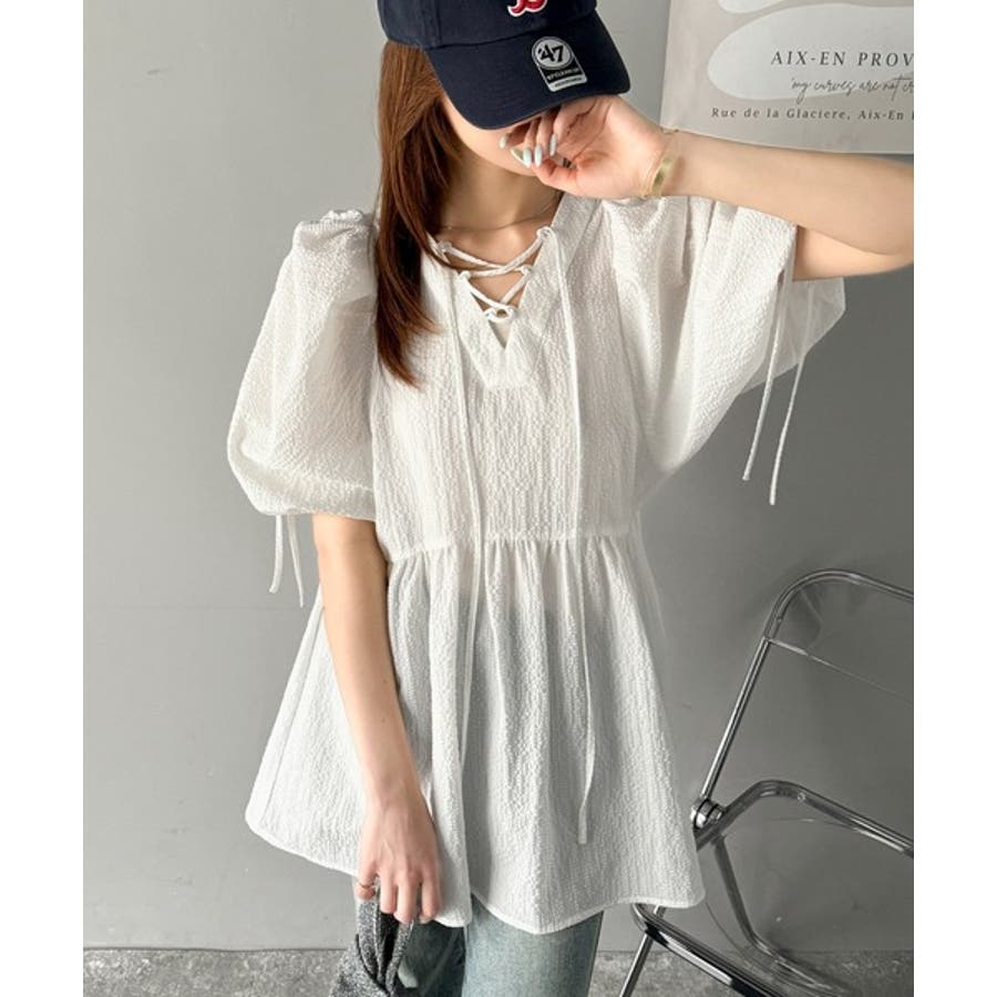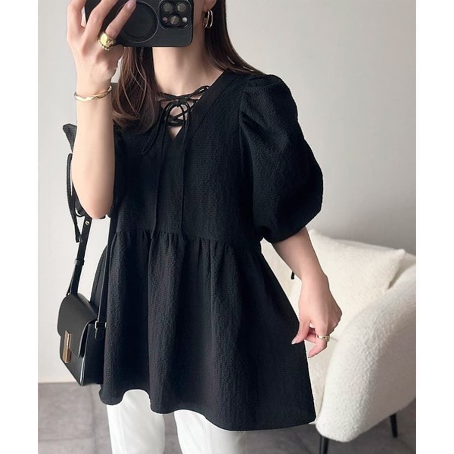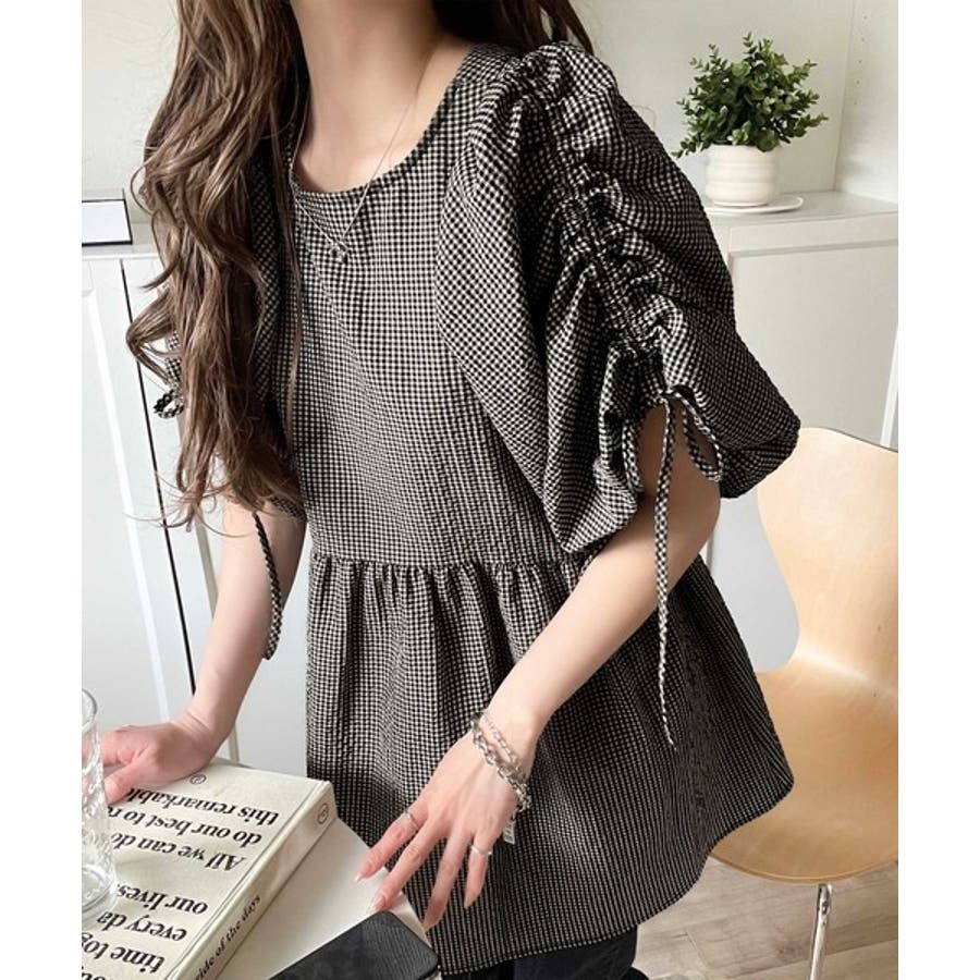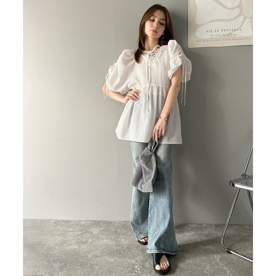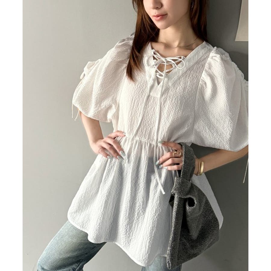 パフギャザーでふんわりとしたシルエットが特徴のこのブラウス。