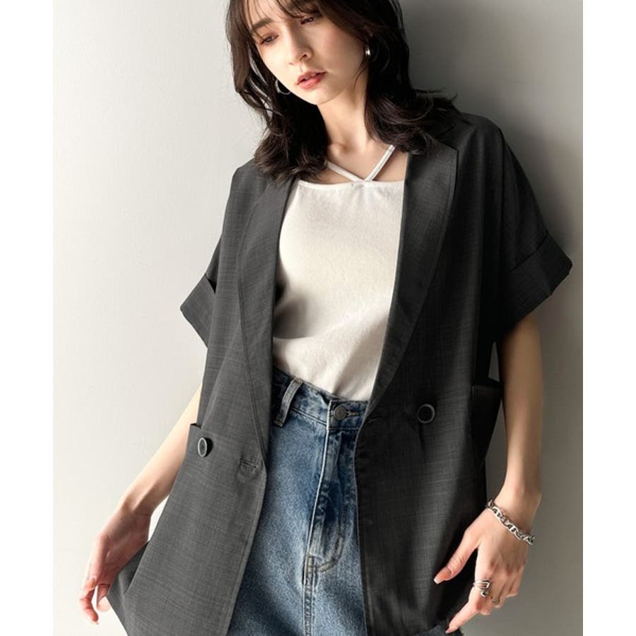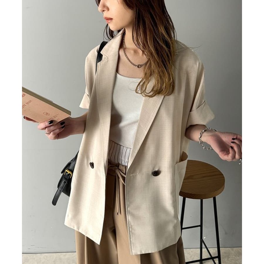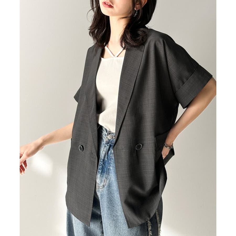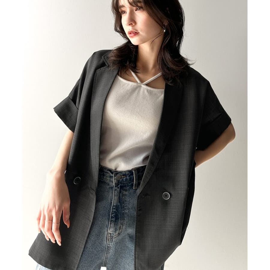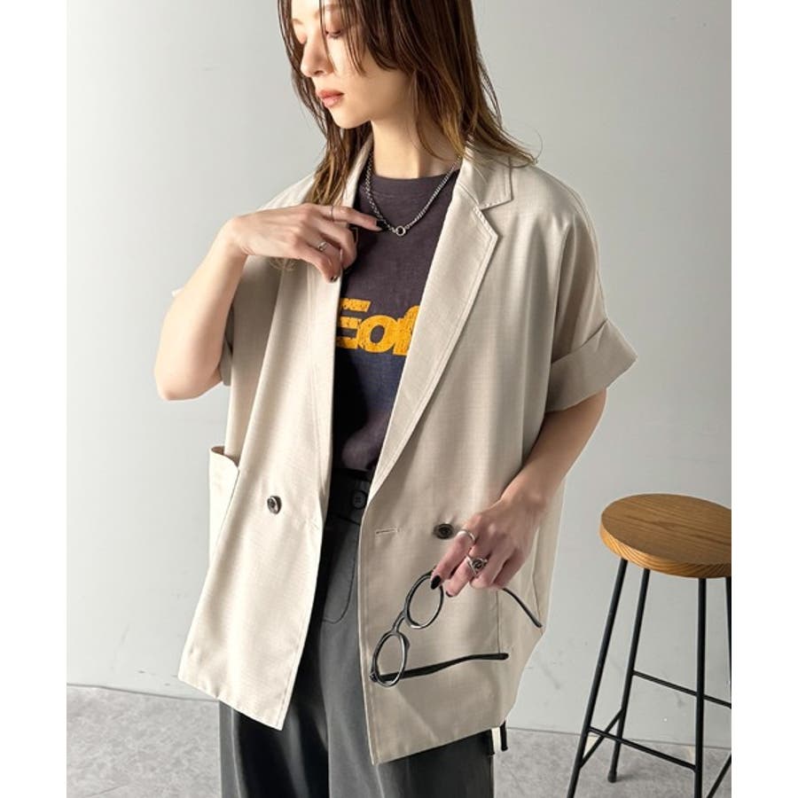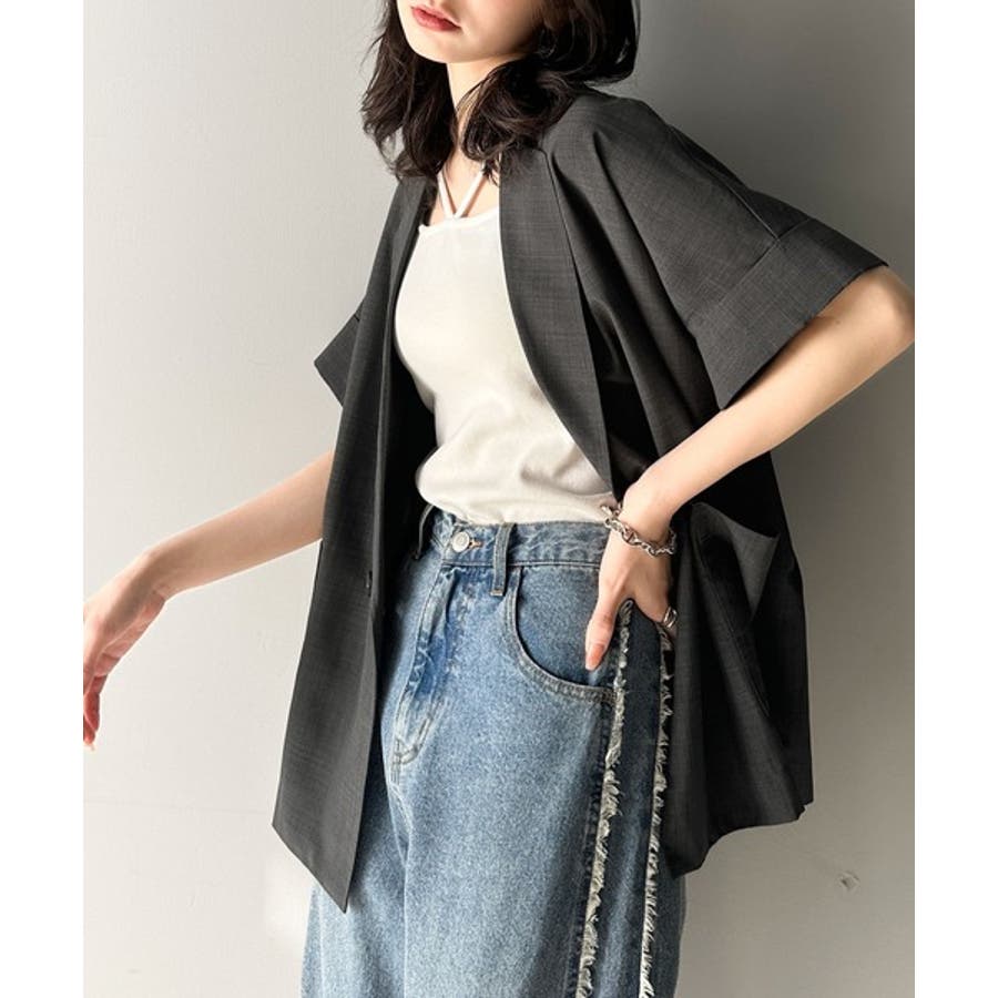 シアードルマンショートスリーブジャケットは、抜け感のあるシアー素材が特徴。