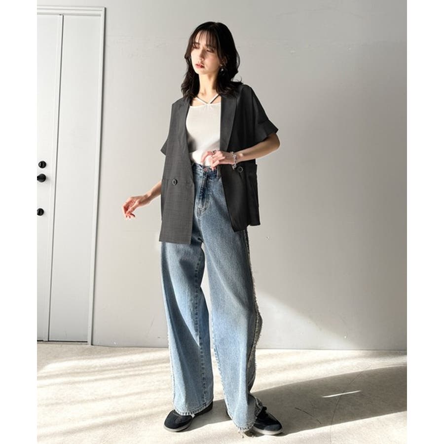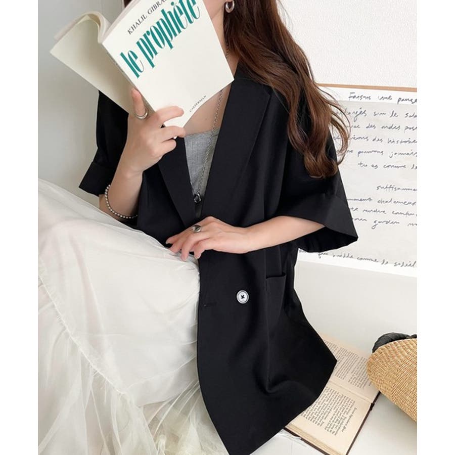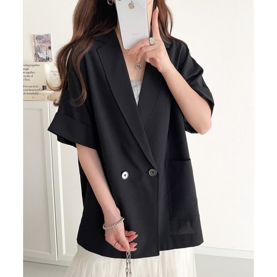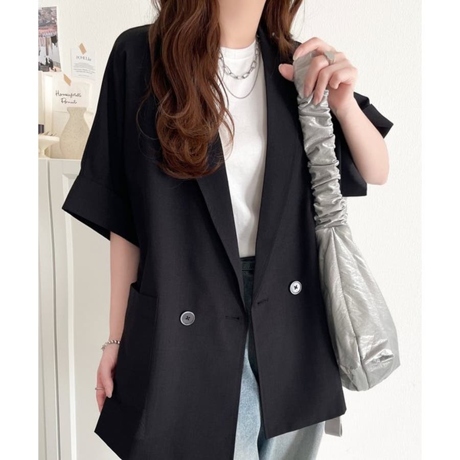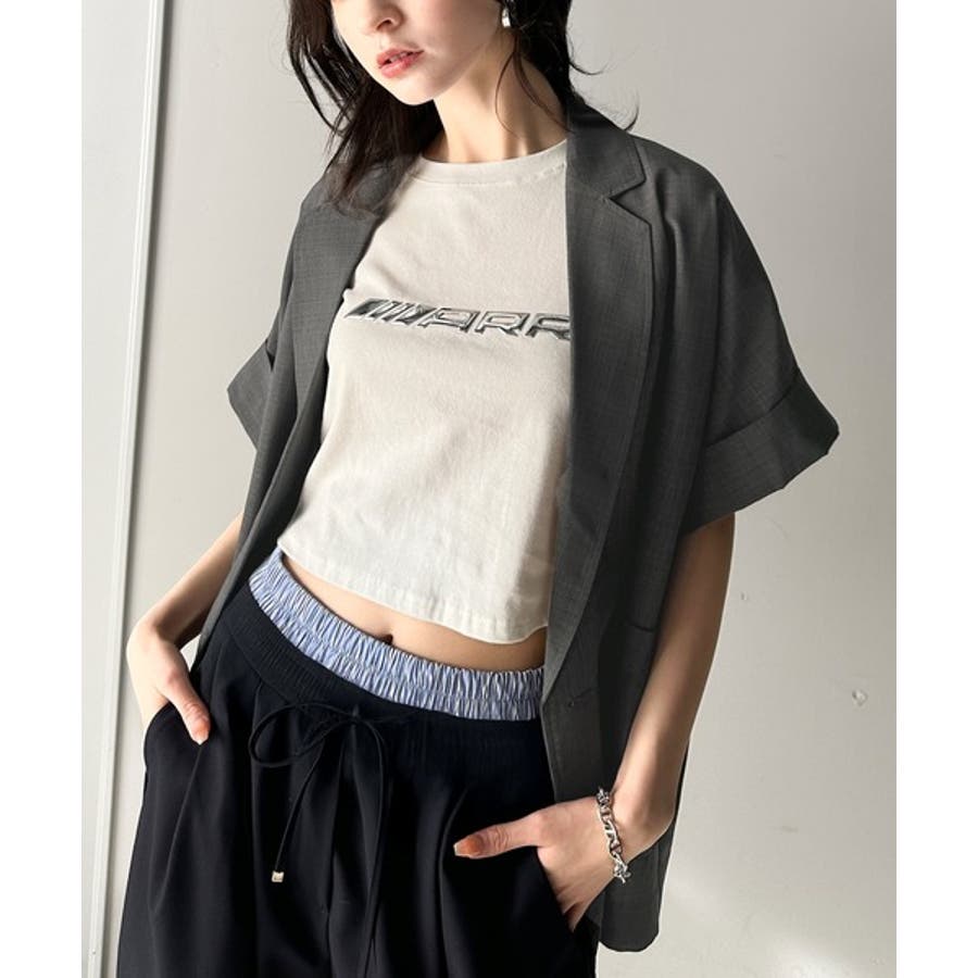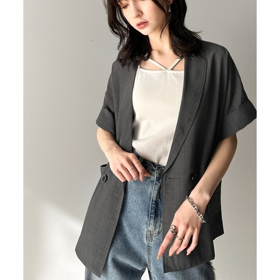 シアードルマンショートスリーブジャケットは、抜け感のあるシアー素材が特徴。