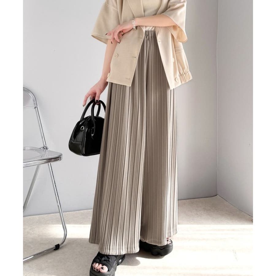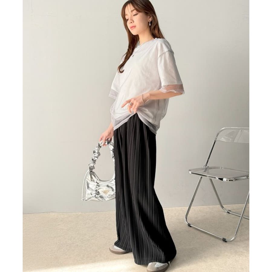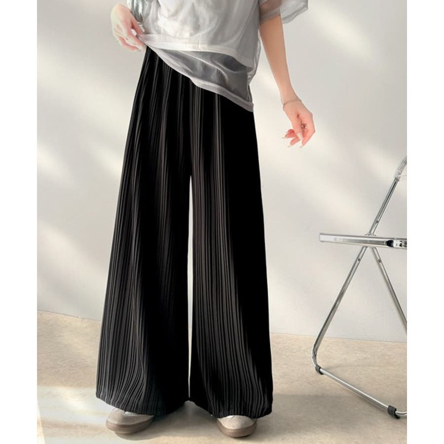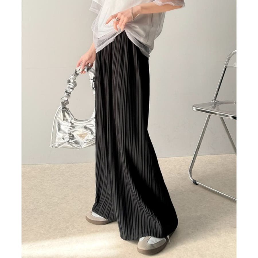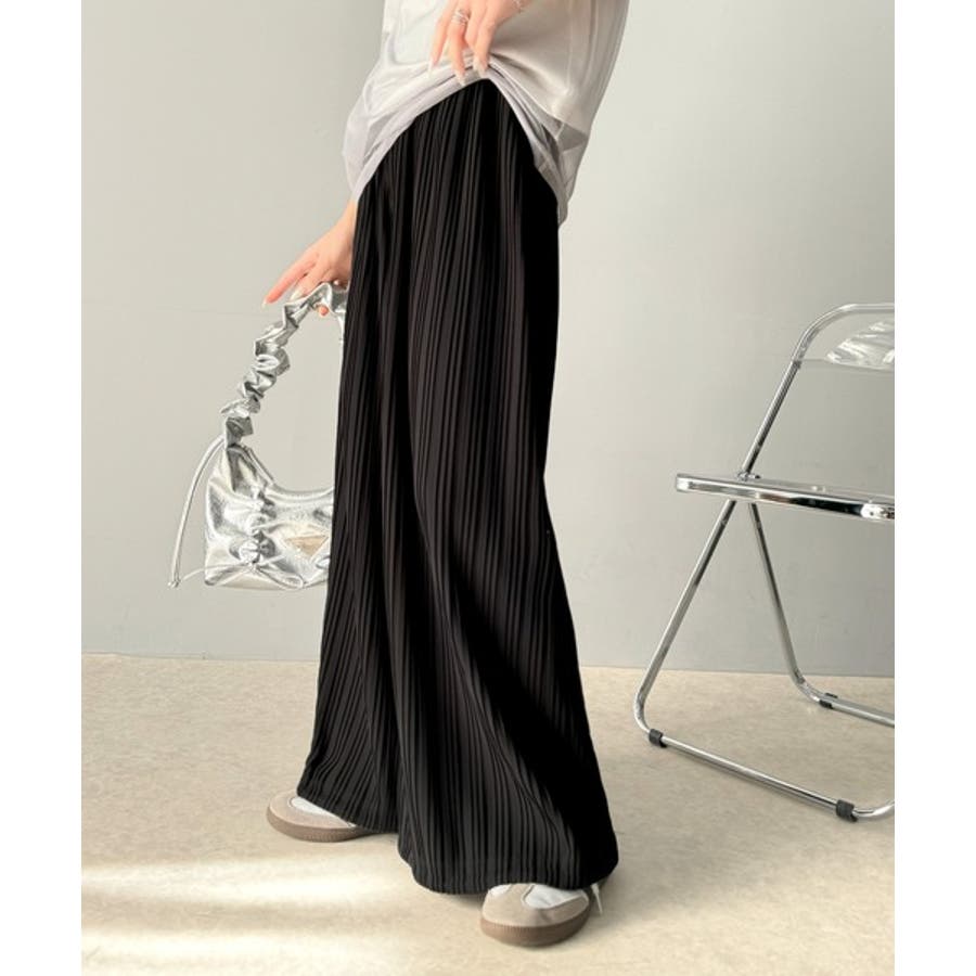 さらにプリーツの縦ラインが脚長効果を強調。
