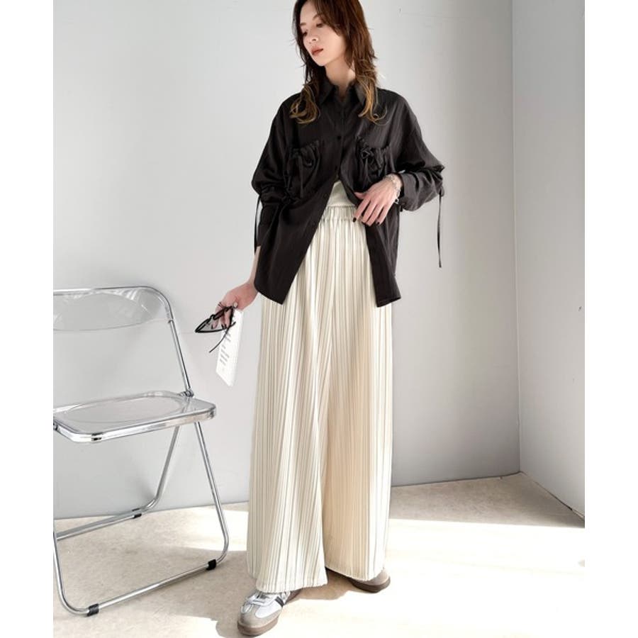 スタイルアップが叶う。2way裾ドロストプリーツ素材ワイドパンツ