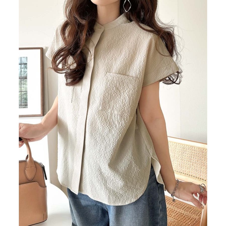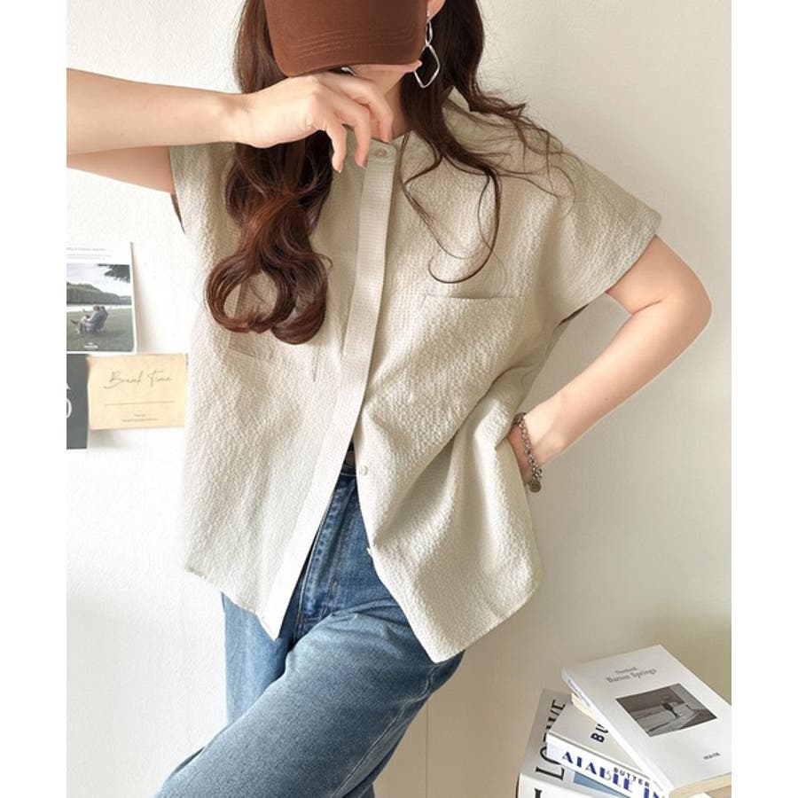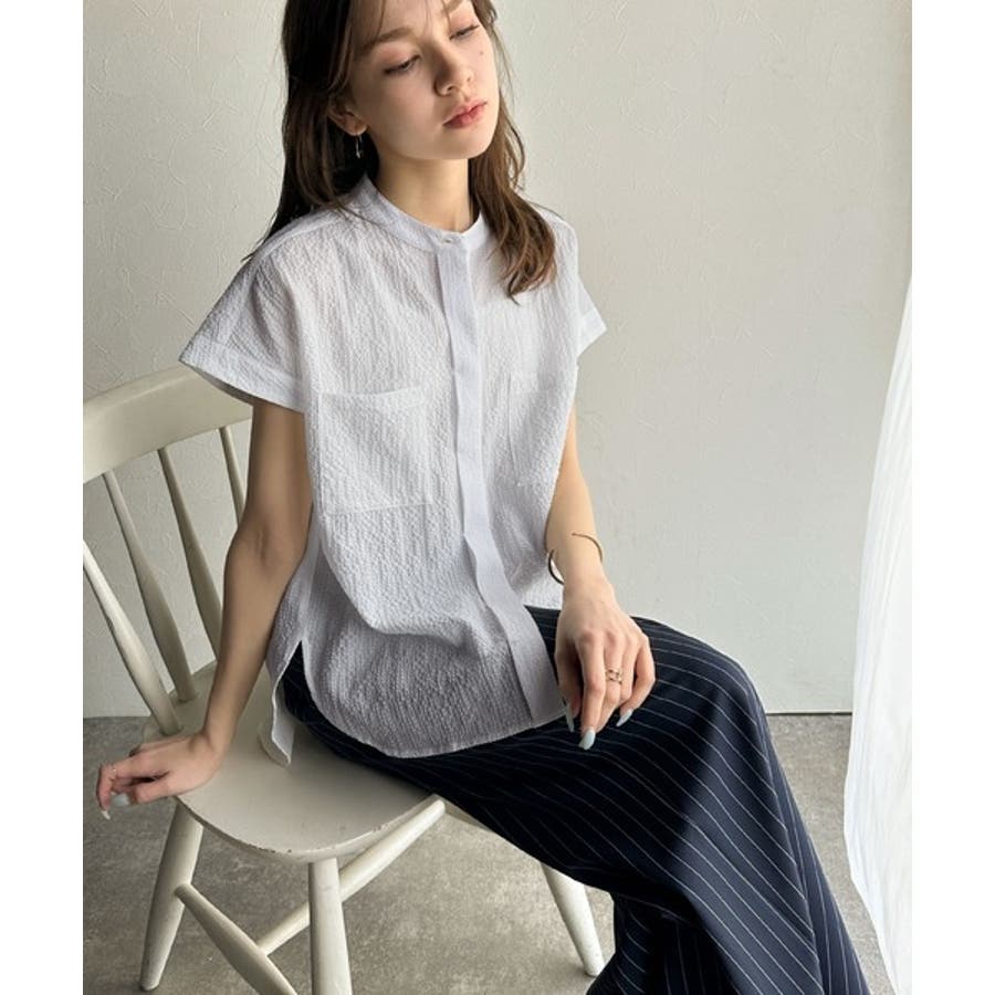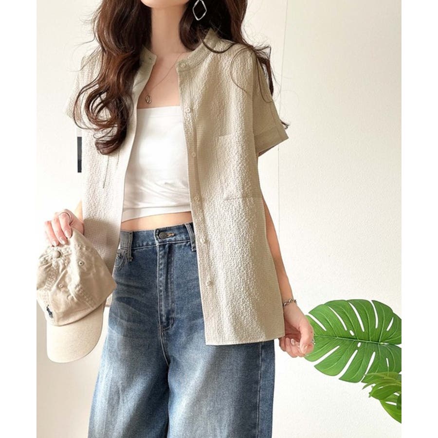 シアサッカー素材で、春夏にぴったりの軽やかな着こなしを楽しめます。