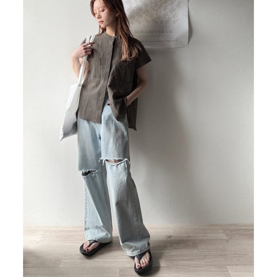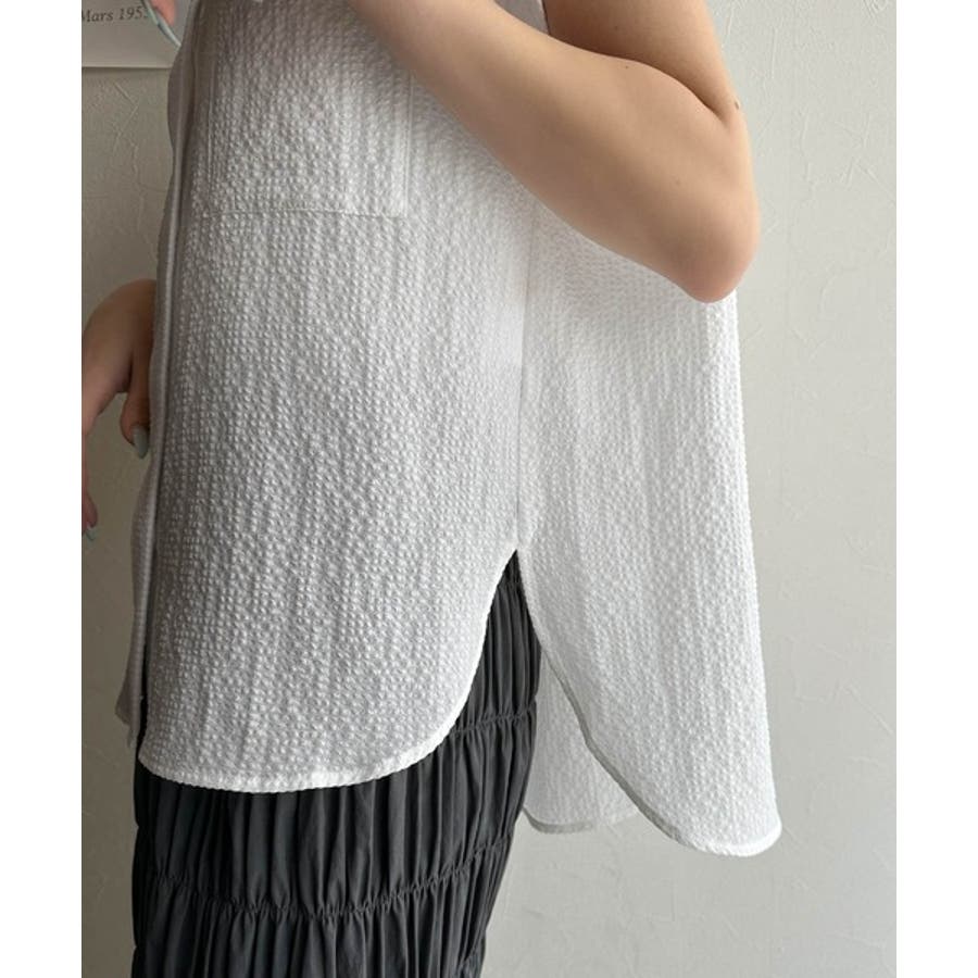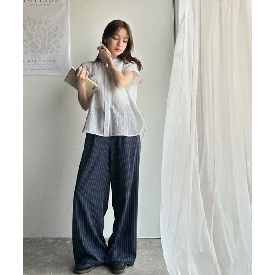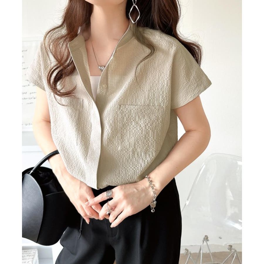 シアサッカー素材で、春夏にぴったりの軽やかな着こなしを楽しめます。