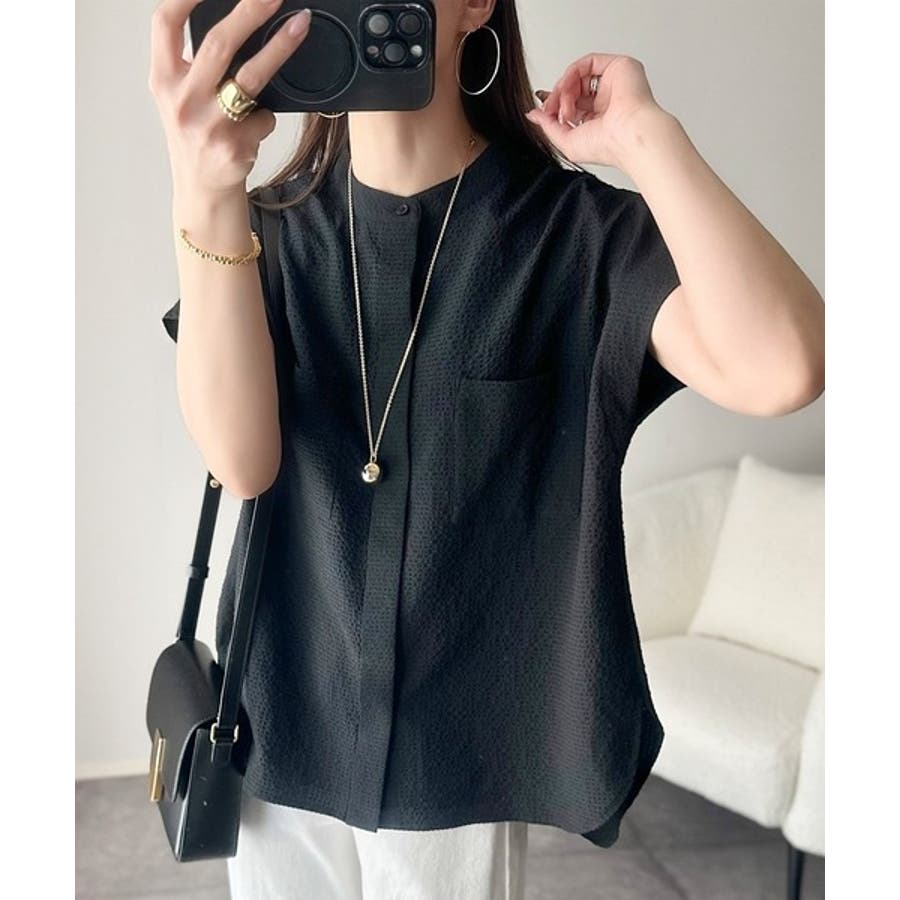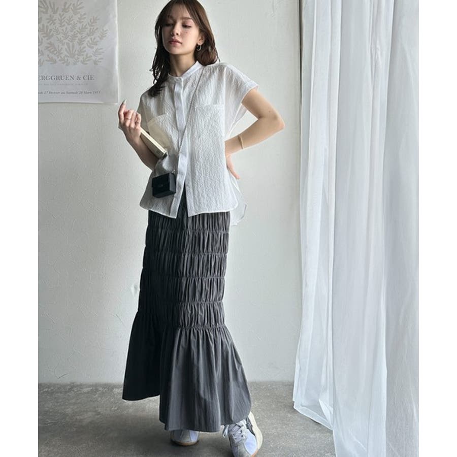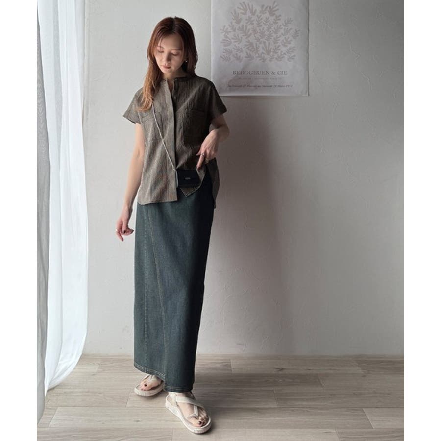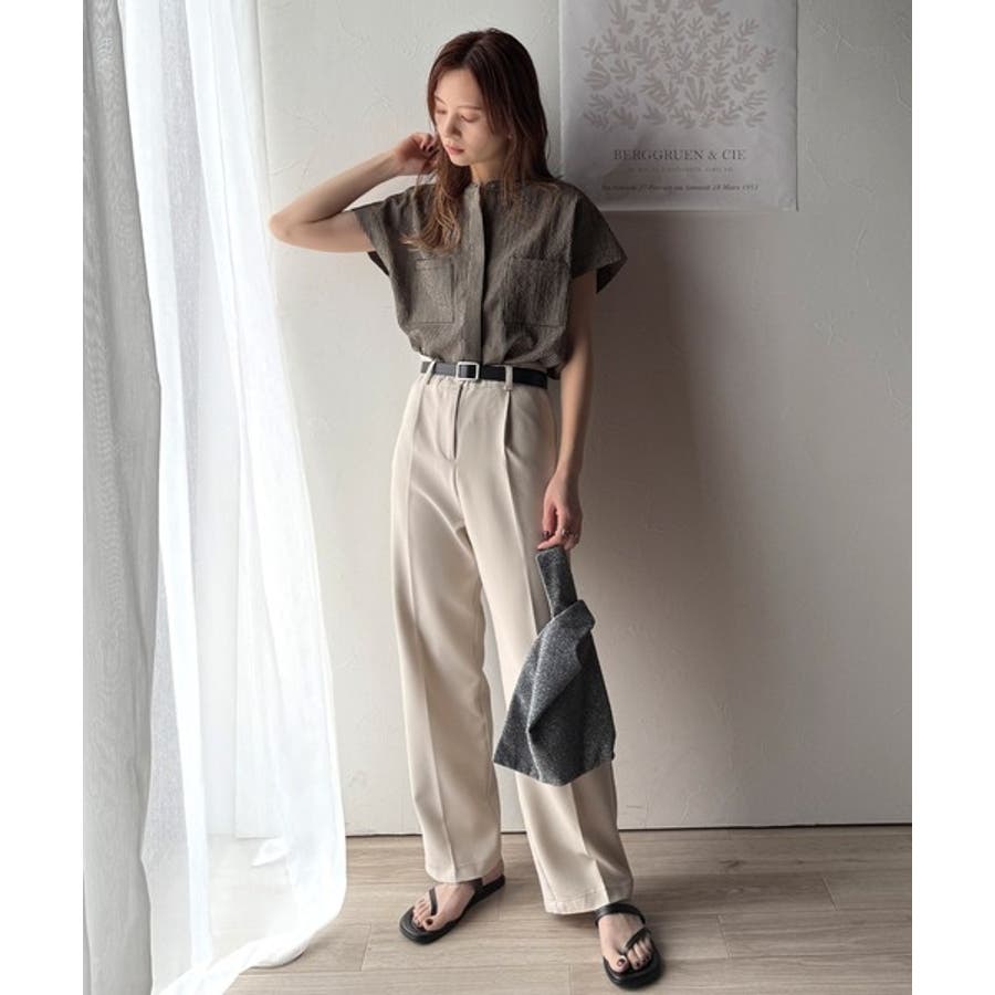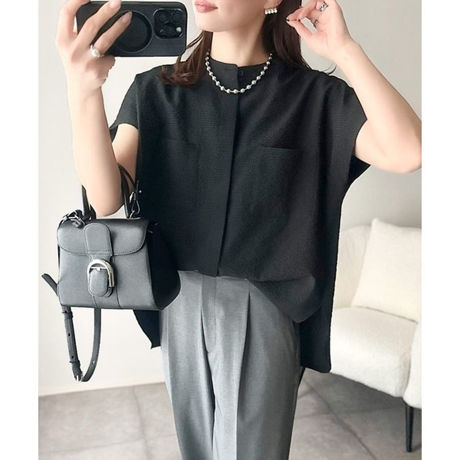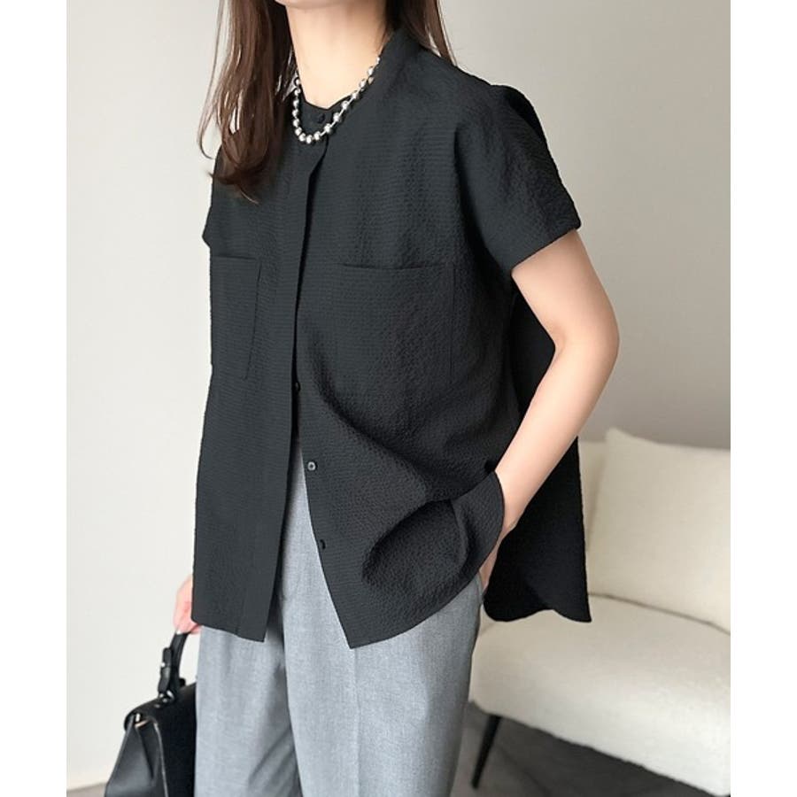 バンドカラーのデザインは、首元をすっきり見せ、異なるボトムスやレイヤリングスタイルにも使い回しが可能です。
