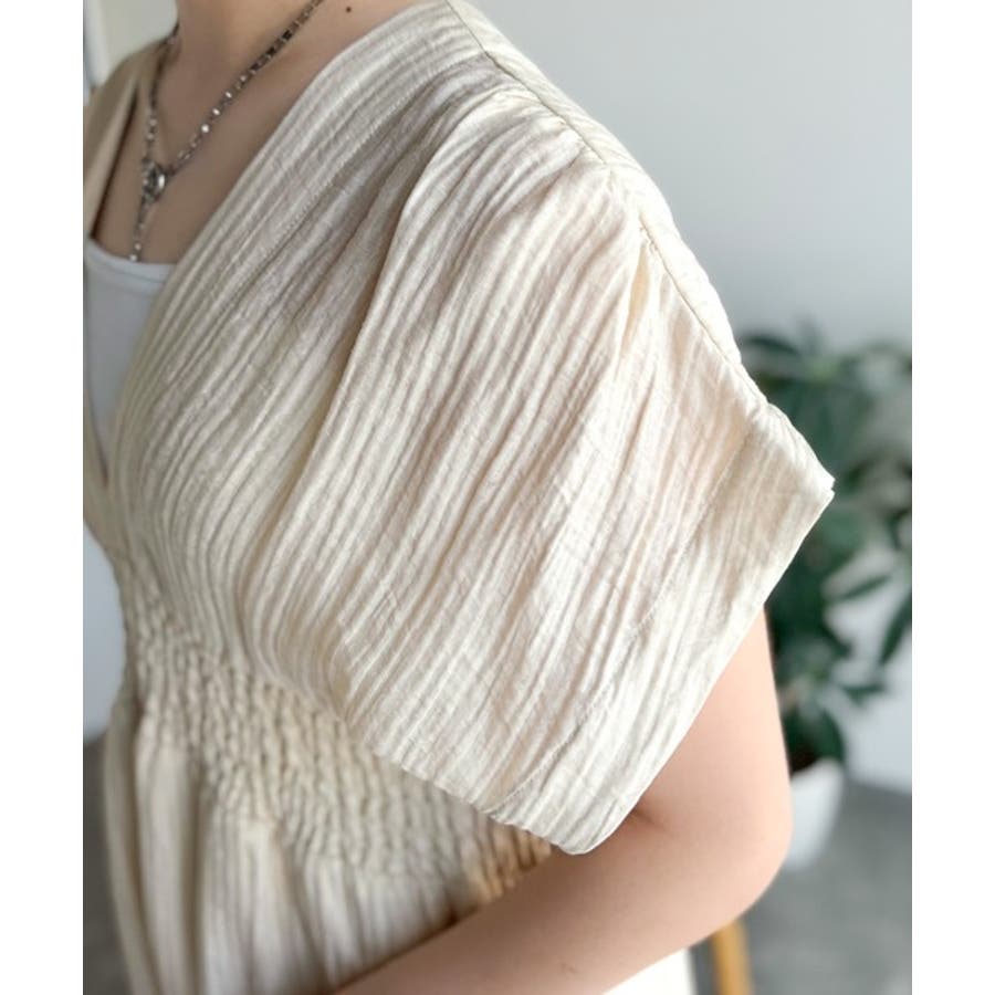 肩や二の腕をさりげなくカバーしてくれる袖丈も魅力。