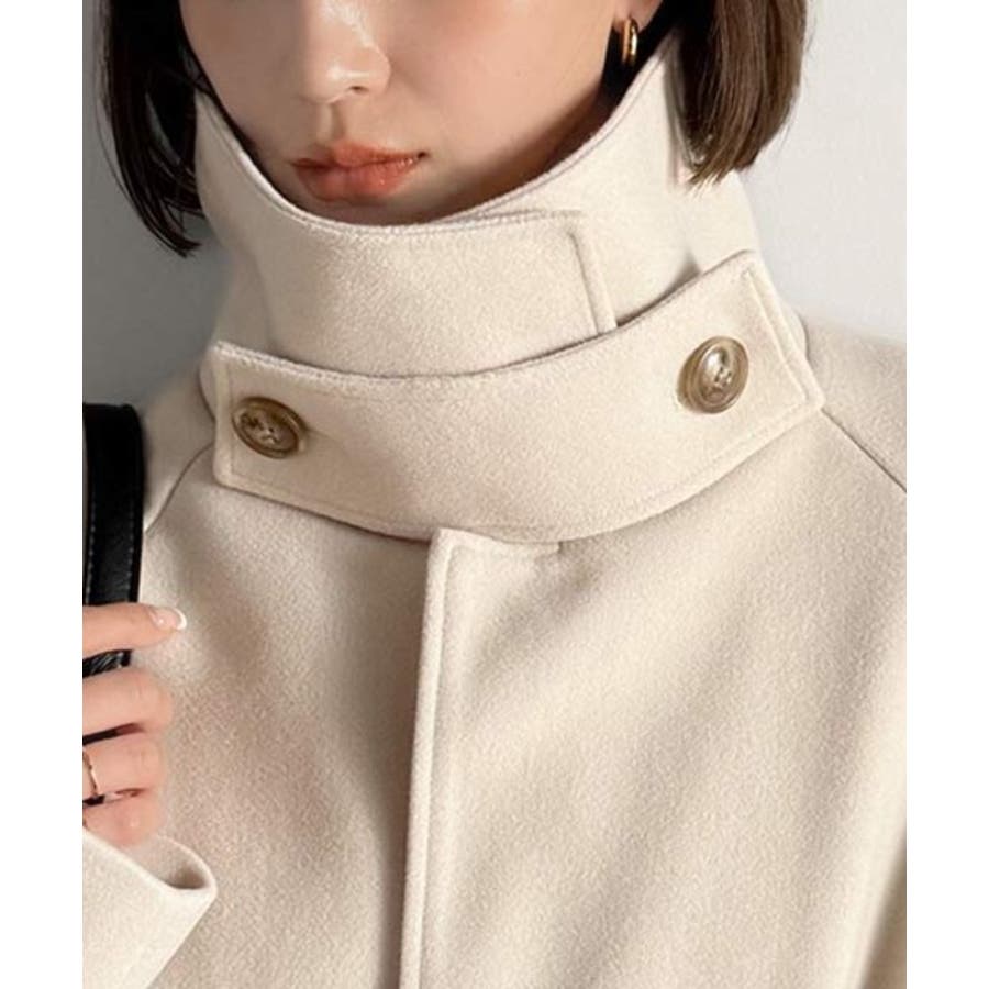 360度上品魅せ。衿2way比翼スタンドウール調ステンカラーコート(ロング丈)