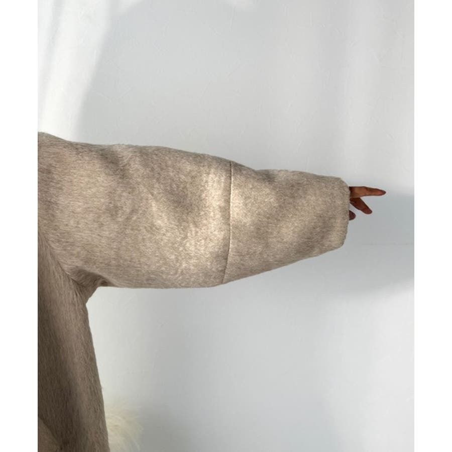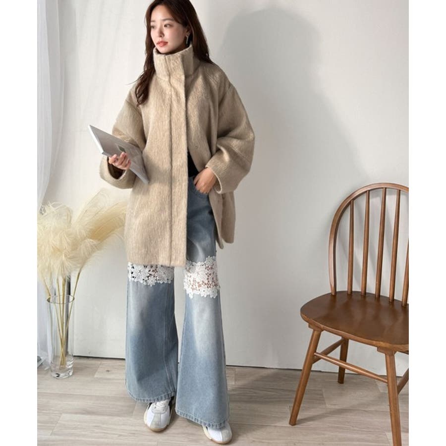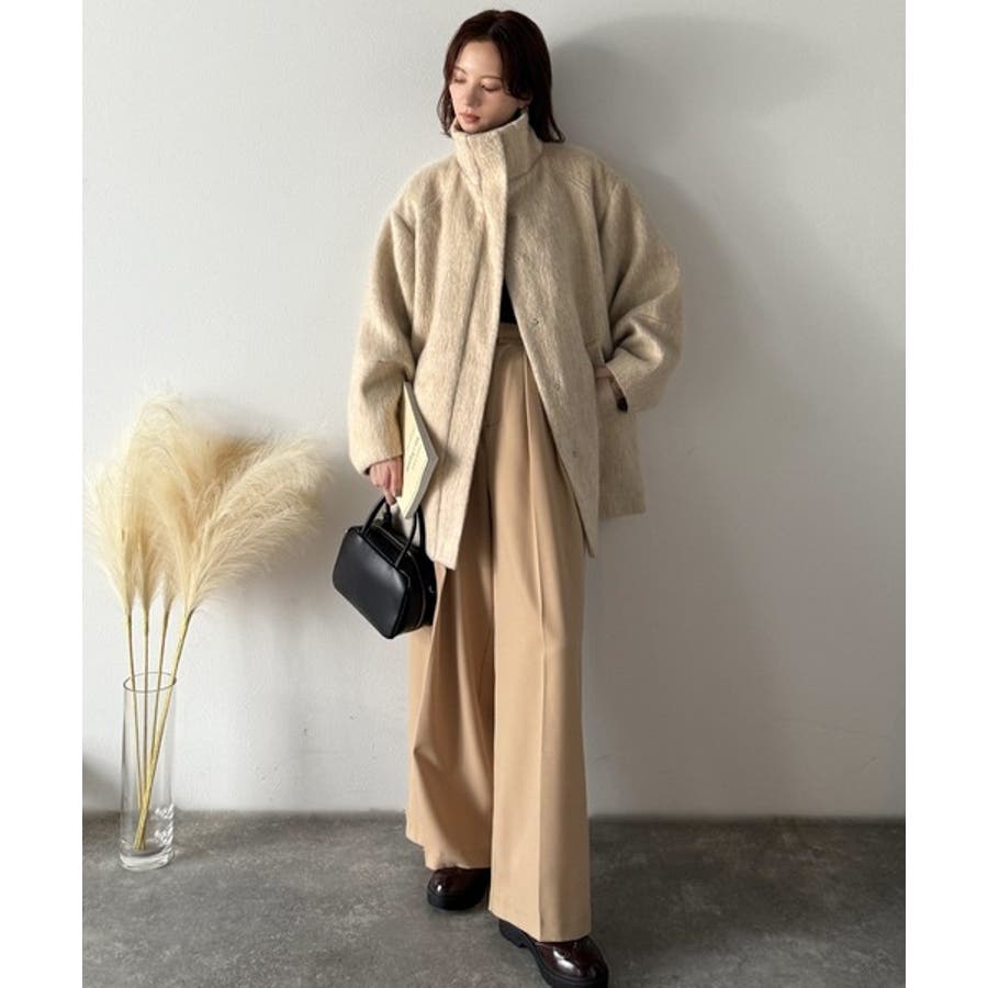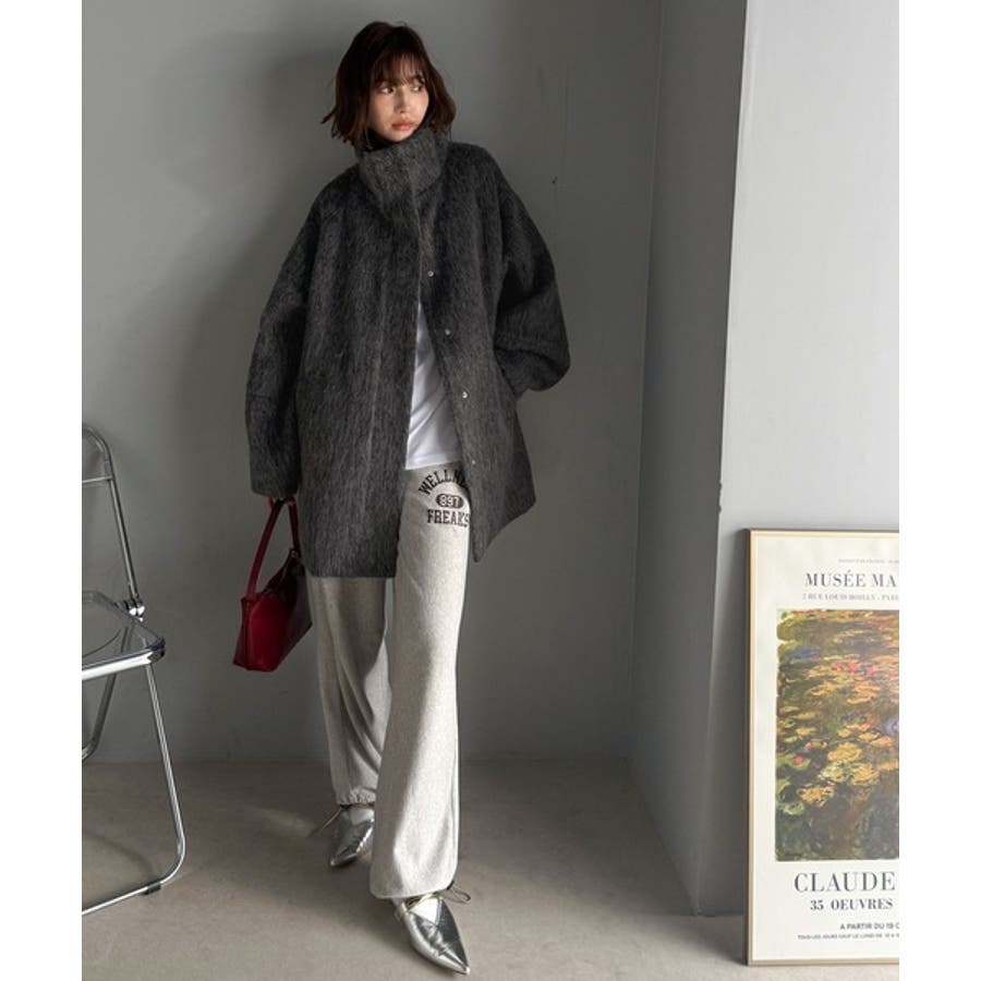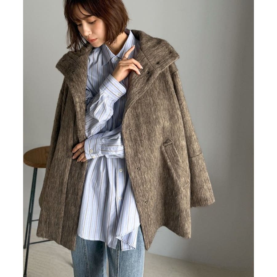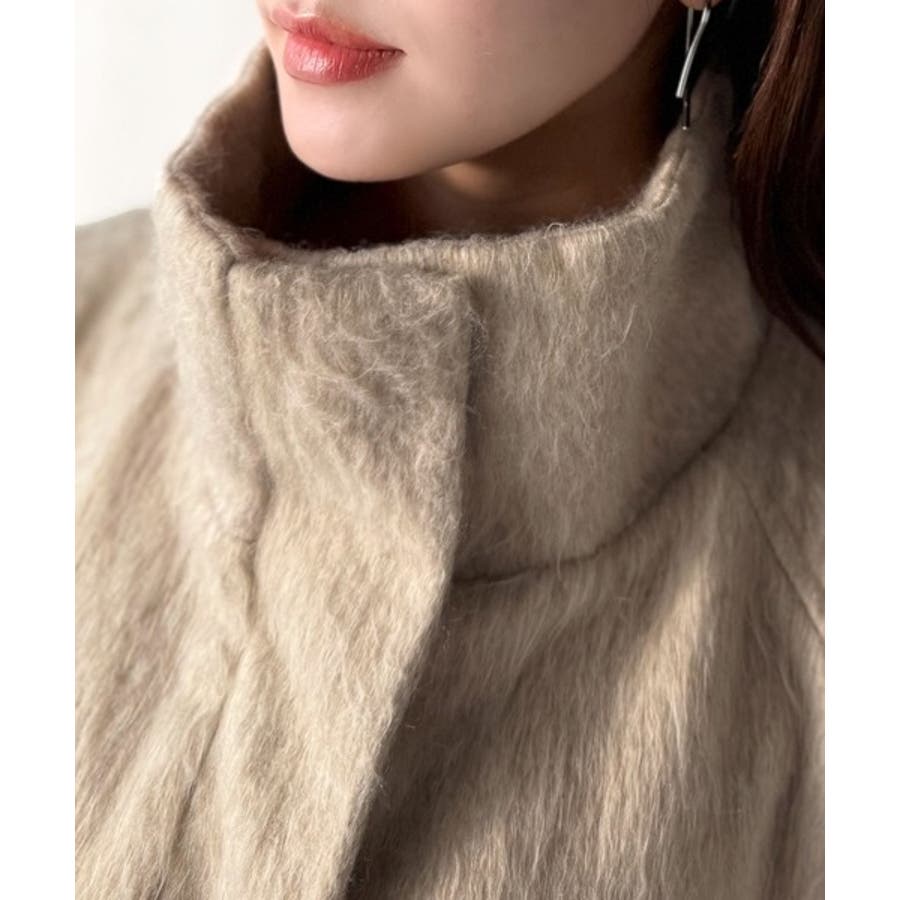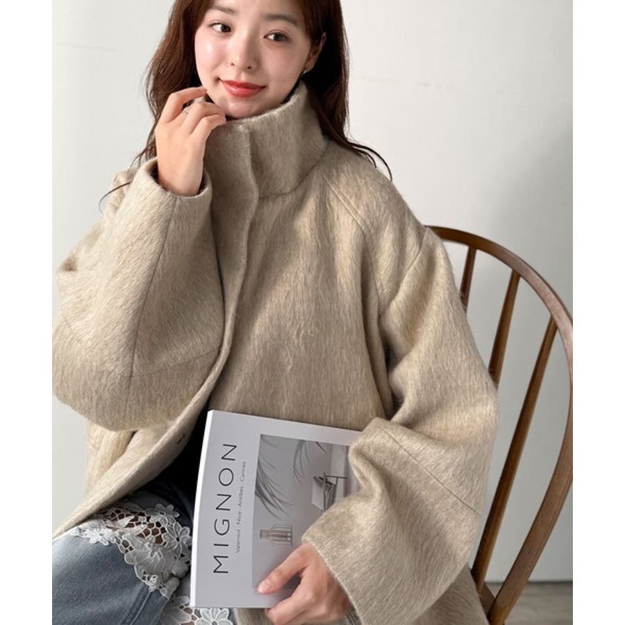 ベーシックとトレンドを両立。MIXシャギー比翼スタンドネックミドル丈コクーンスリ…