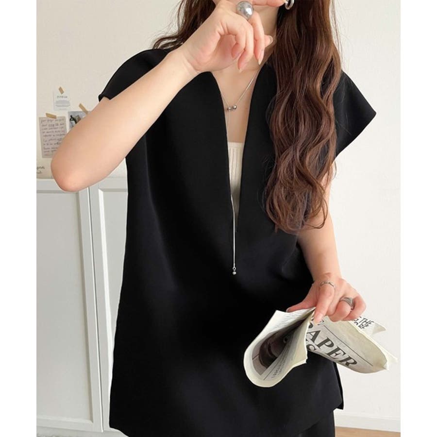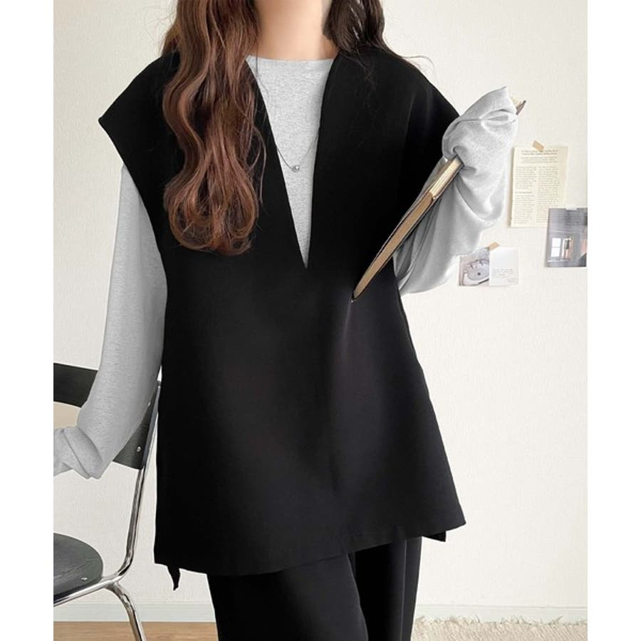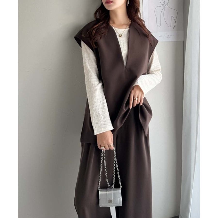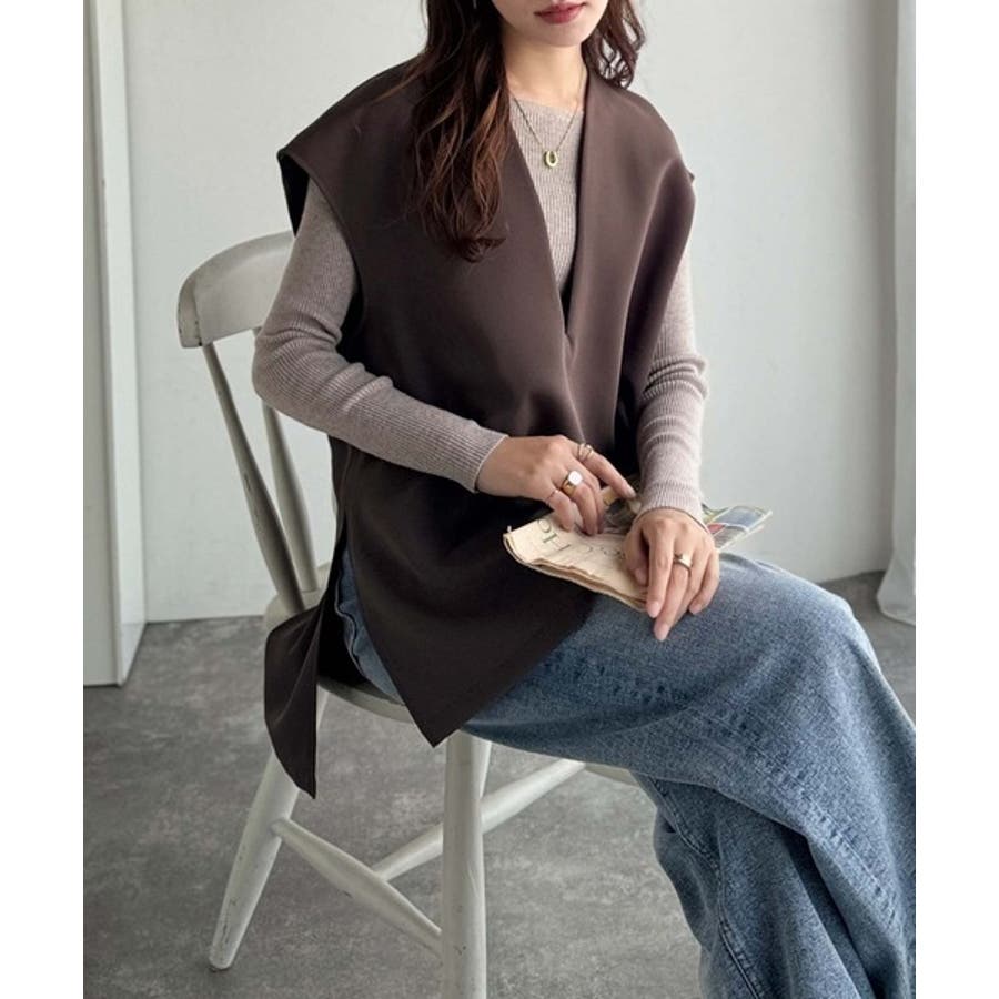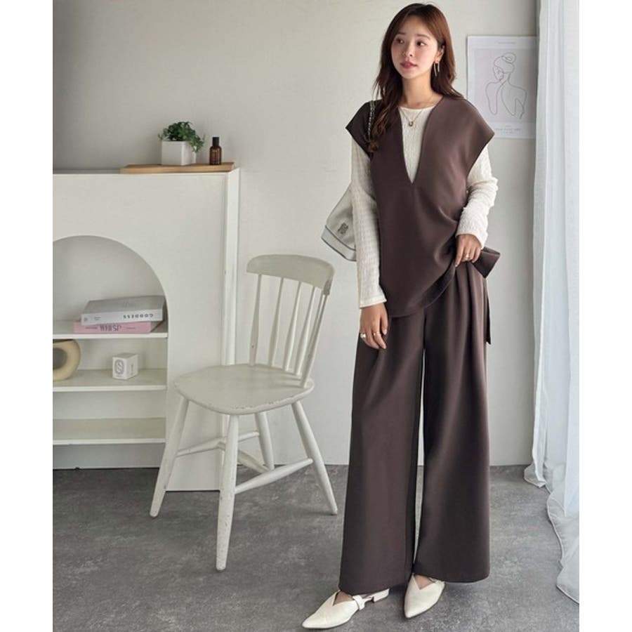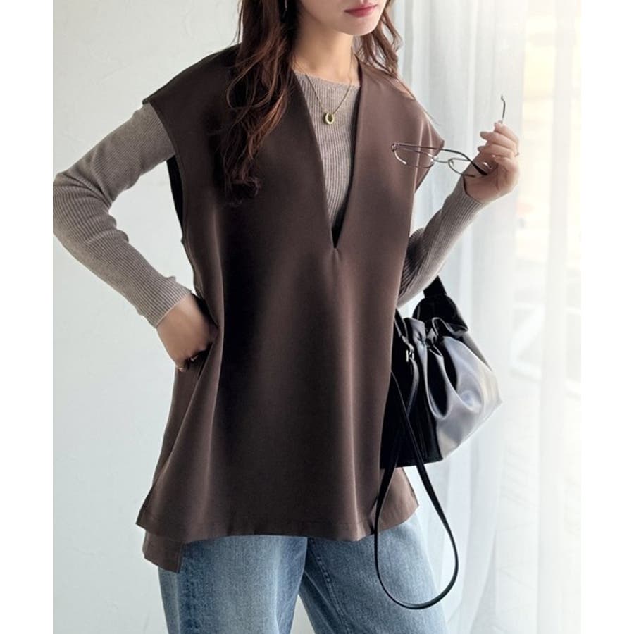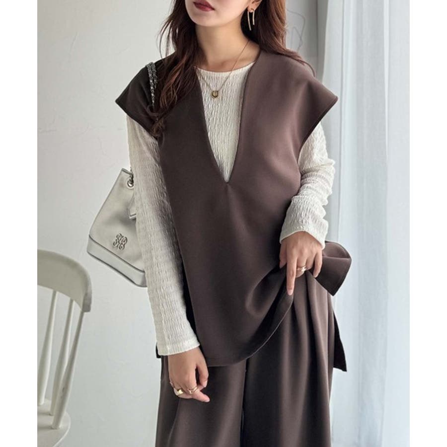 大人の抜け感スタイル◎ディープキーネックベスト(セットアップ可能)