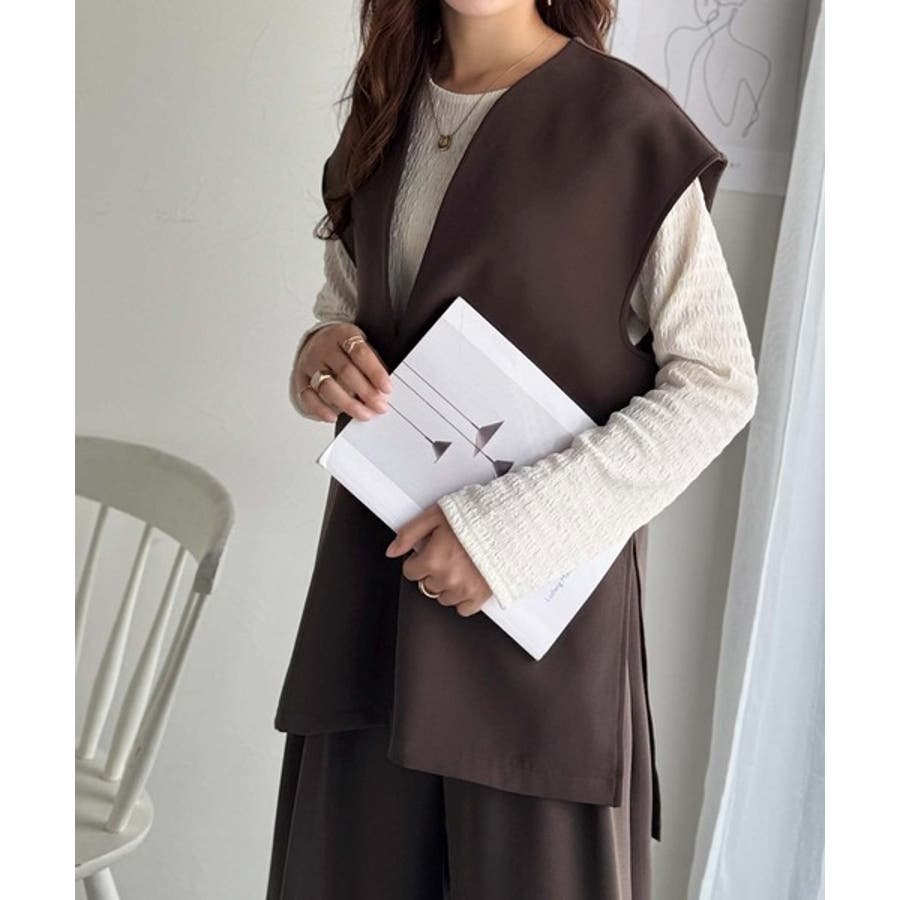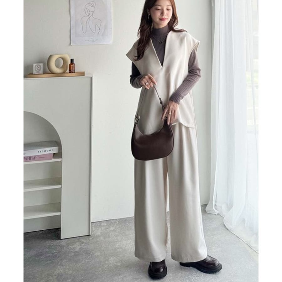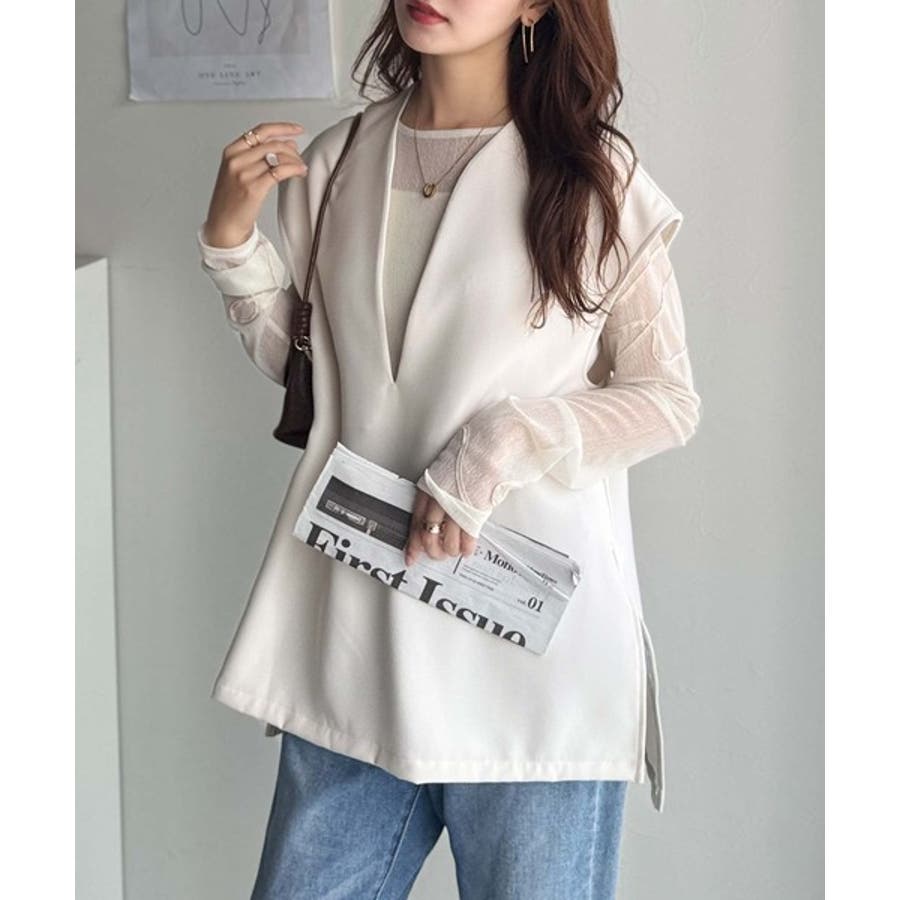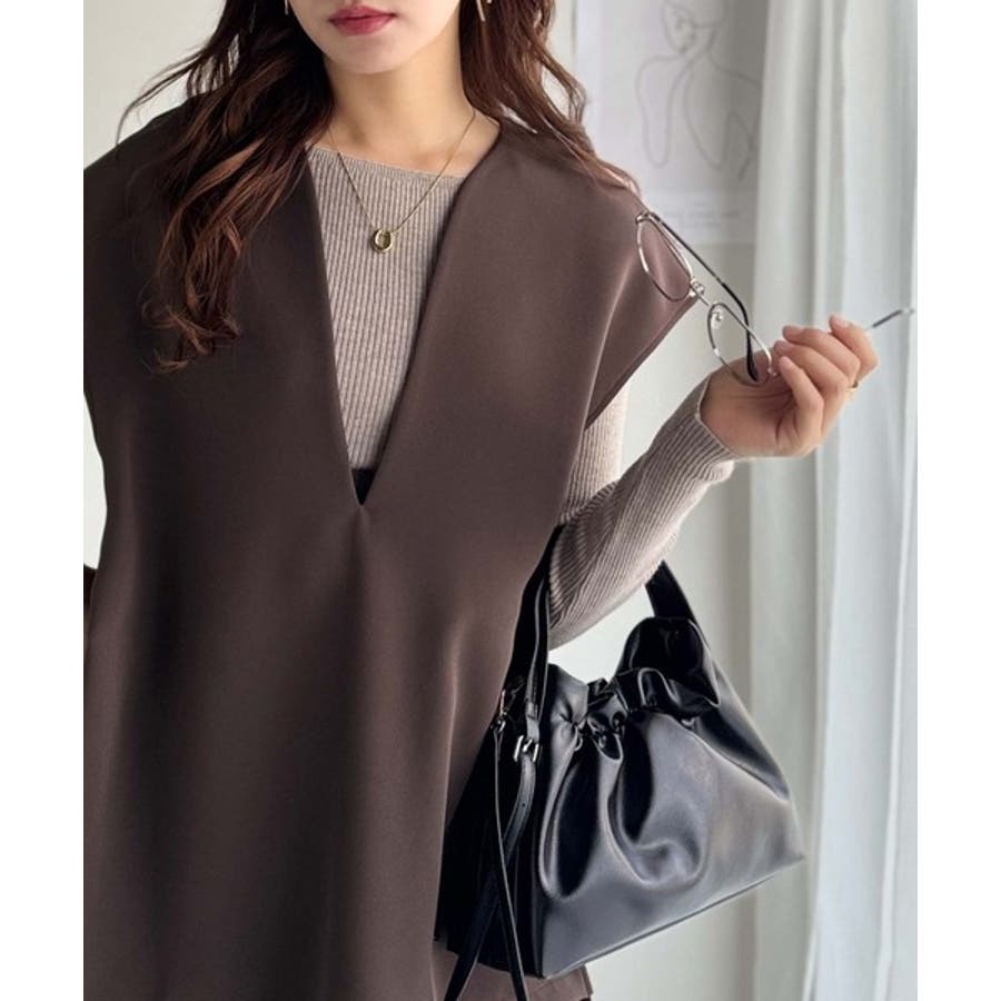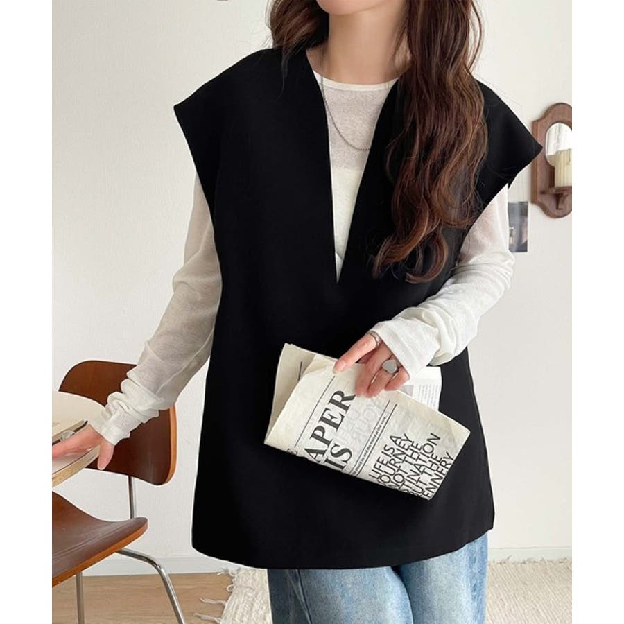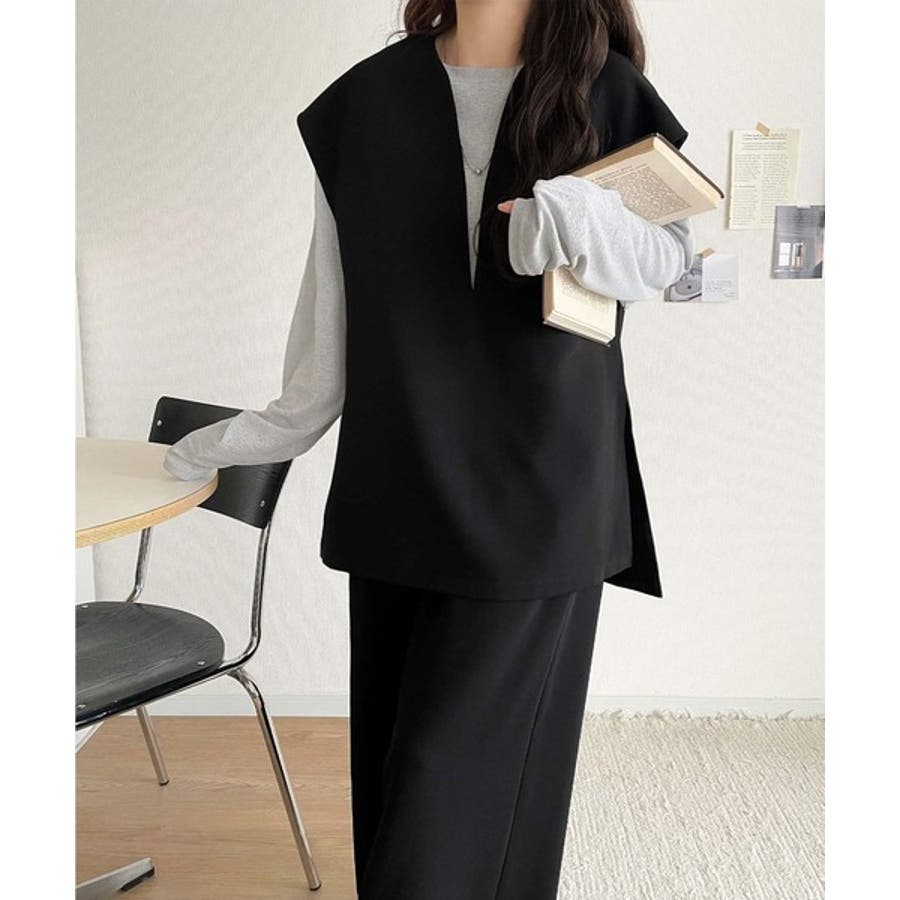 大人の抜け感スタイル◎ディープキーネックベスト(セットアップ可能)