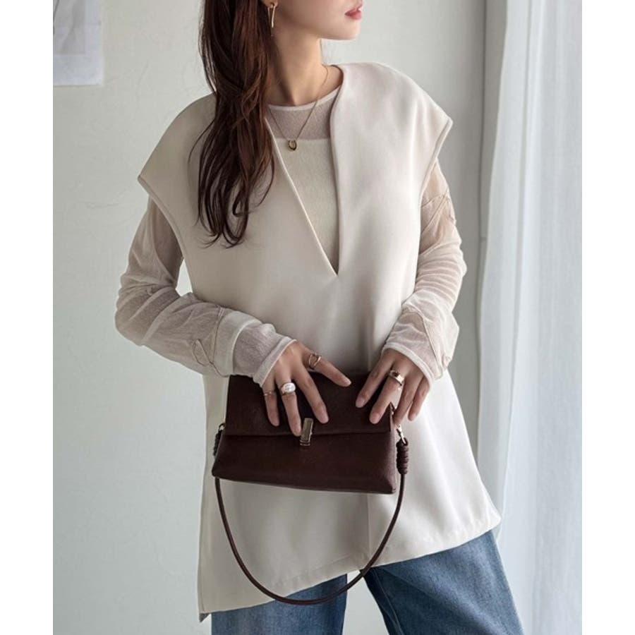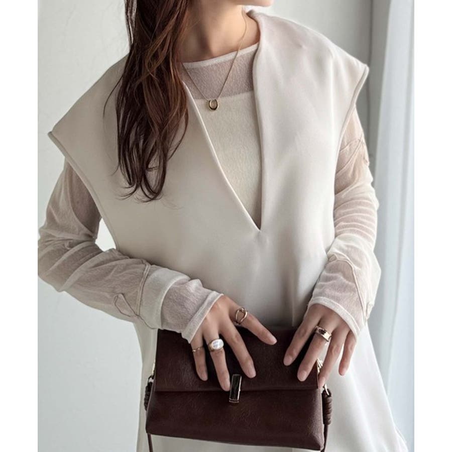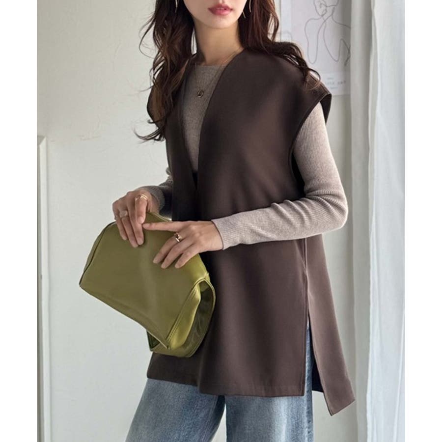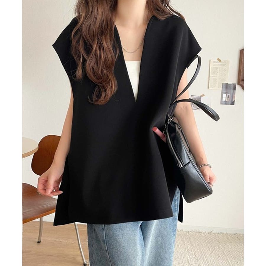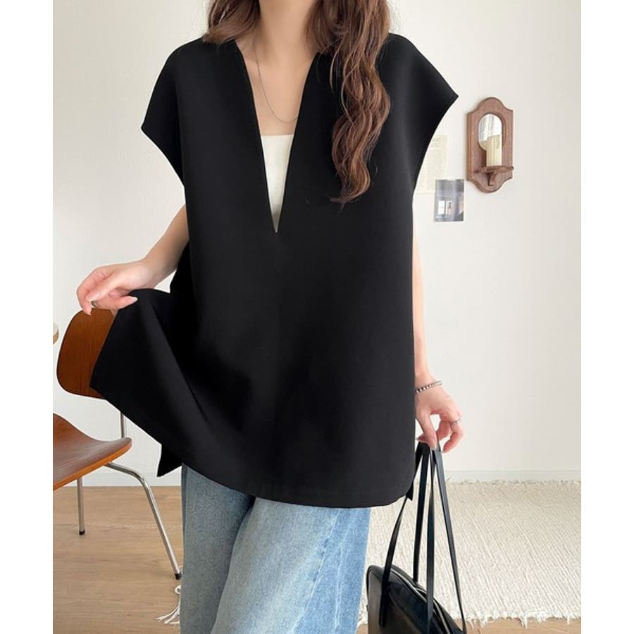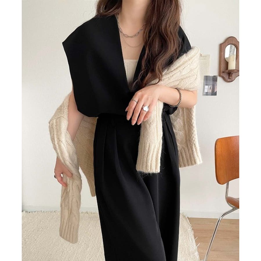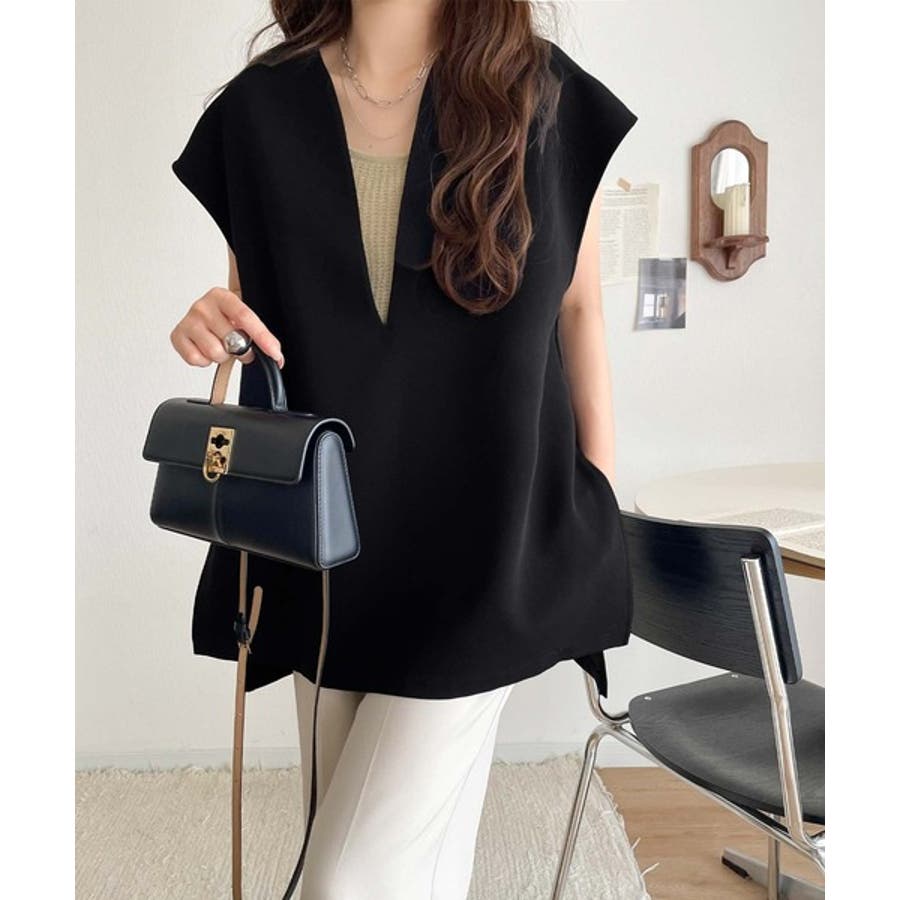 大人の抜け感スタイル◎ディープキーネックベスト(セットアップ可能)