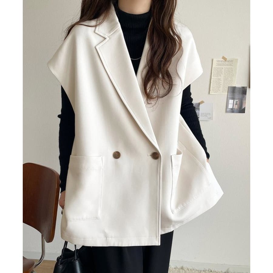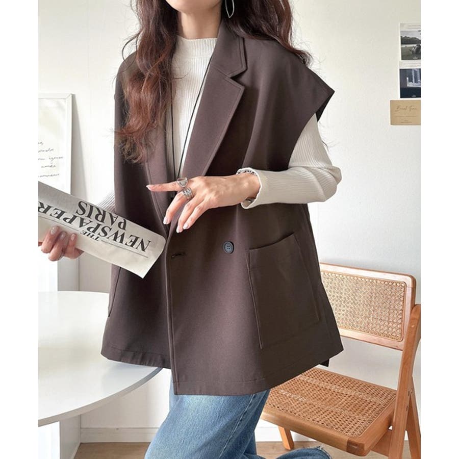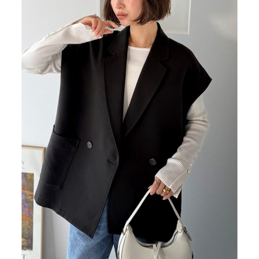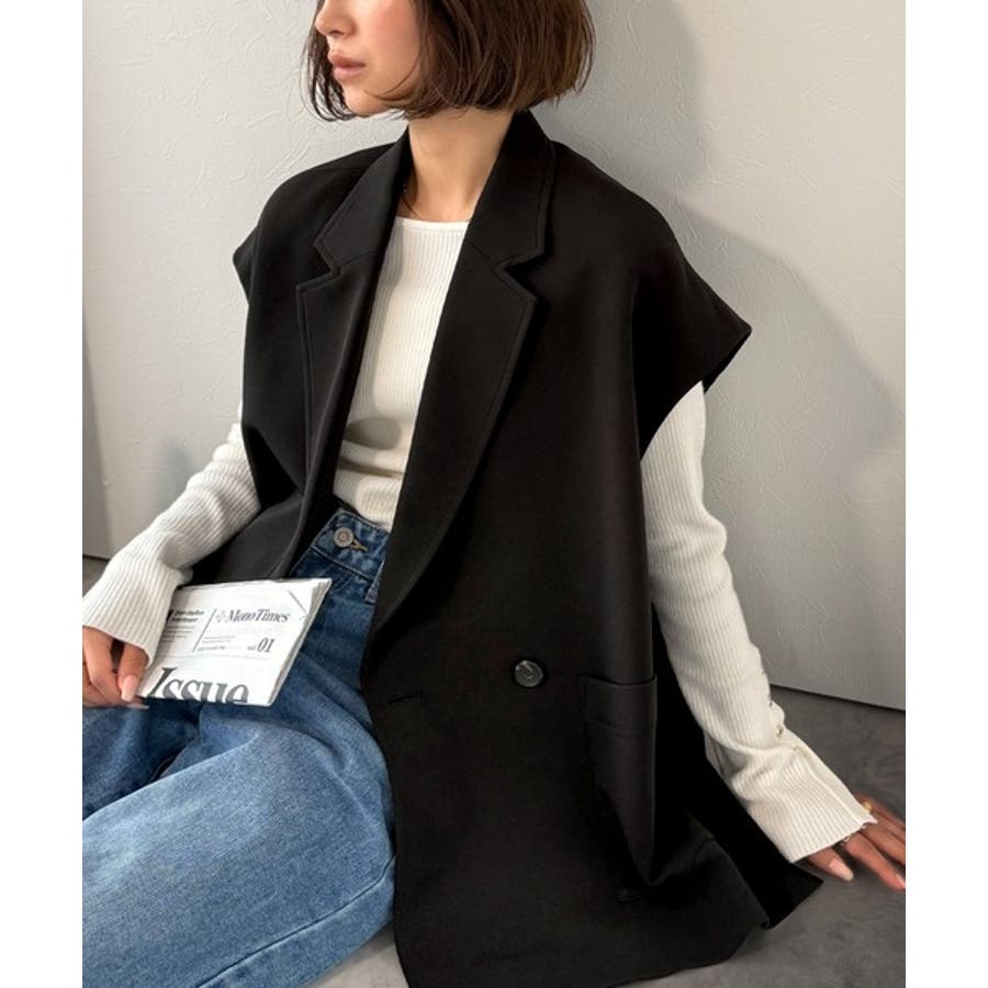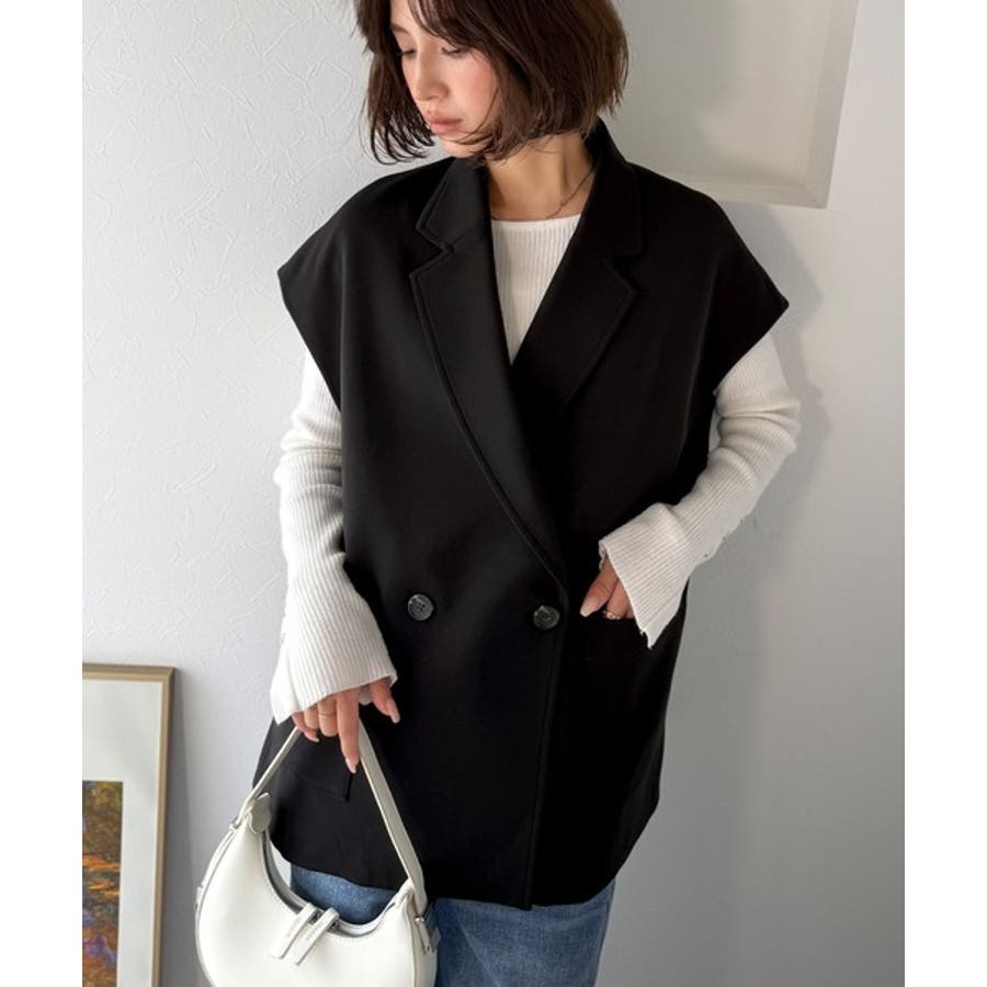テーラードデザインのダブルジレベスト。オーバーサイズでゆったりとした着心地。