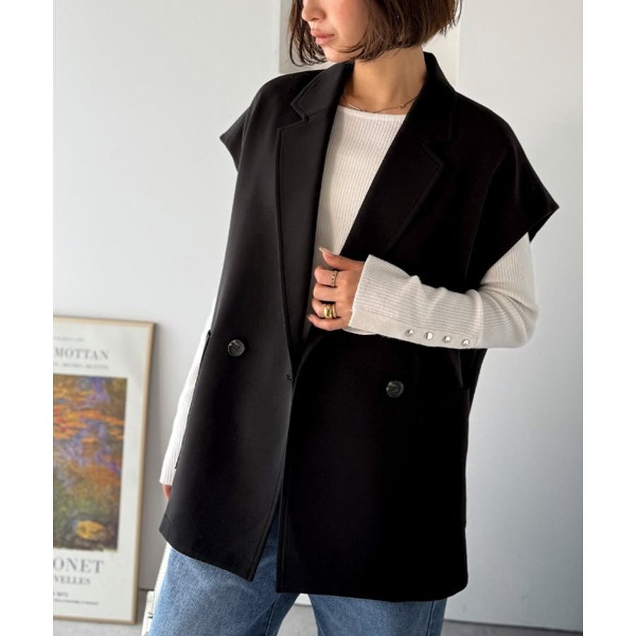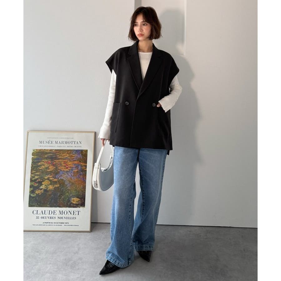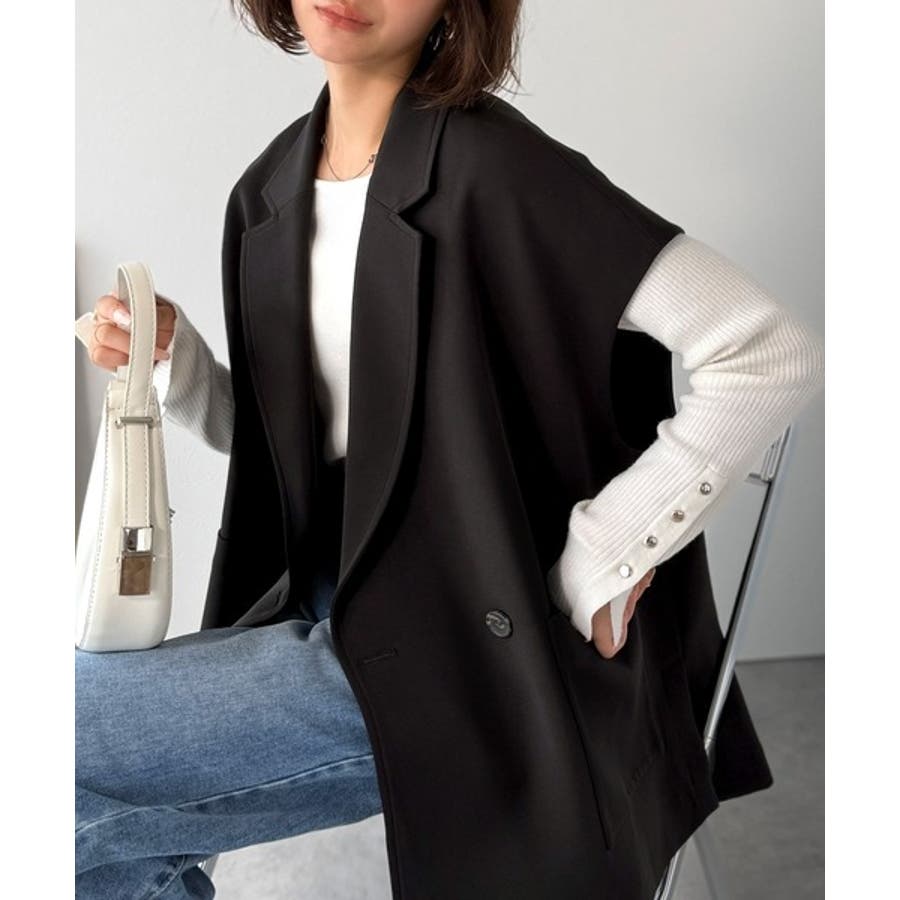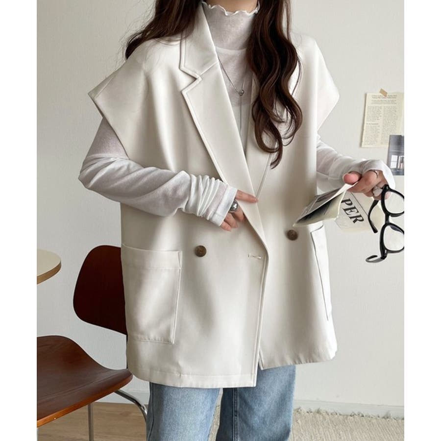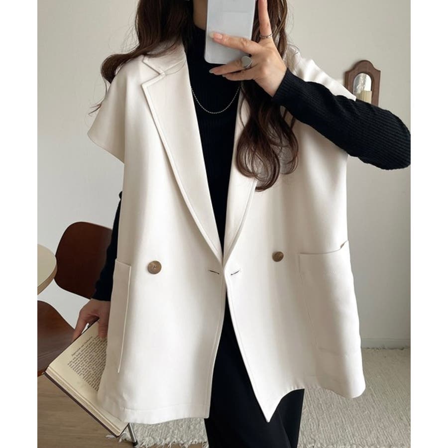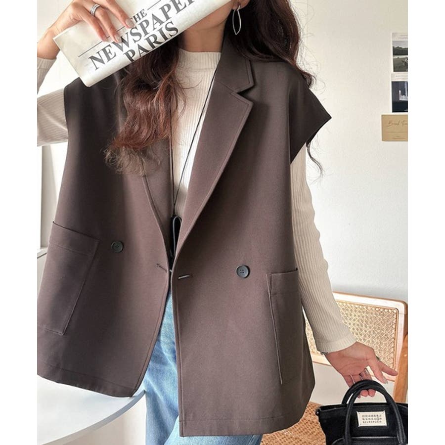 テーラードデザインのダブルジレベスト。オーバーサイズでゆったりとした着心地。