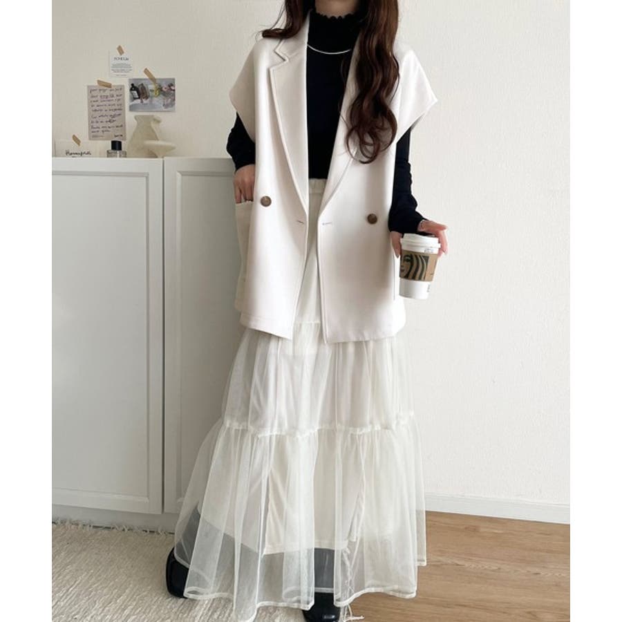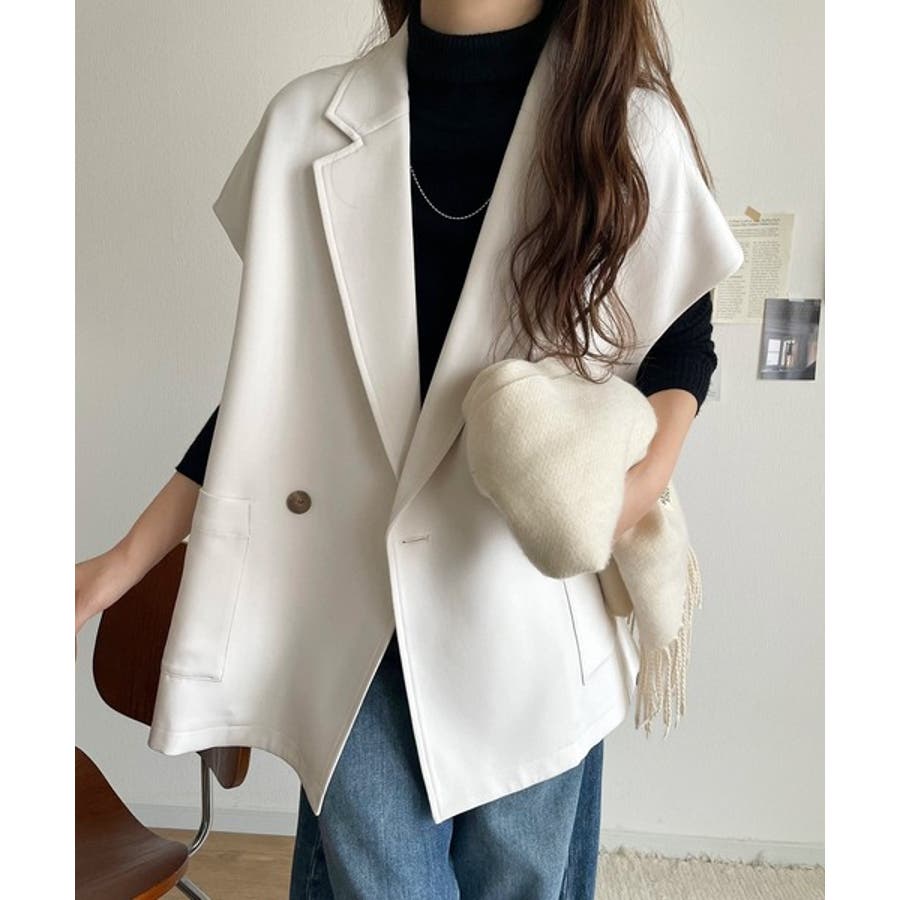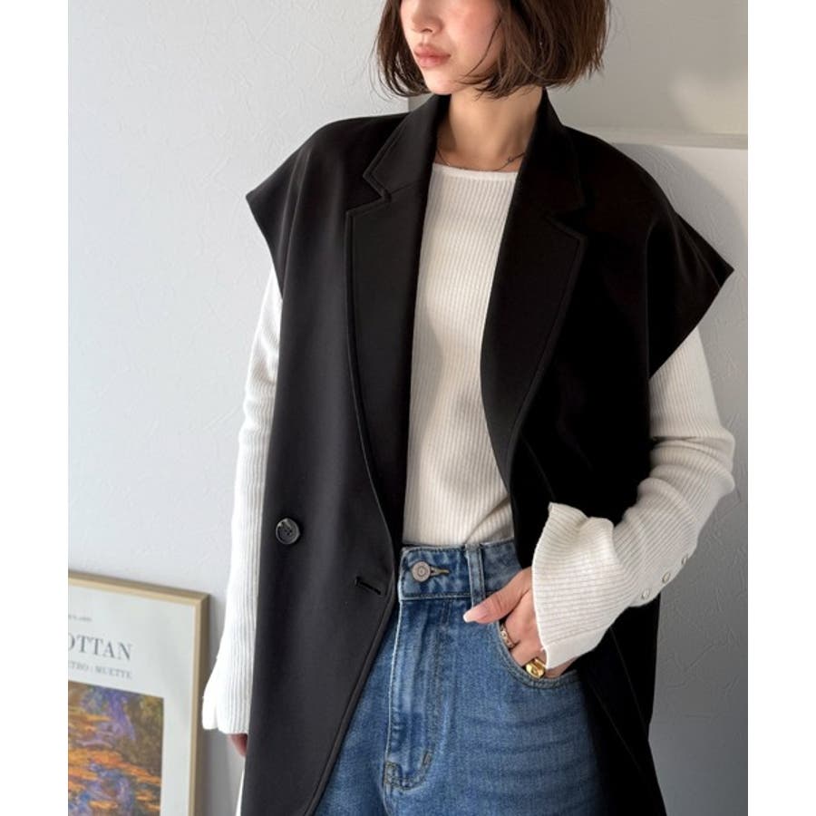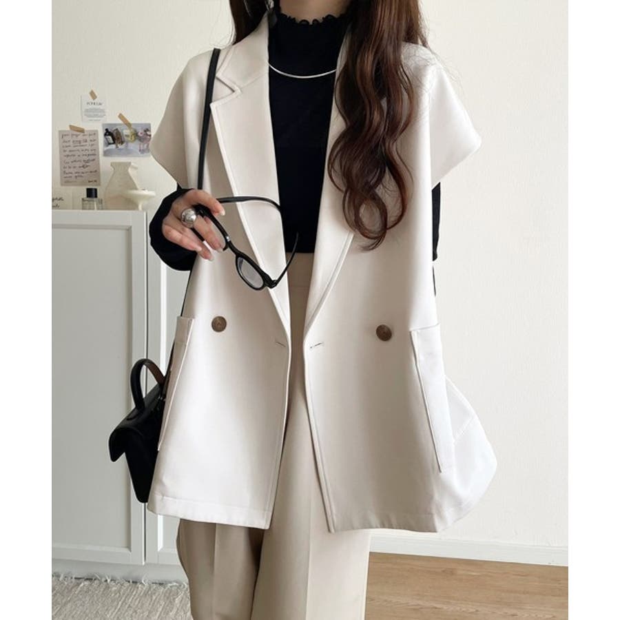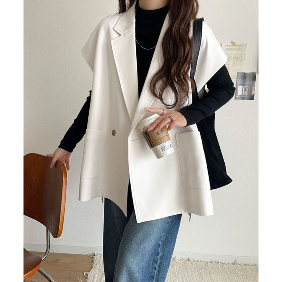 テーラードデザインのダブルジレベスト。オーバーサイズでゆったりとした着心地。