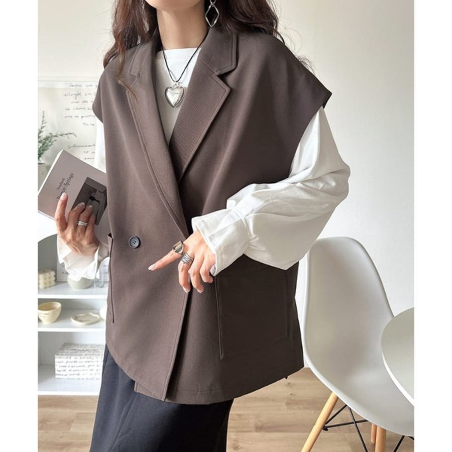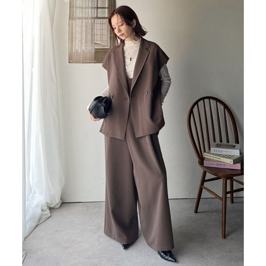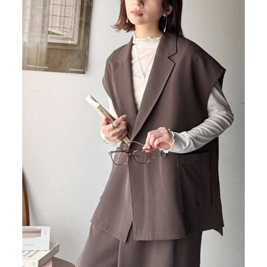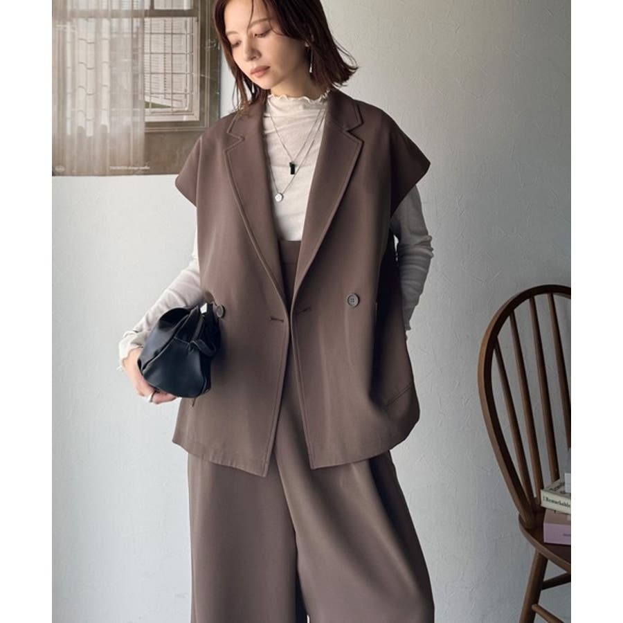 秋コーデの入り口にぴったりの一品。テーラードダブルジレベスト(セットアップ可能)
