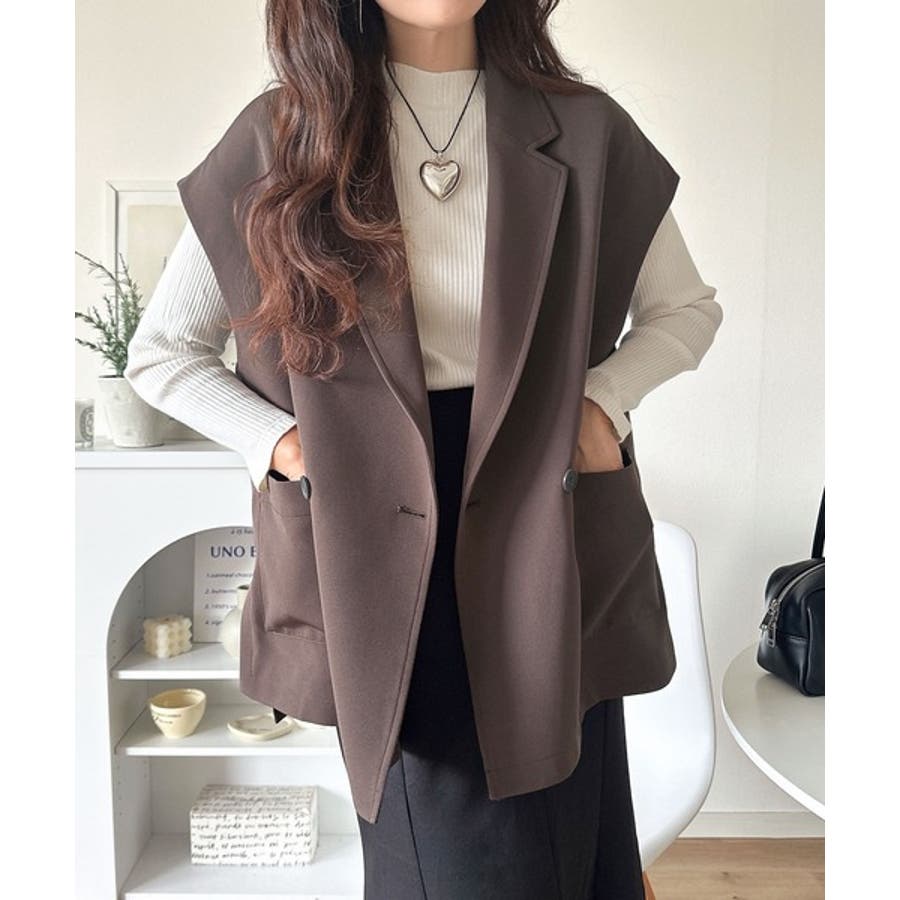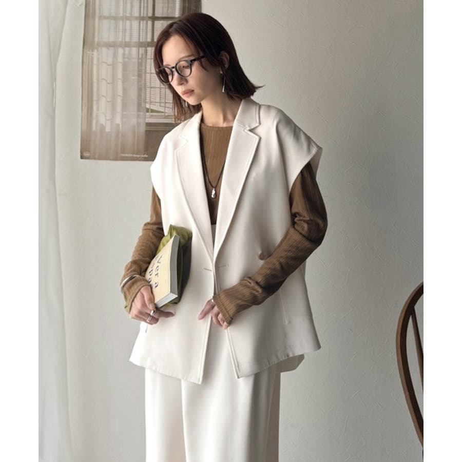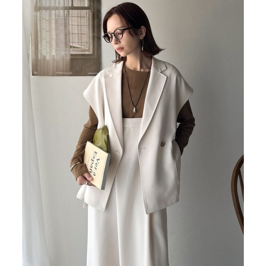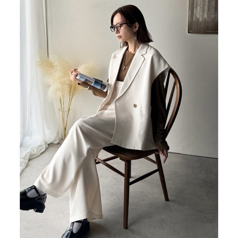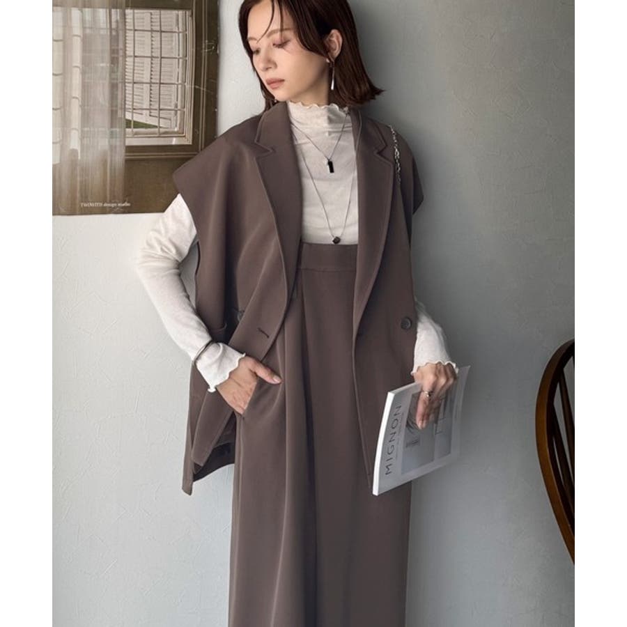 秋コーデの入り口にぴったりの一品。テーラードダブルジレベスト(セットアップ可能)