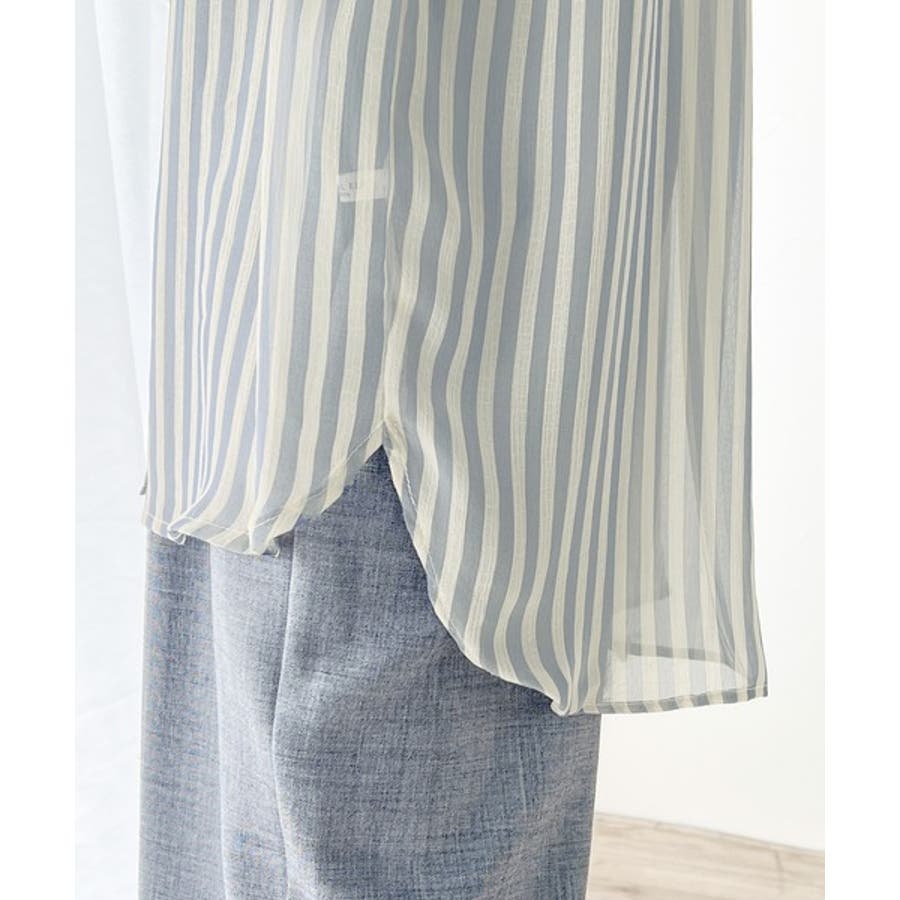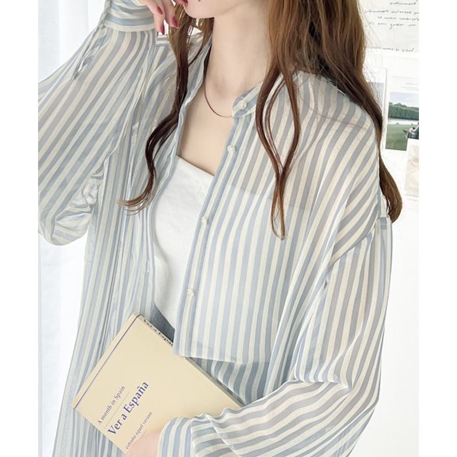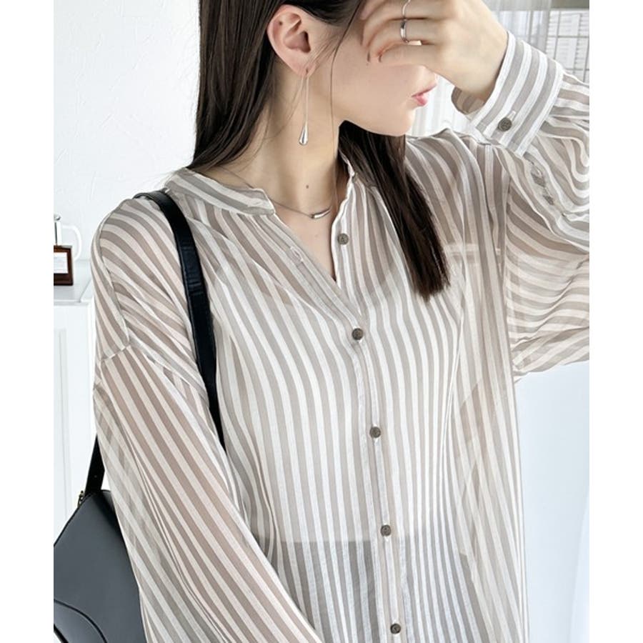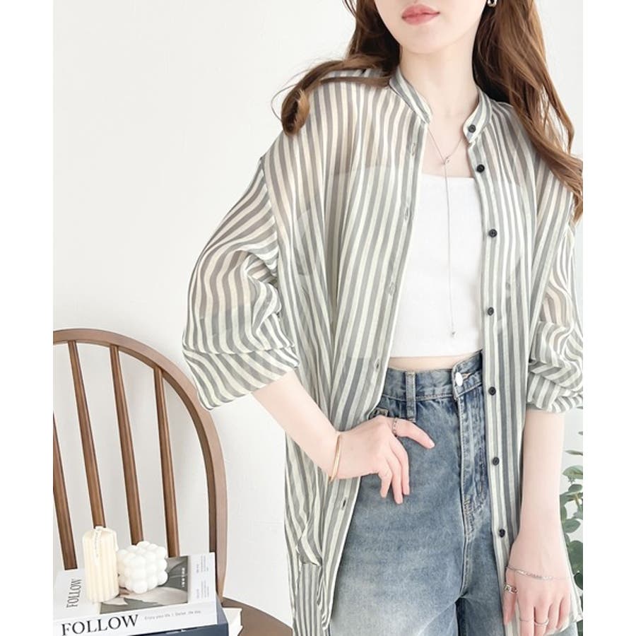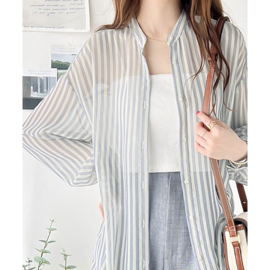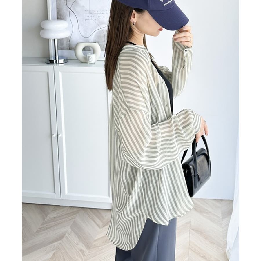 【冷房・ 紫外線・日焼け対策】コーデに抜け感を演出。シアーストライプシャツ