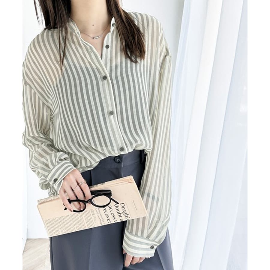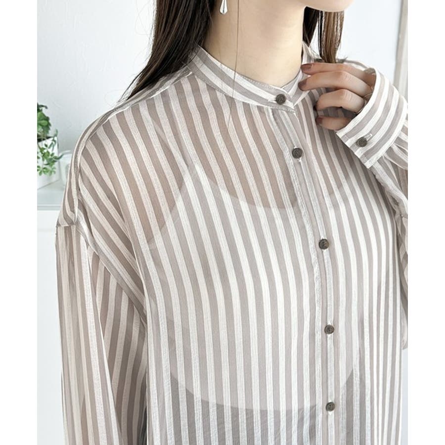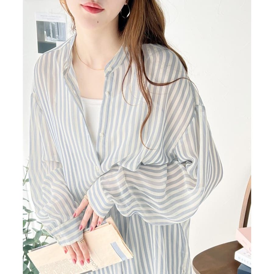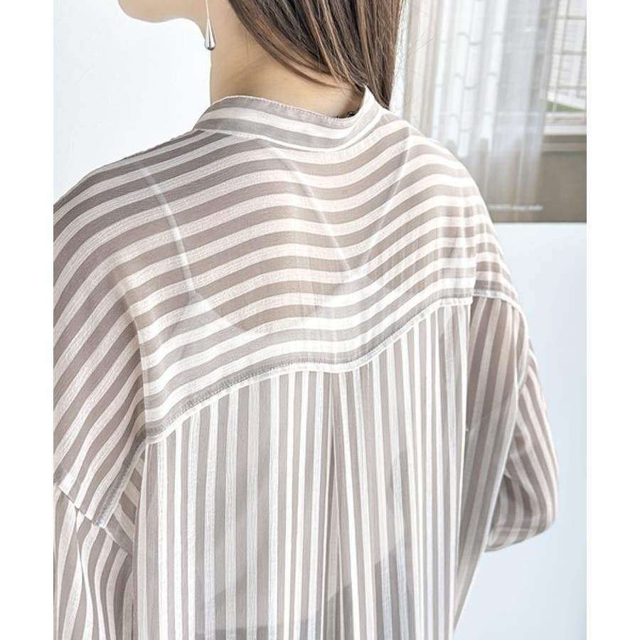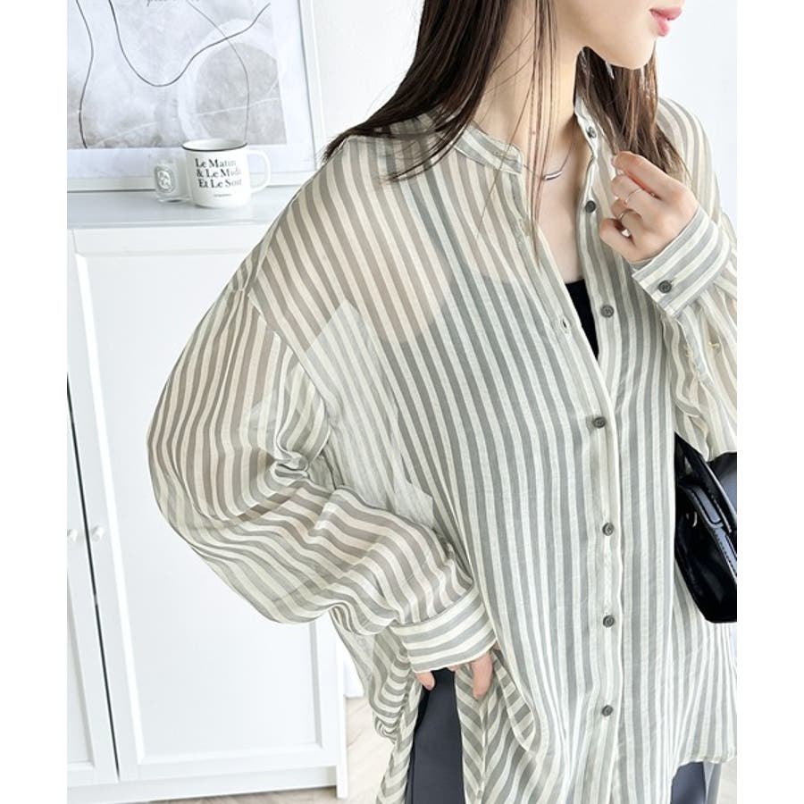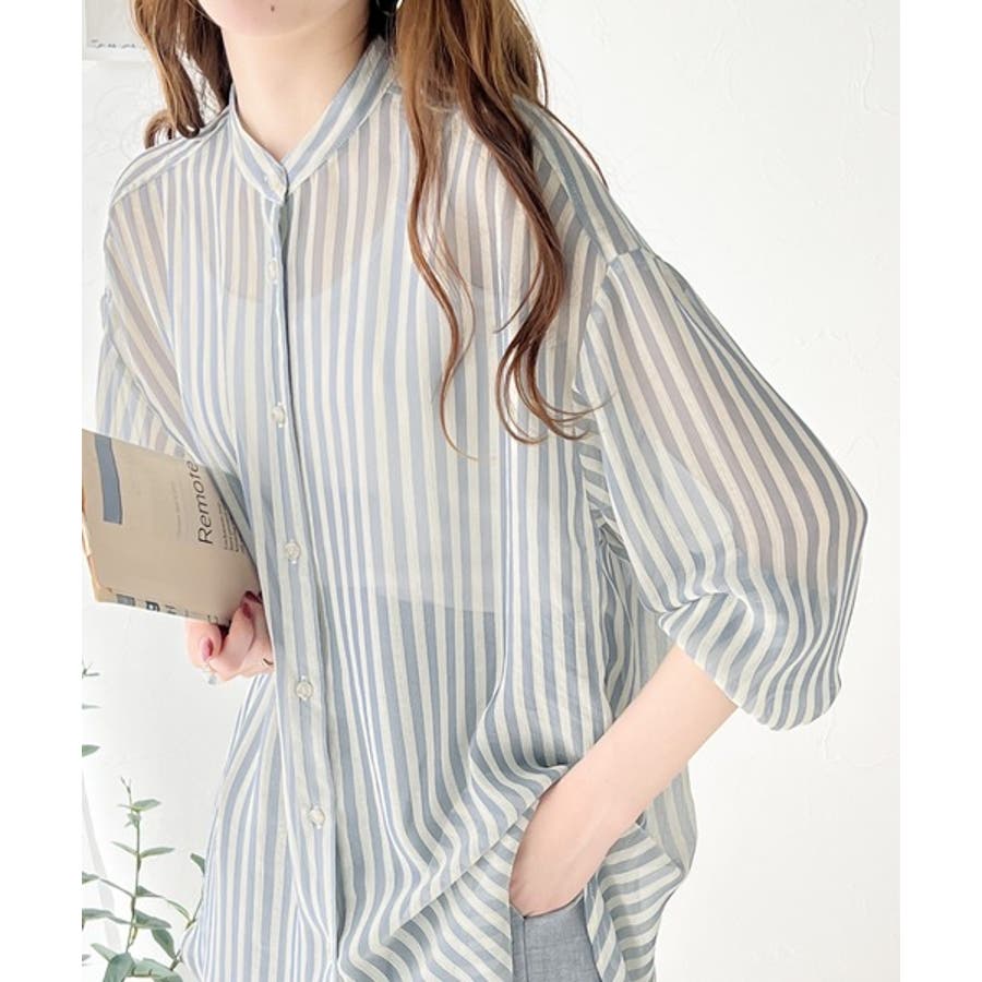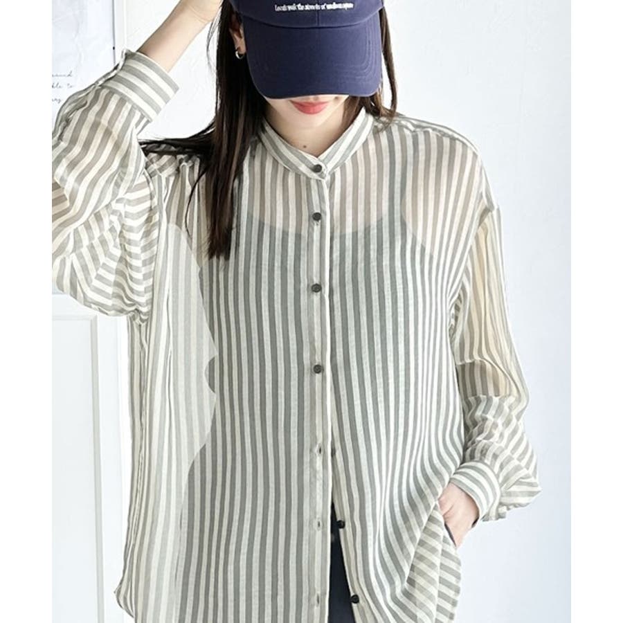 【冷房・ 紫外線・日焼け対策】コーデに抜け感を演出。シアーストライプシャツ