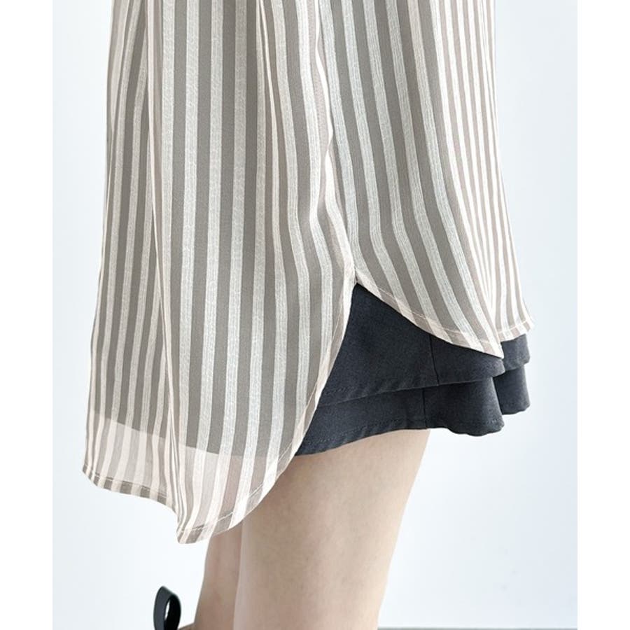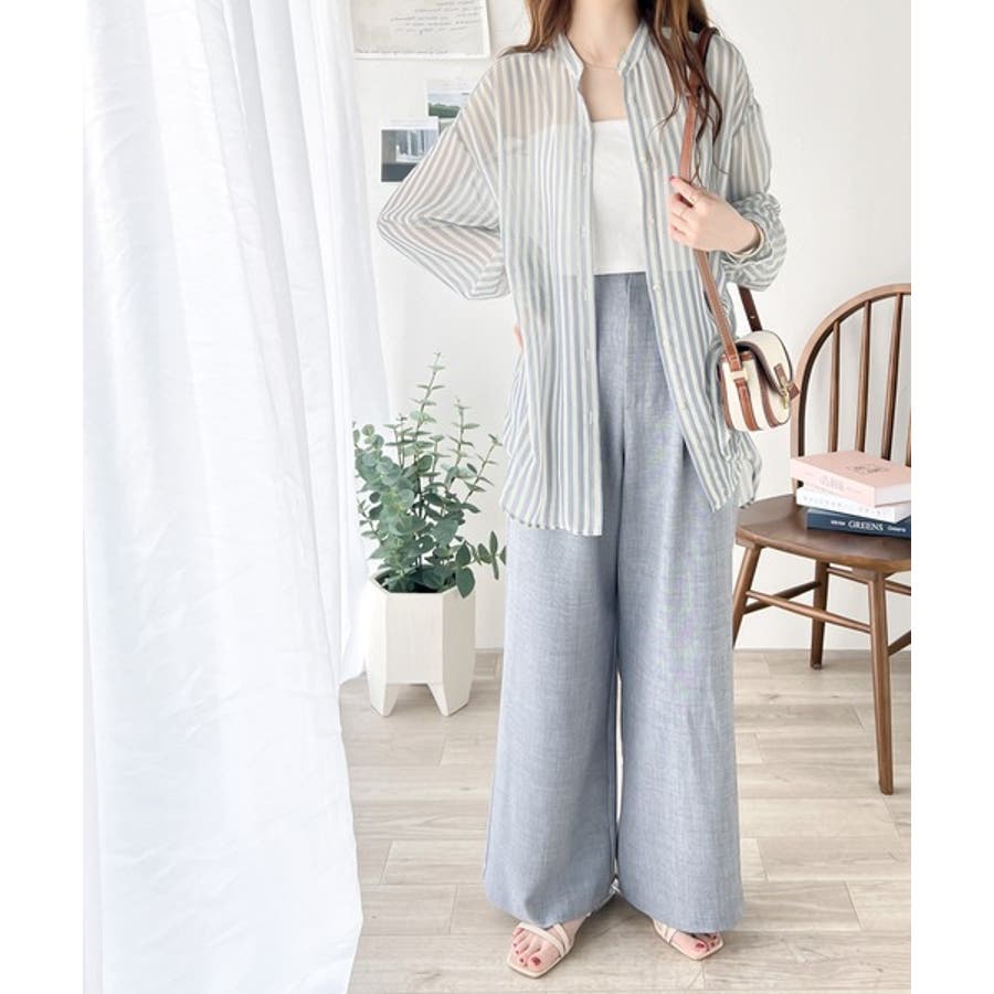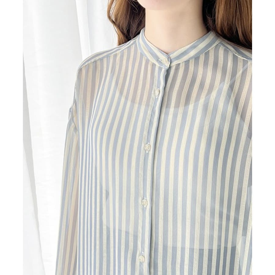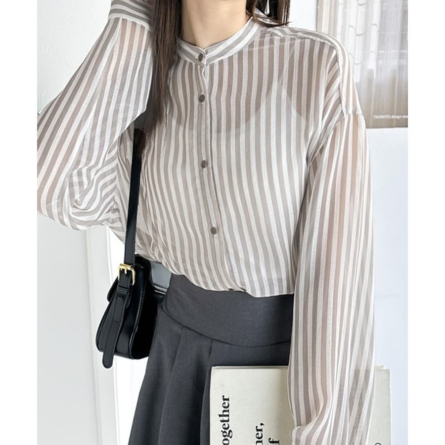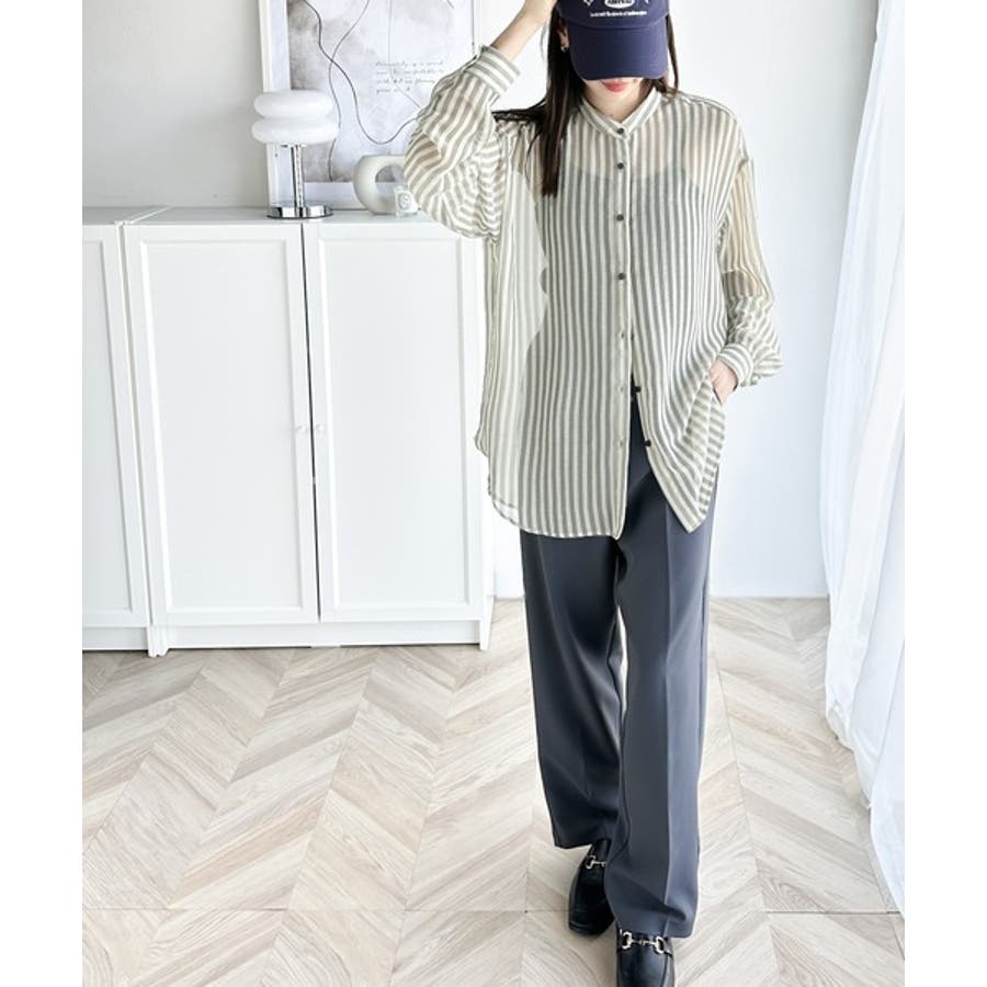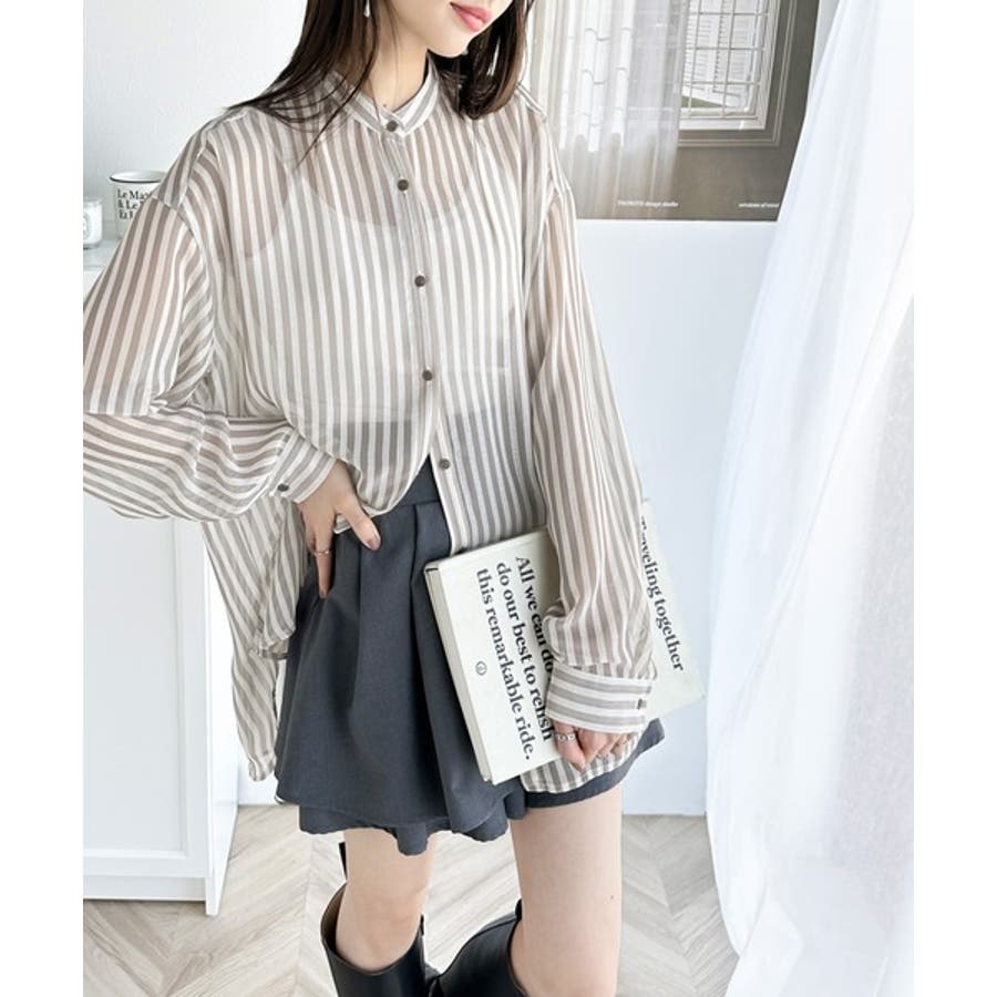 【冷房・ 紫外線・日焼け対策】コーデに抜け感を演出。シアーストライプシャツ