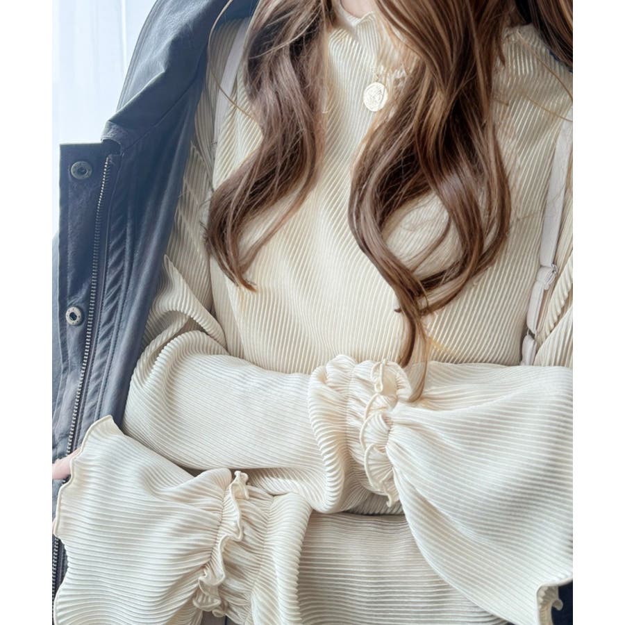 華奢見えが叶う女性の味方。キャンディースリーブプリーツメロートップス
