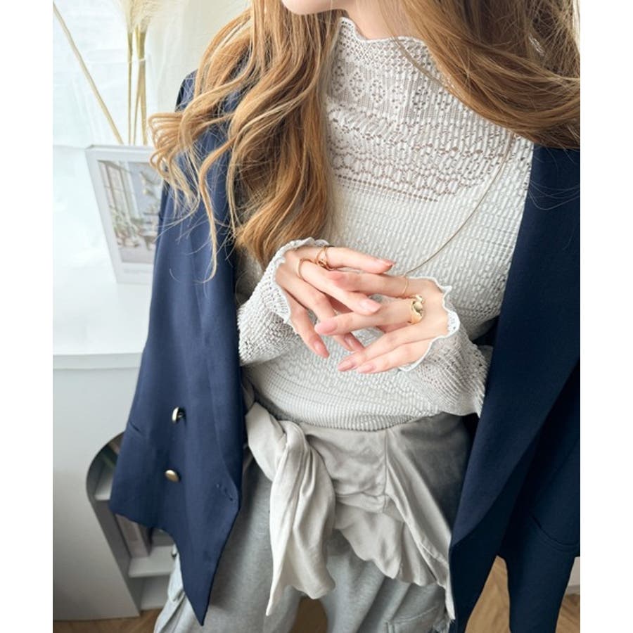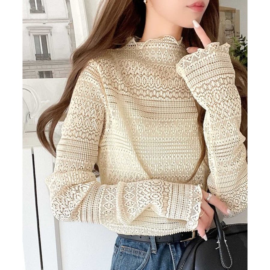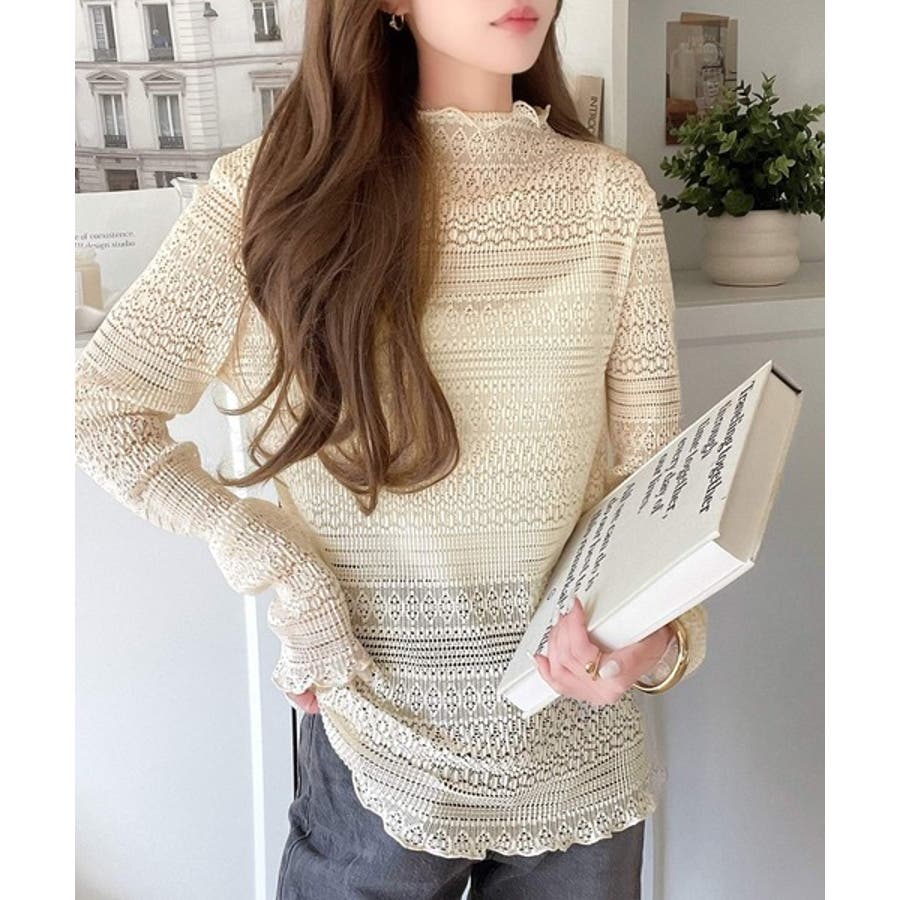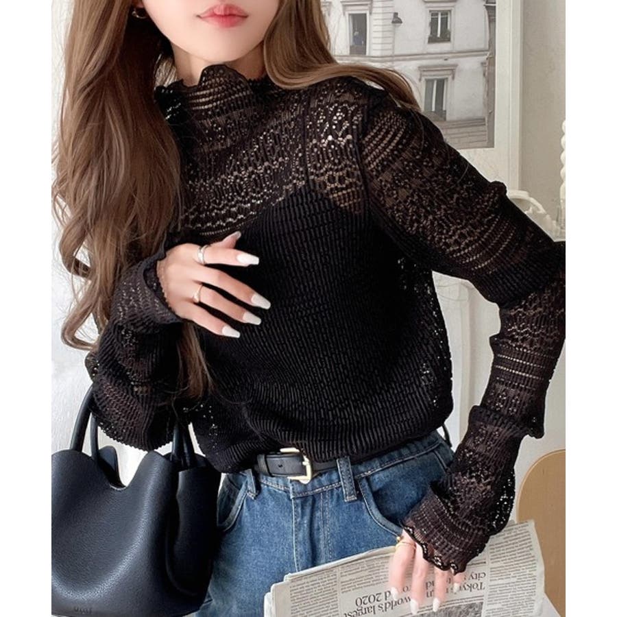 ハイネックデザインでより大人っぽく、程よい透け感を楽しめるアイテムです。