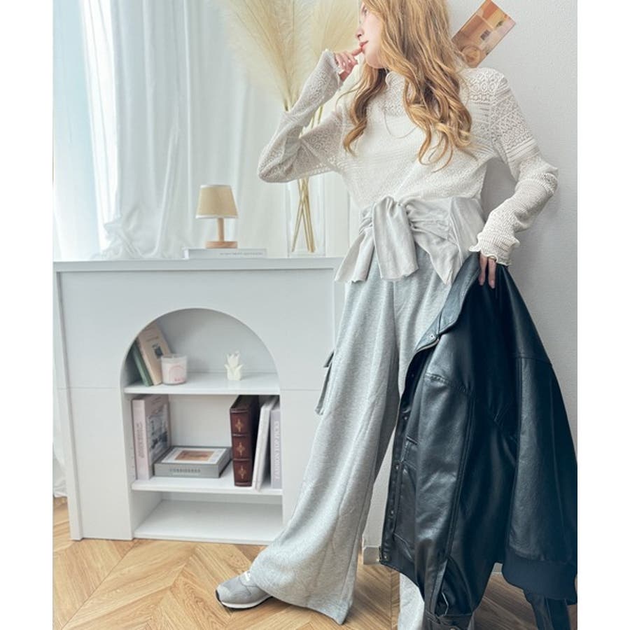 高級感もあり個性的なレーストップスですが、カジュアルにもきれいめスタイルにもハマる優れもの。
