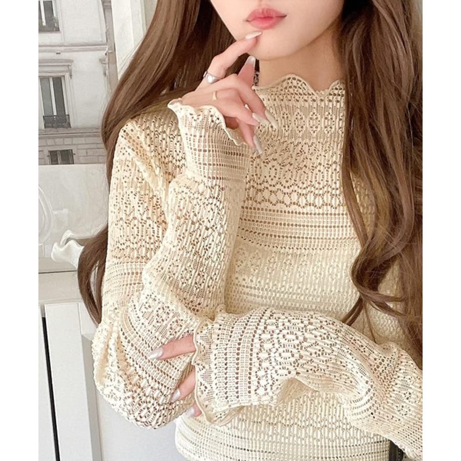 薄手のレース素材でインナーとして襟や袖口から覗くだけでもキャッチーなアイテム。