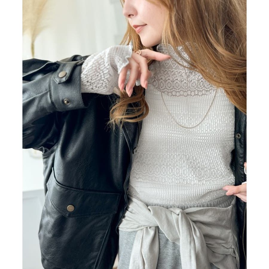 華やかで品格のある大人トップス。レースメローハイネックトップス