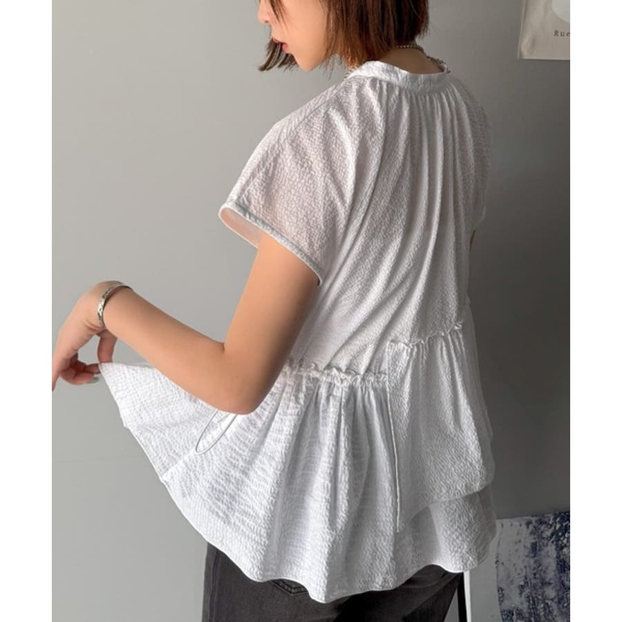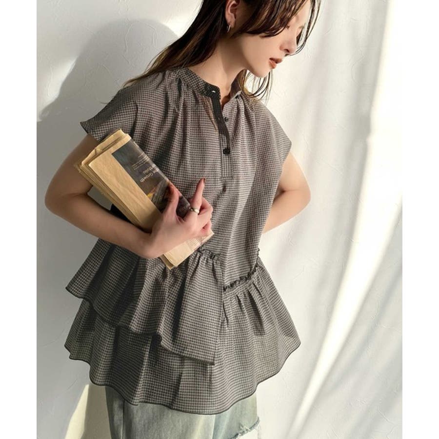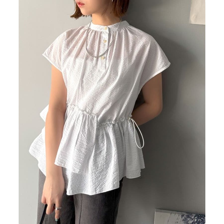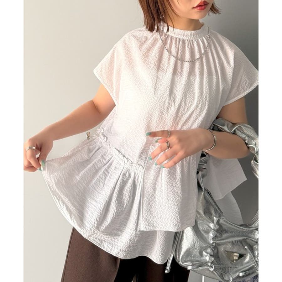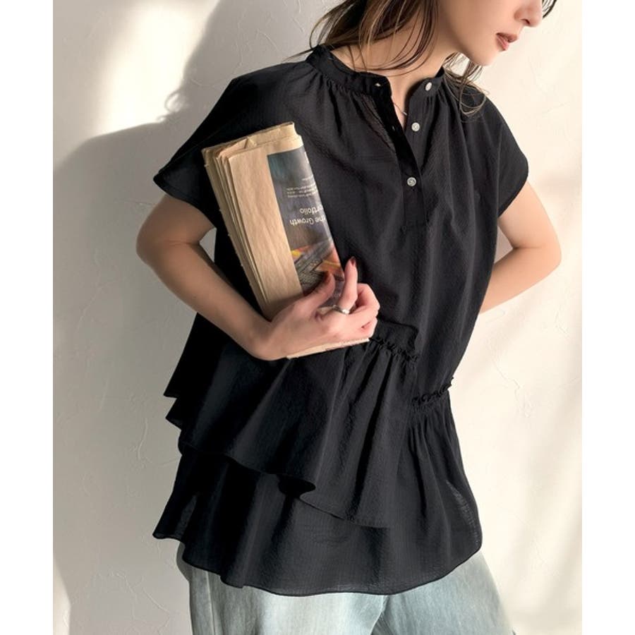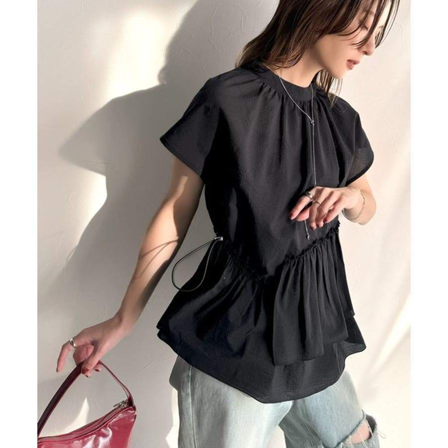 アシンメトリーティアードブラウス。