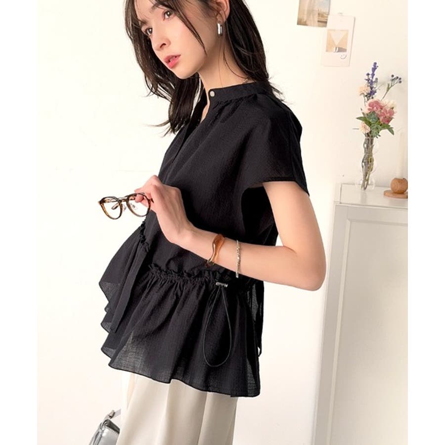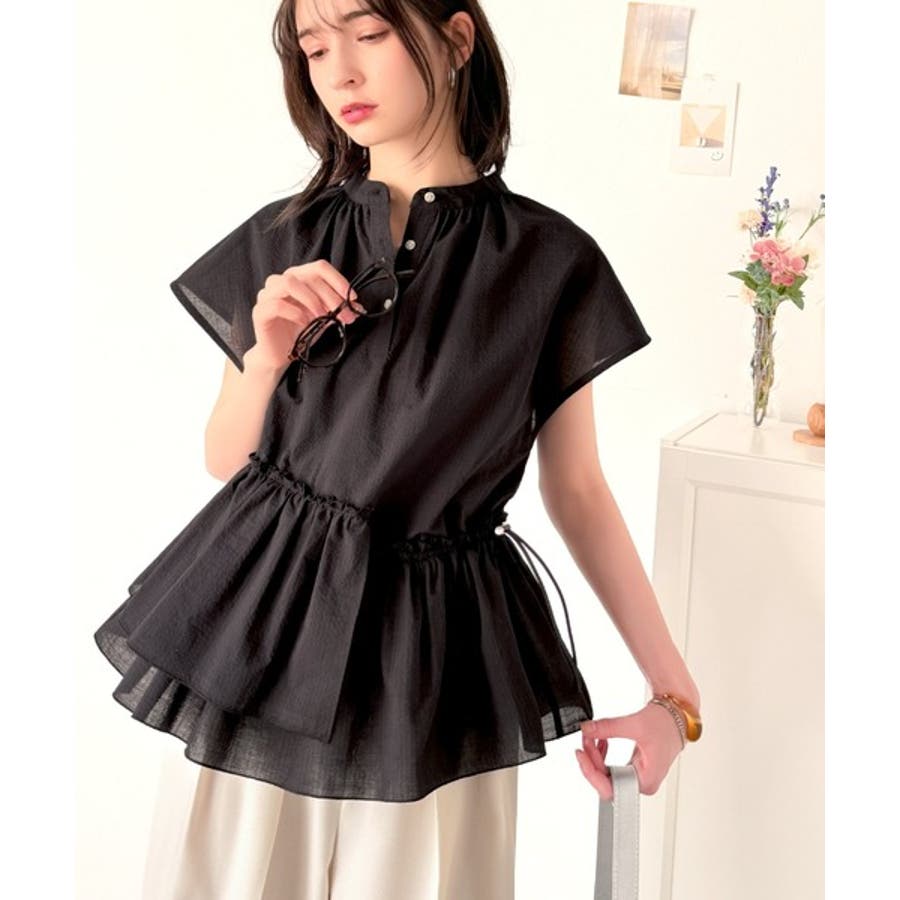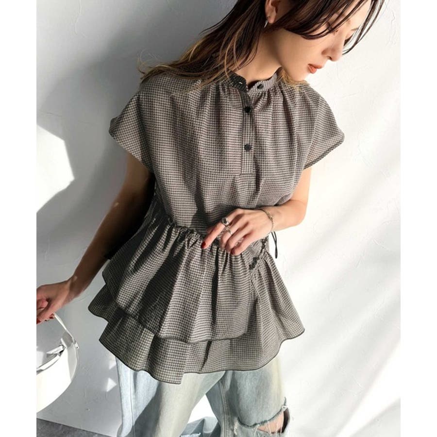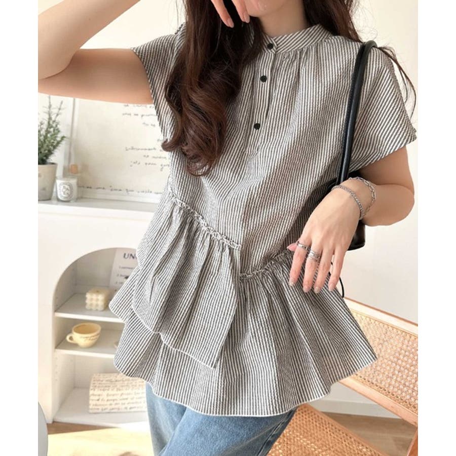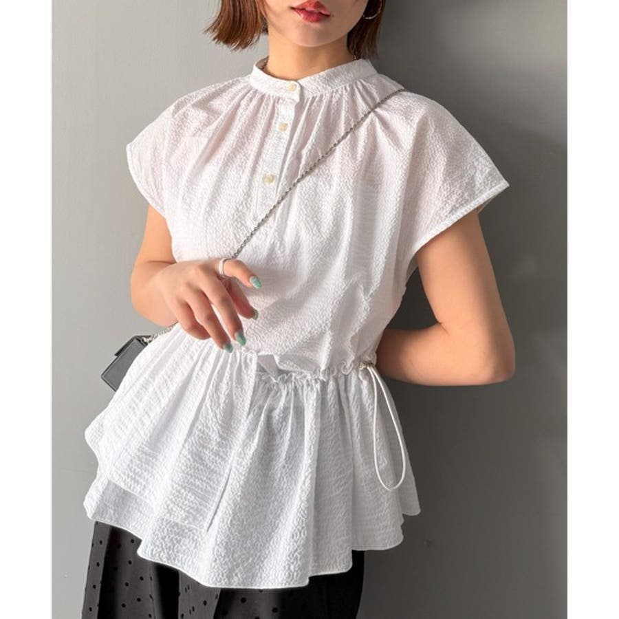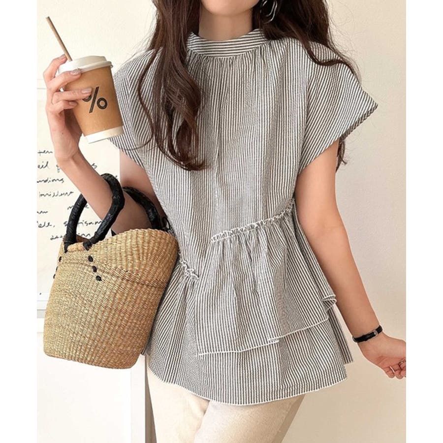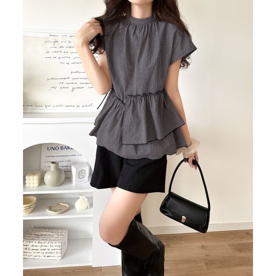 アシンメトリーティアードブラウス。