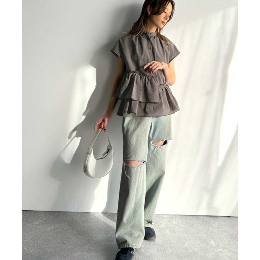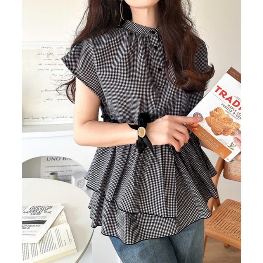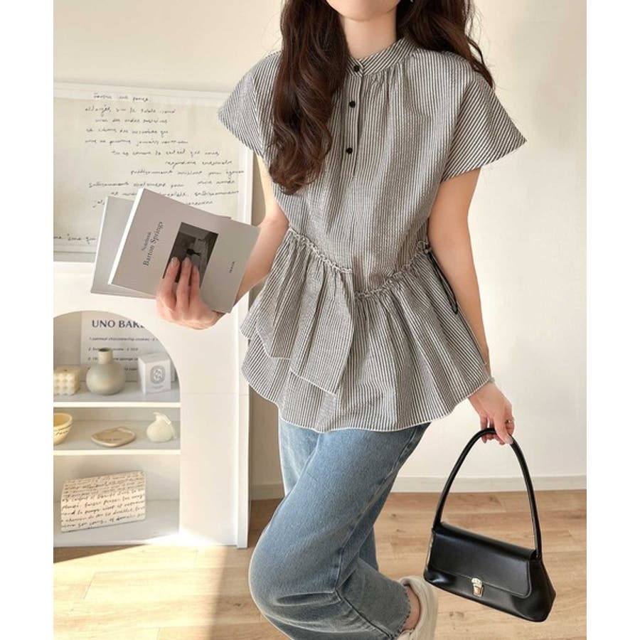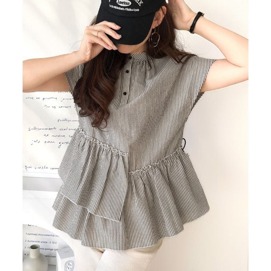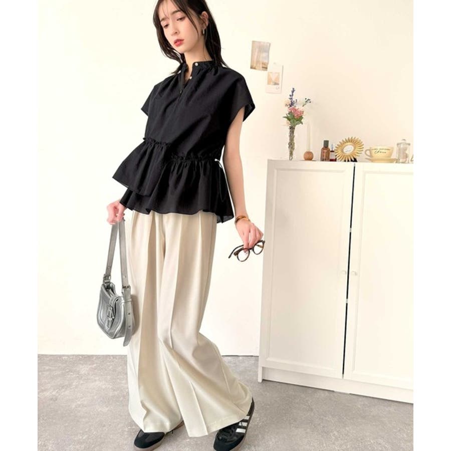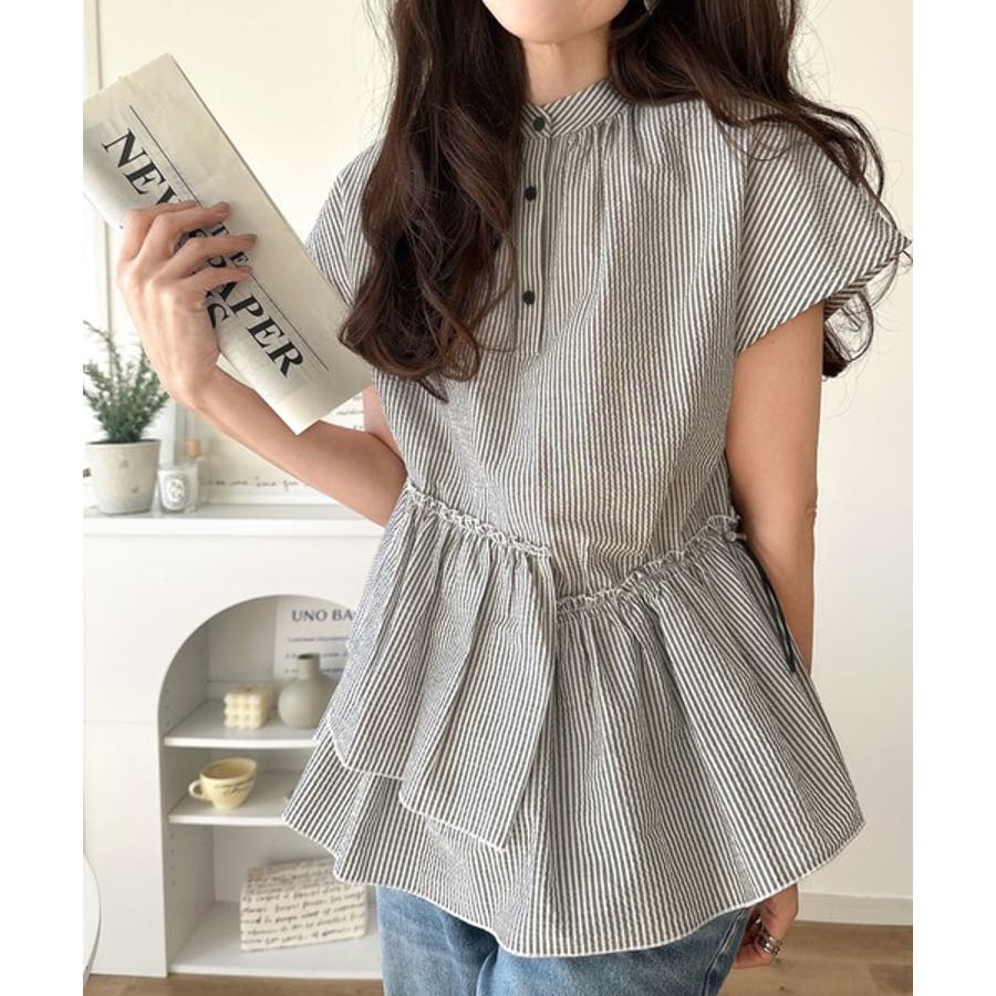 アシンメトリーティアードブラウス。