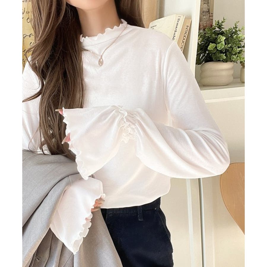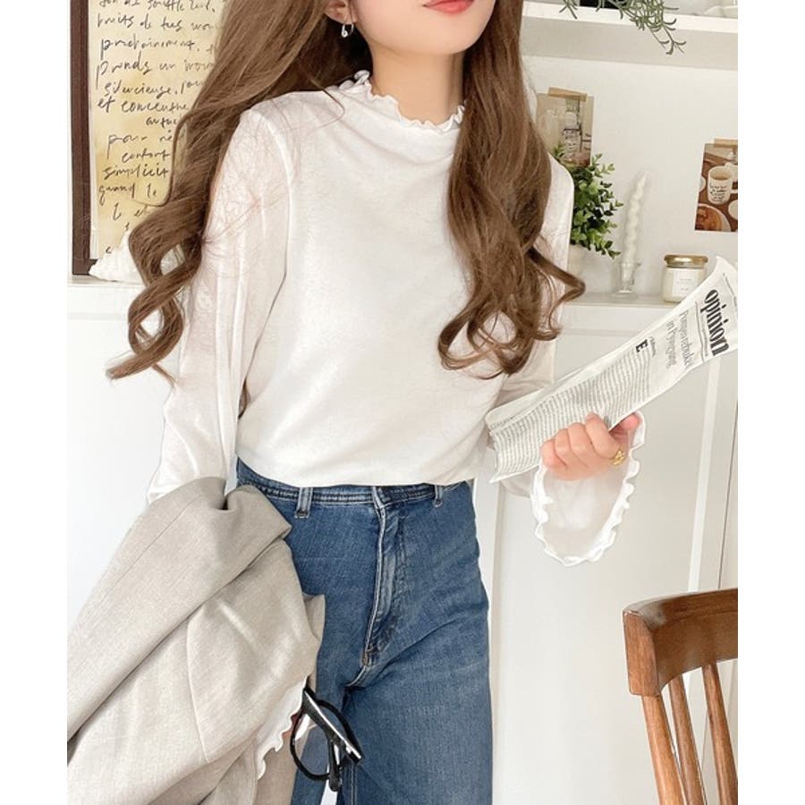 顔回りと手元を大人可愛く演出する、メローフリルが魅力の