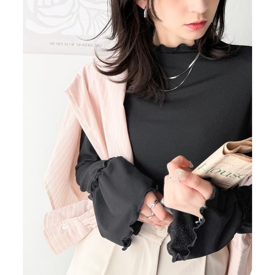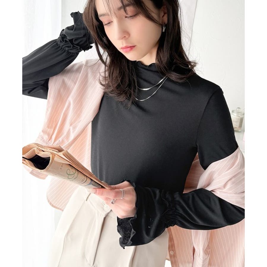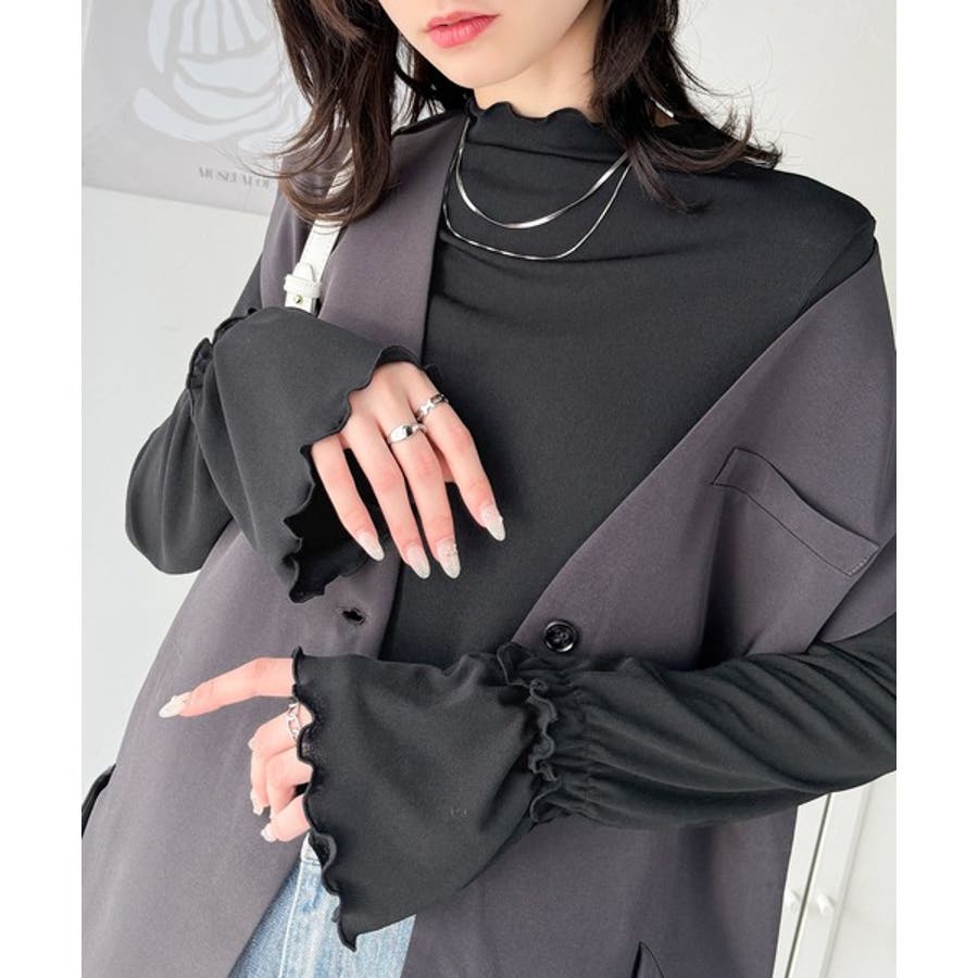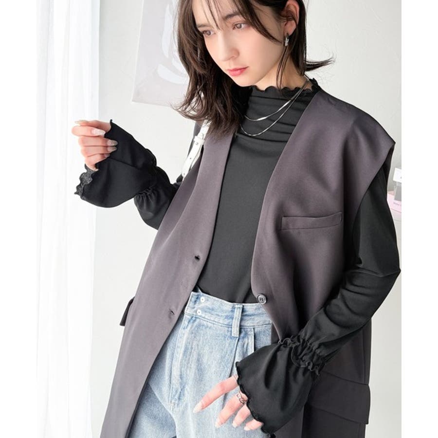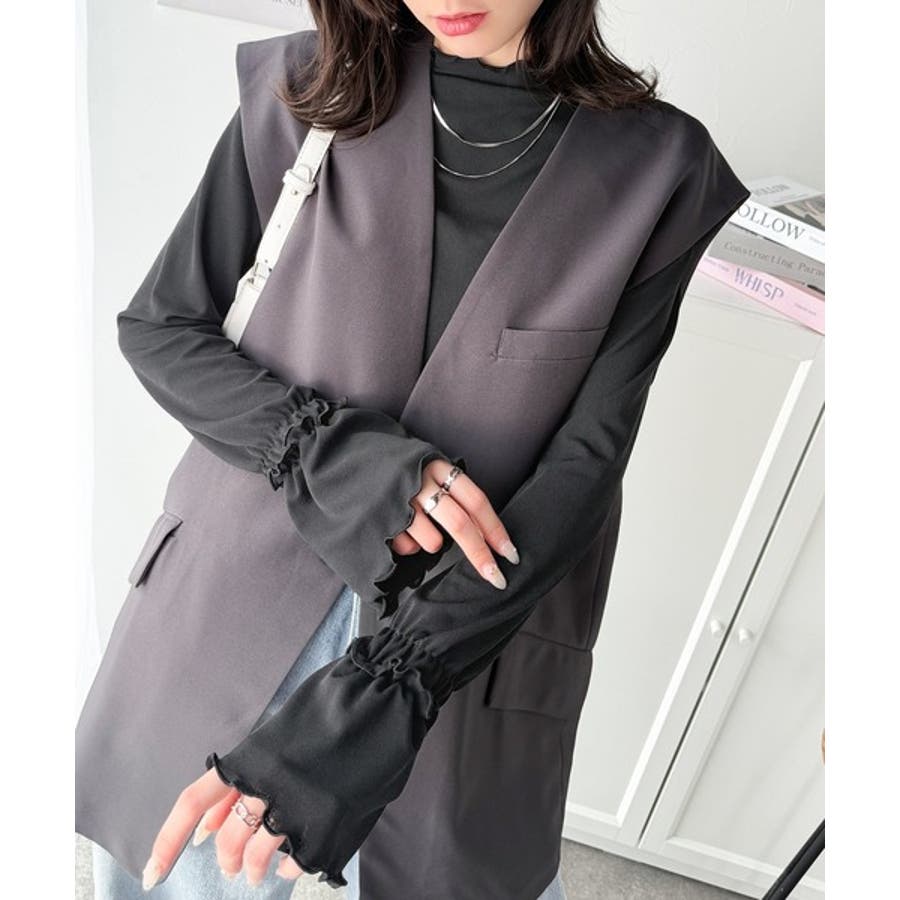 とのレイヤードで、首元と袖口からフリルをのぞかせれば