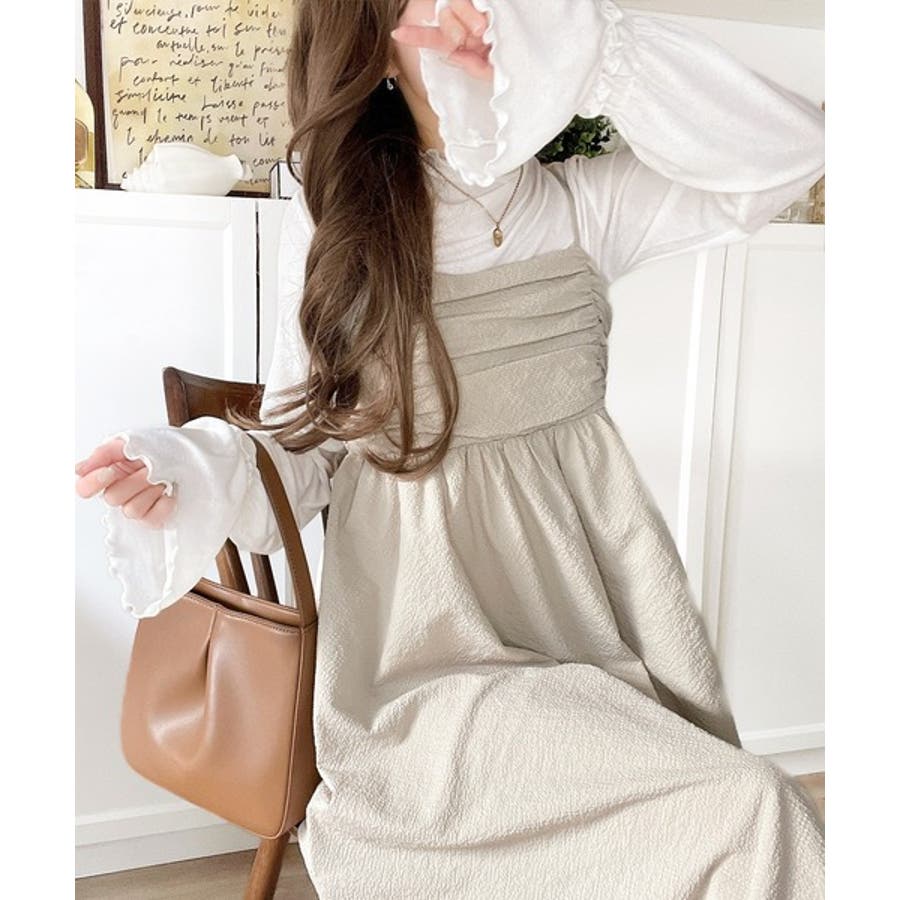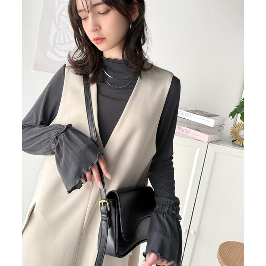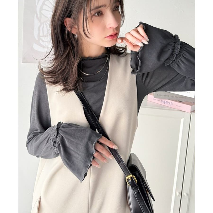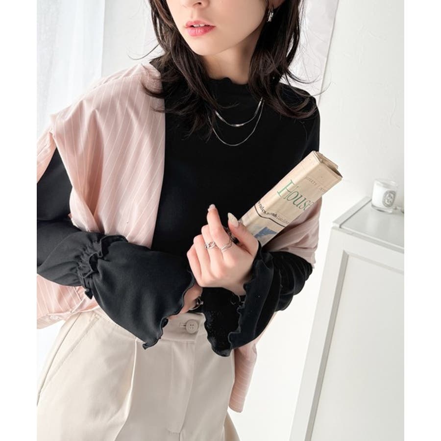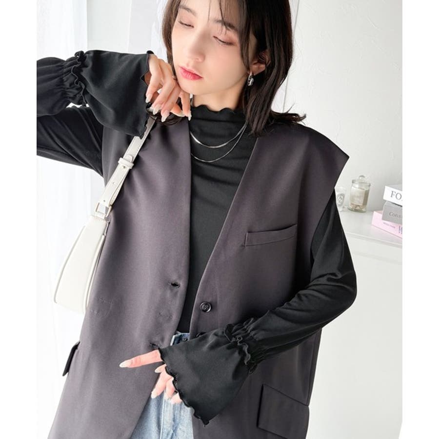 とのレイヤードで、首元と袖口からフリルをのぞかせれば