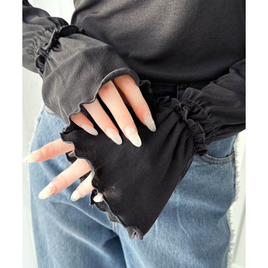 透け感があって重ね着のインナーに可愛いかなぁと購入しましたが、袖が長すぎる。キャンディースリーブの手首でゴムは留まるものの、可愛いけどひらひら部分も長くて邪魔です。気にならない方には良いかと!