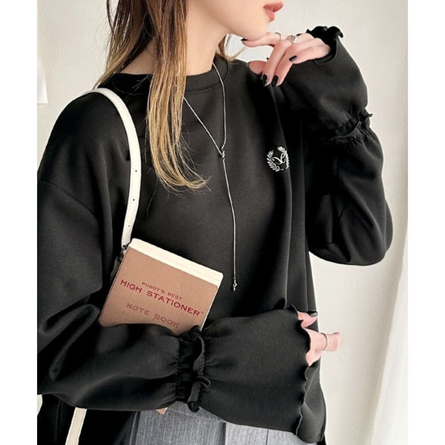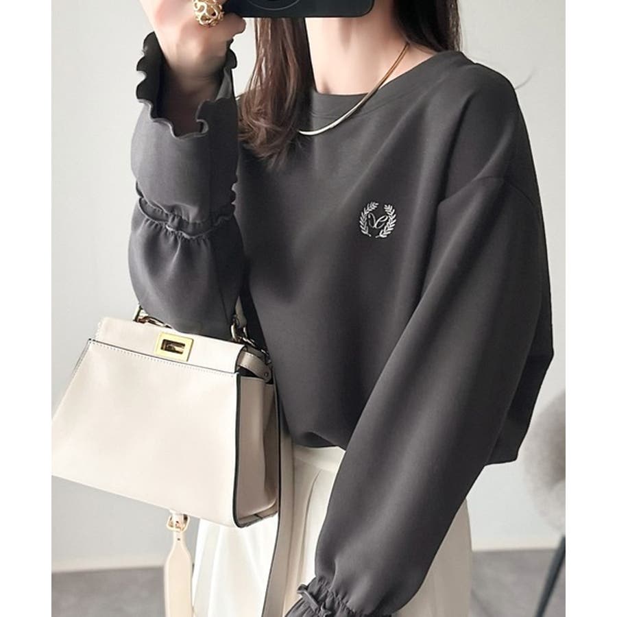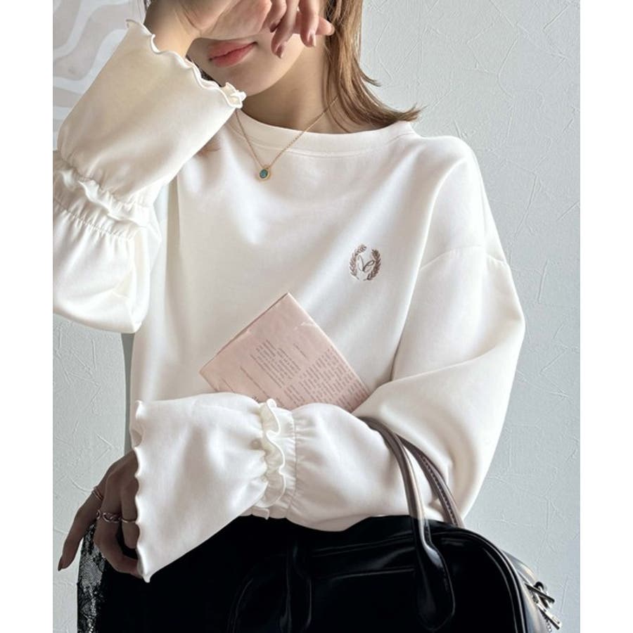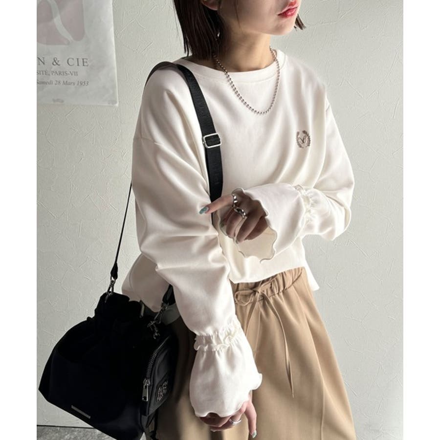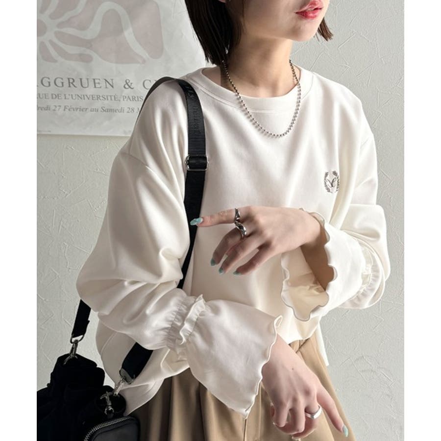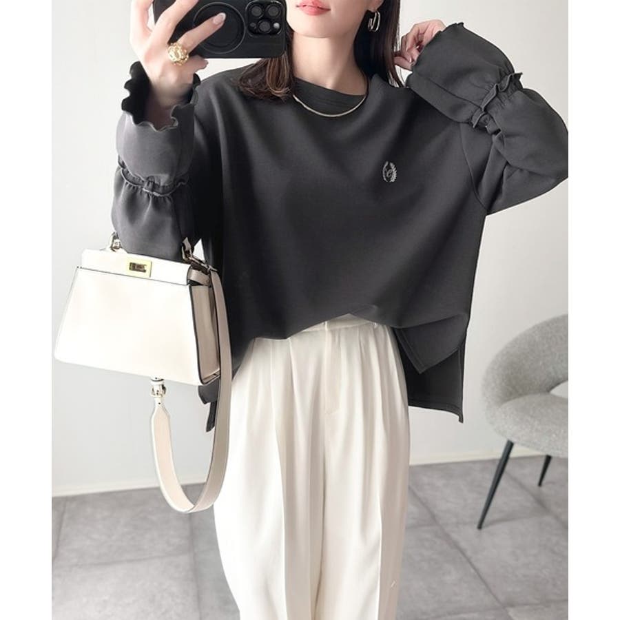 胸元のワンポイントロゴ刺繍とトレンドのキャンディースリーブが、