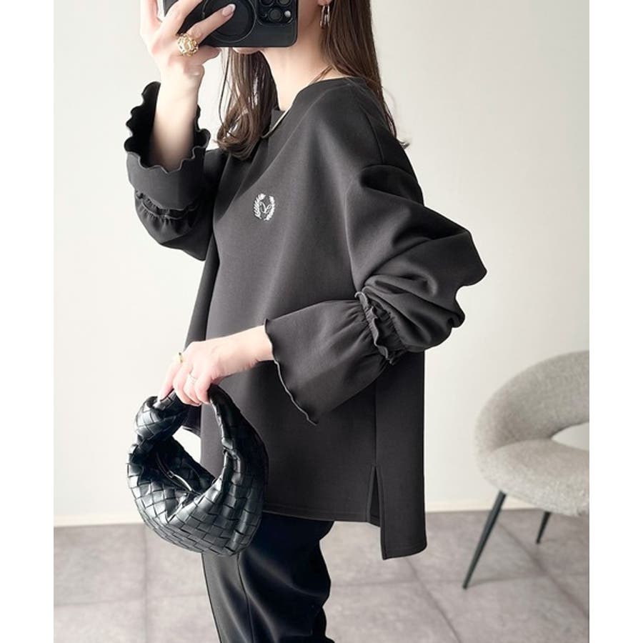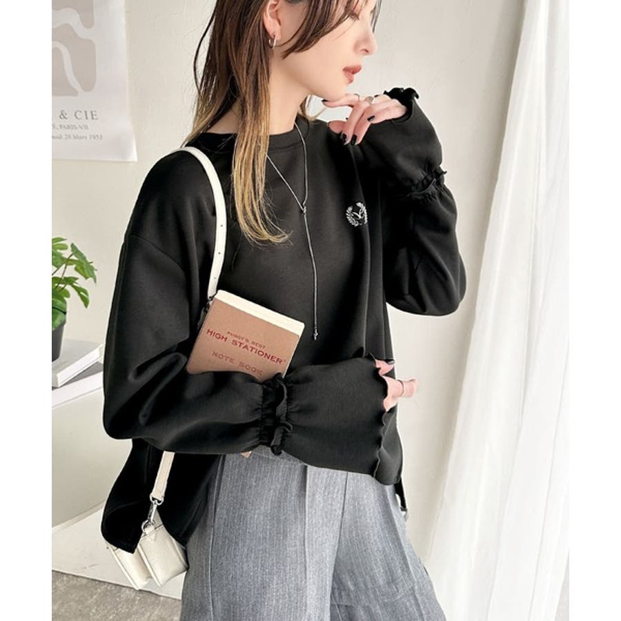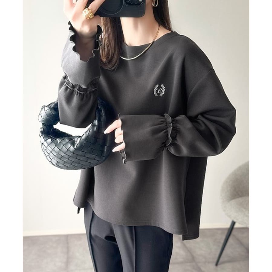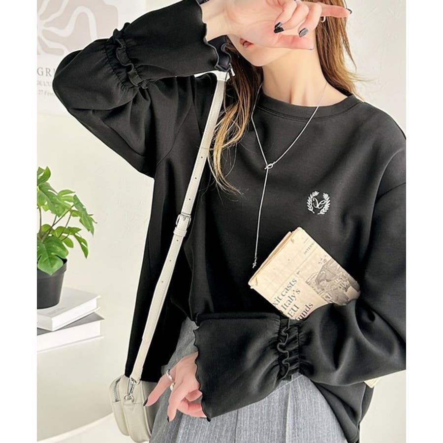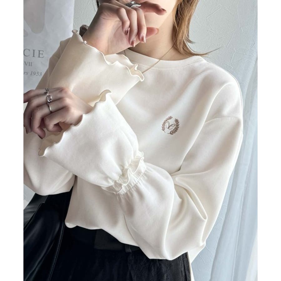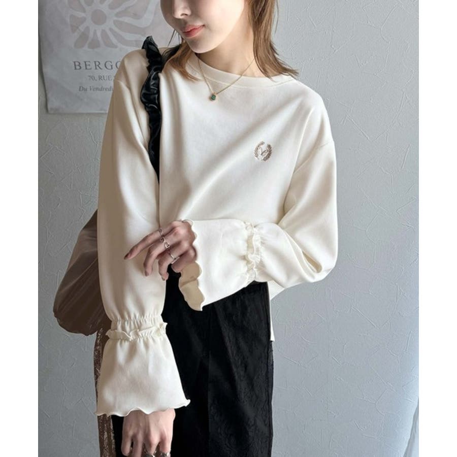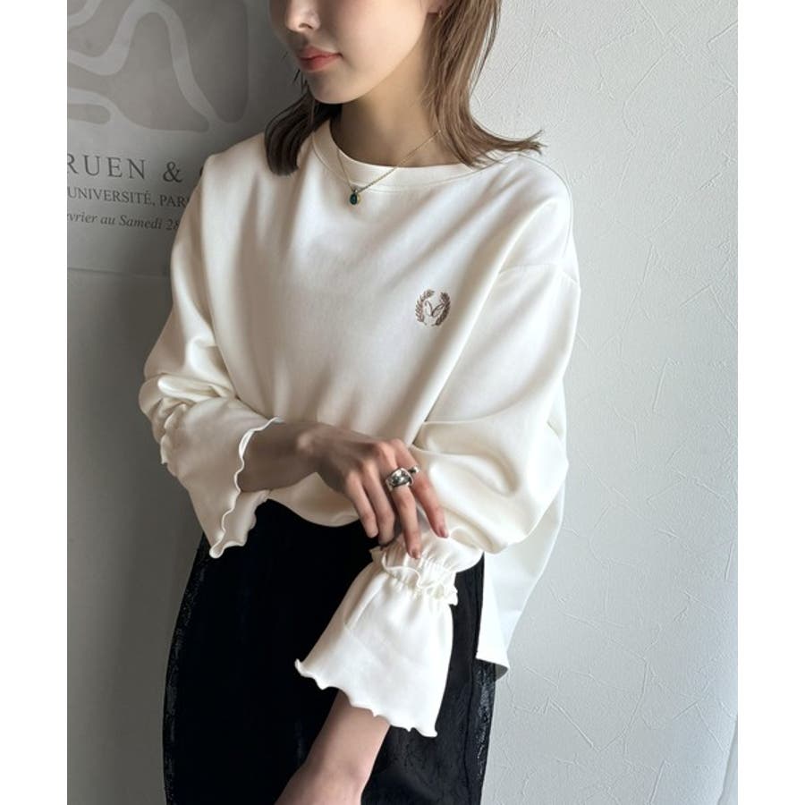 胸元のワンポイントロゴ刺繍とトレンドのキャンディースリーブが、