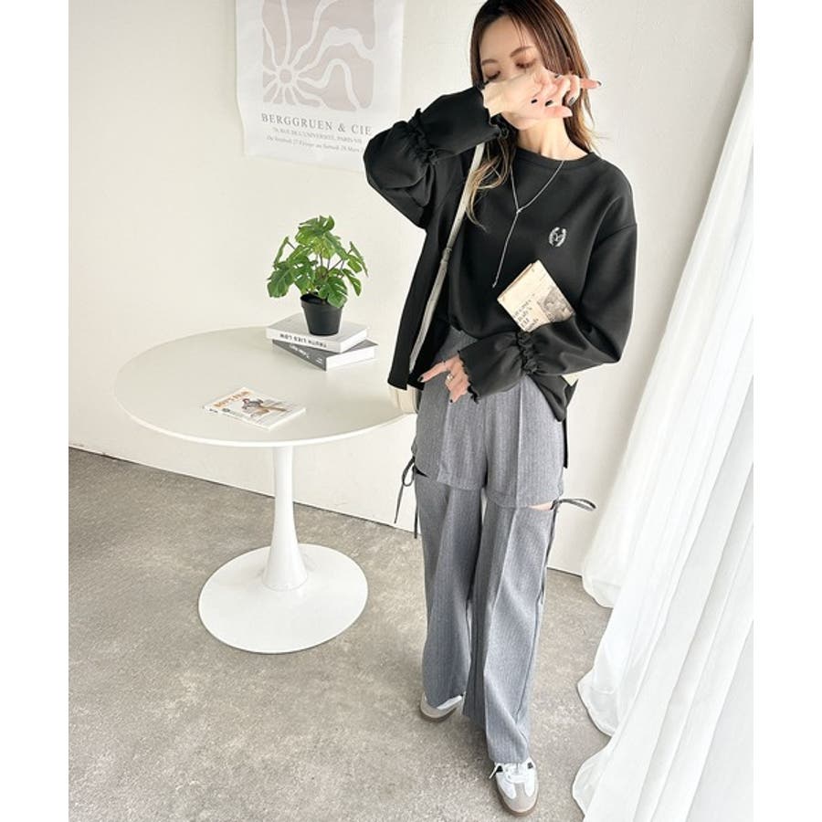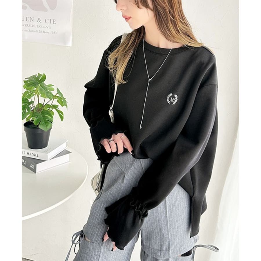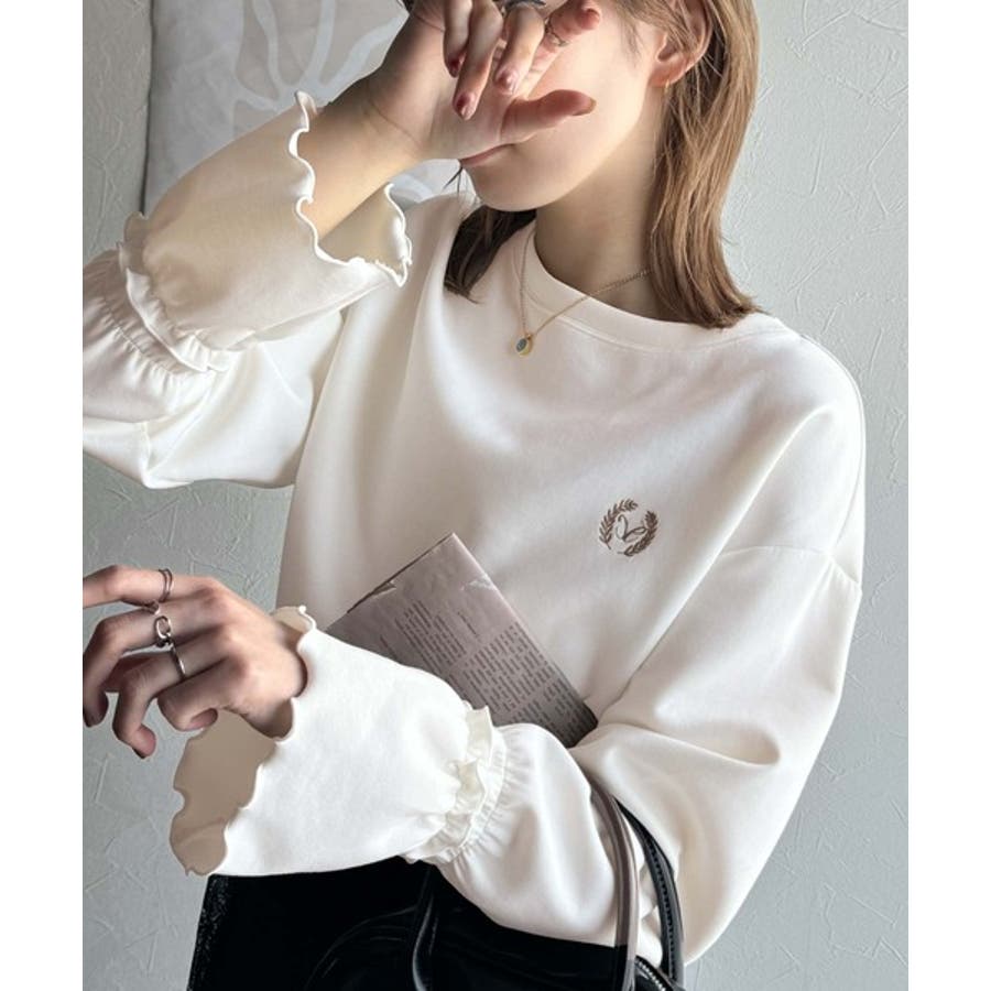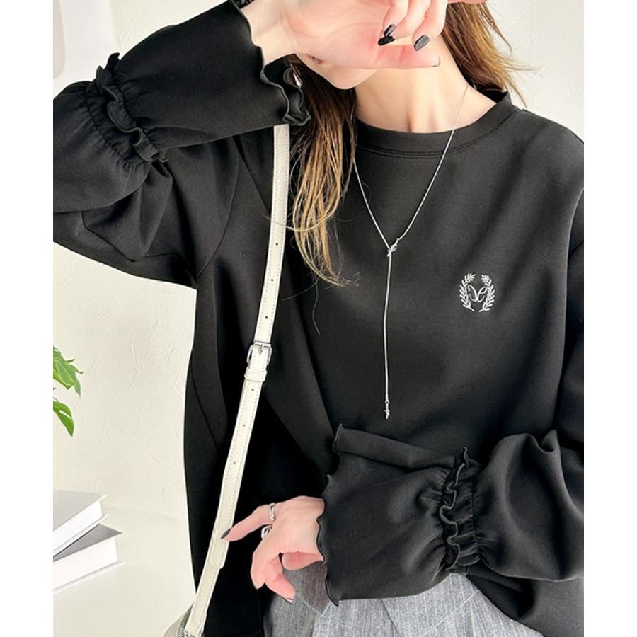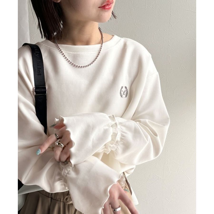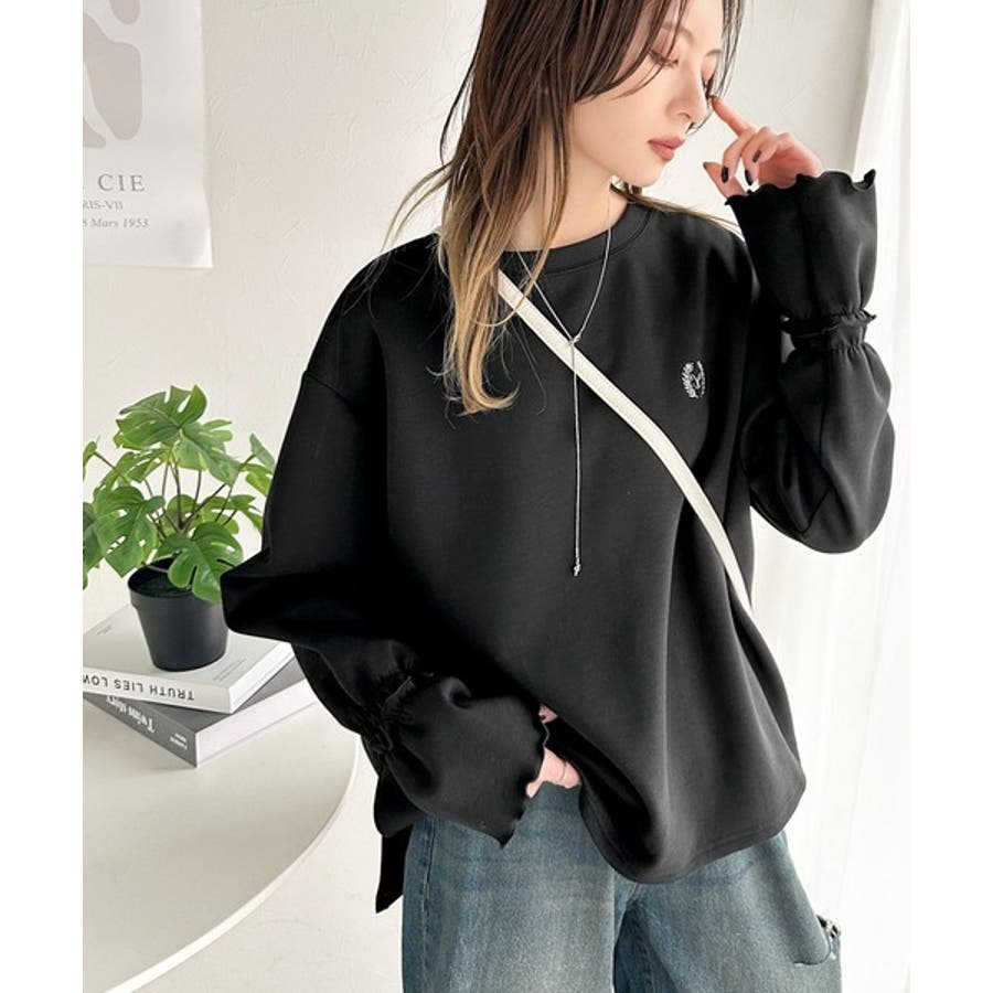 胸元のワンポイントロゴ刺繍とトレンドのキャンディースリーブが、