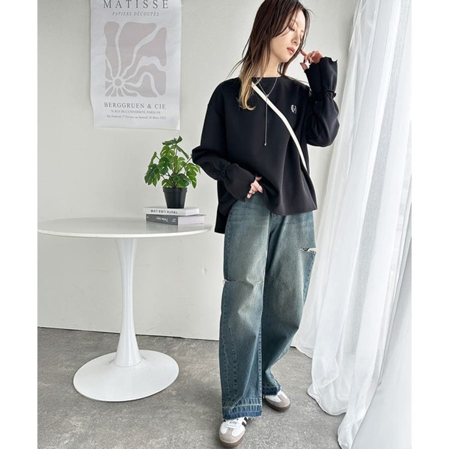 ワンポイントで魅せる大人可愛い。ワンポイントロゴ刺繍キャンディースリーブダンボー…