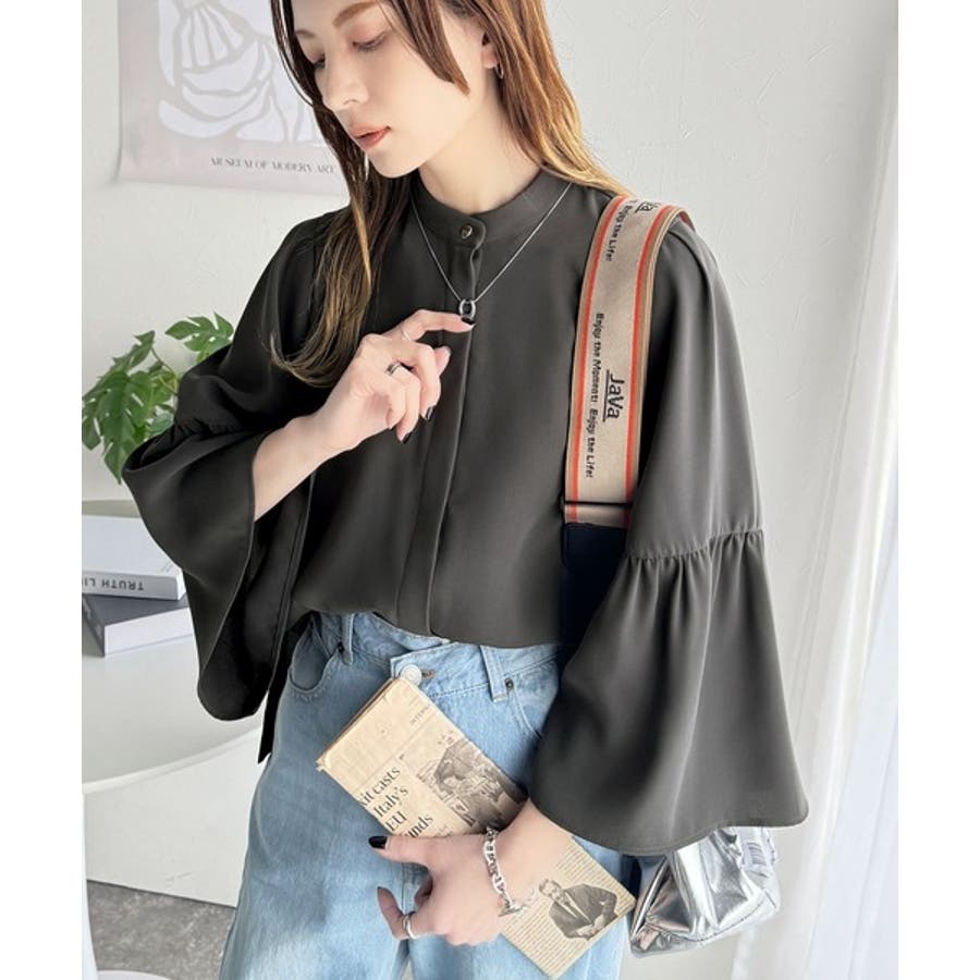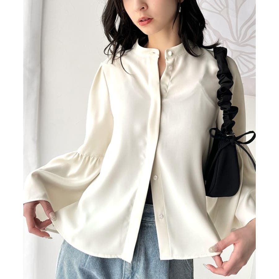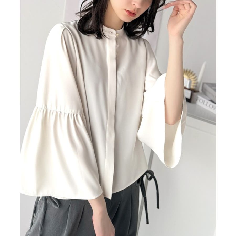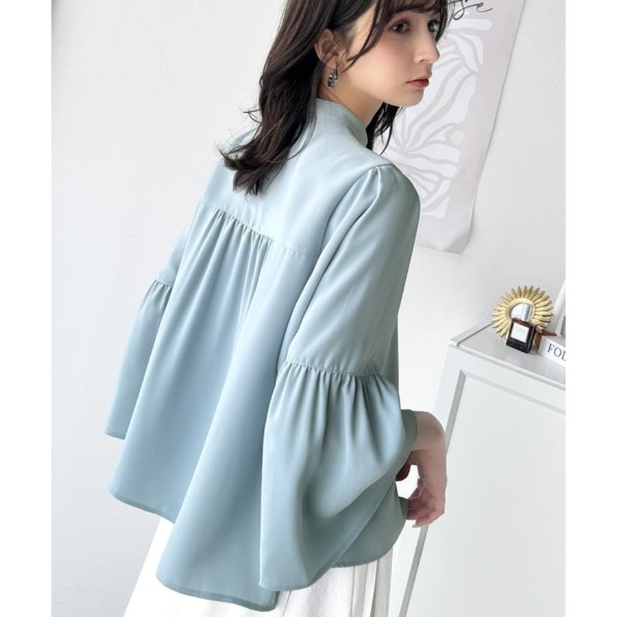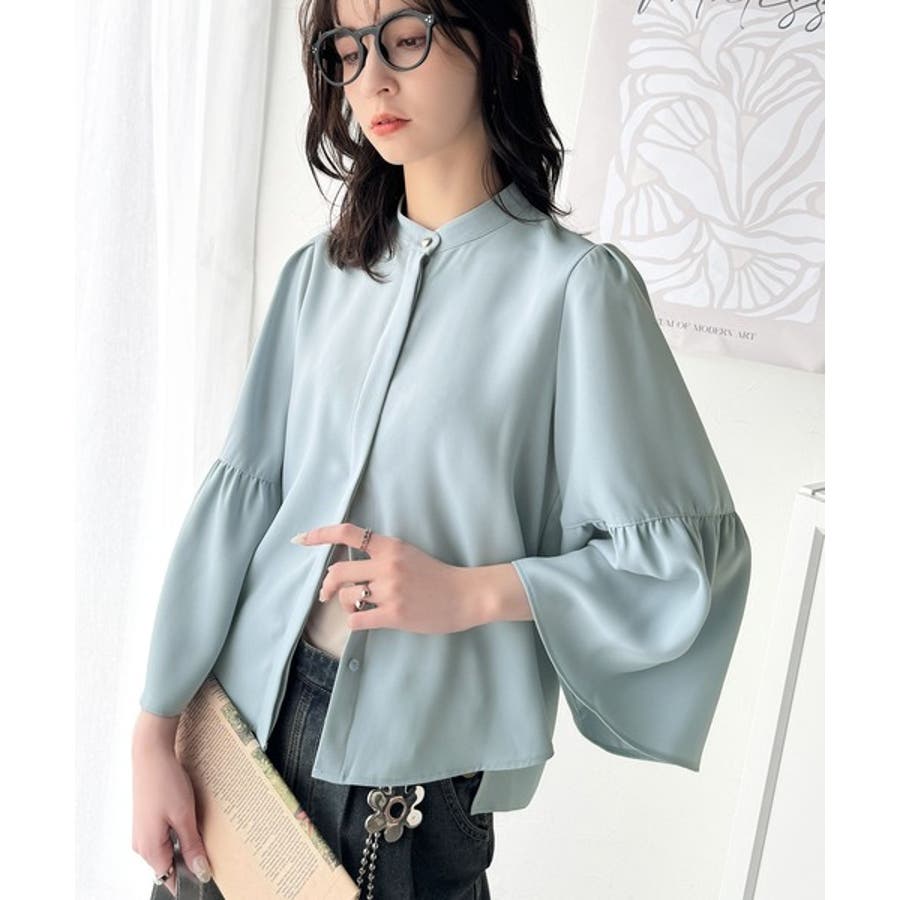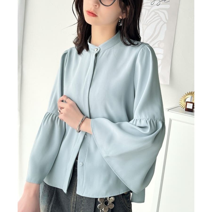 360度可愛い♪フレアスリーブバンドカラーブラウス(長袖)