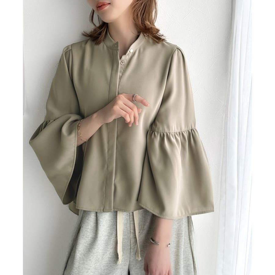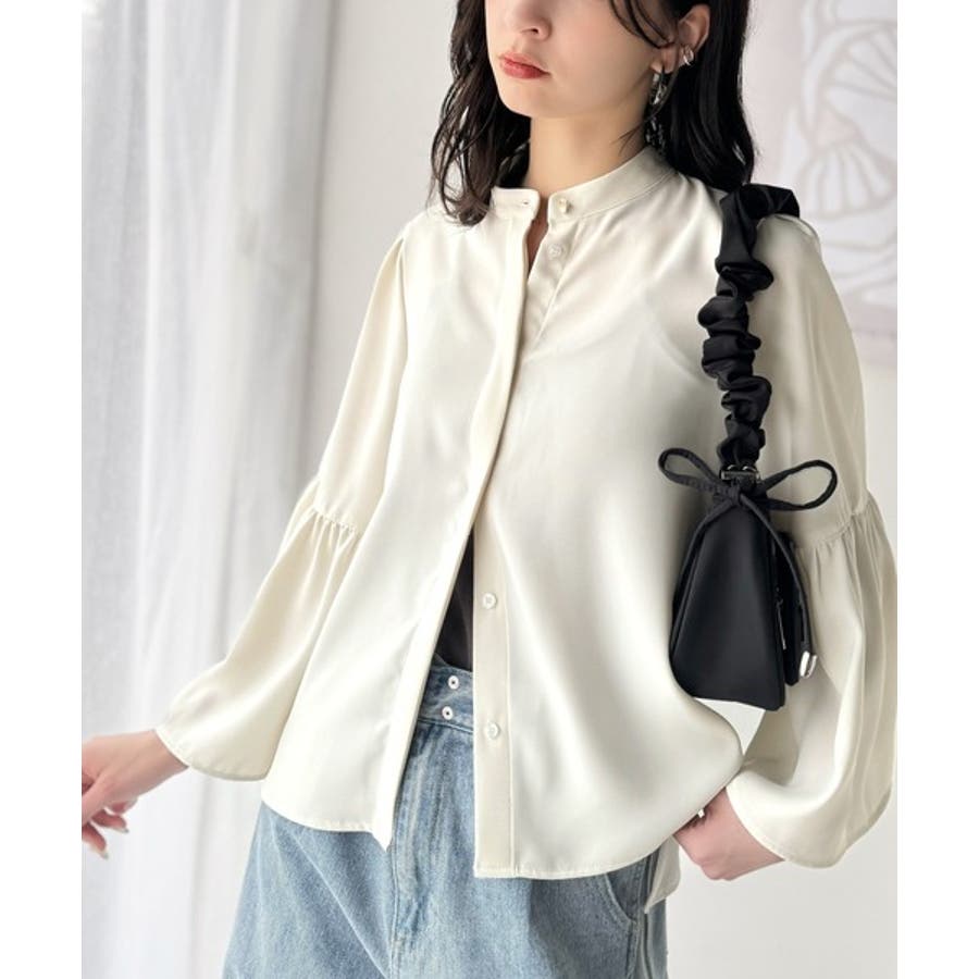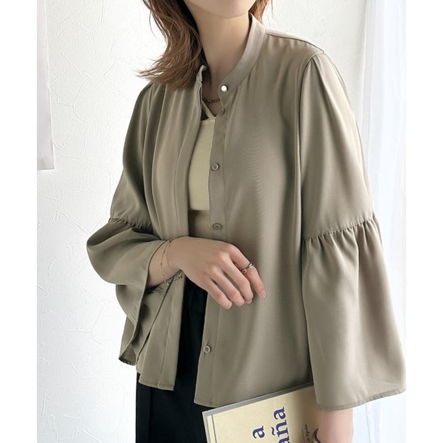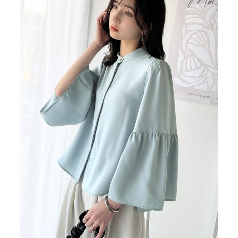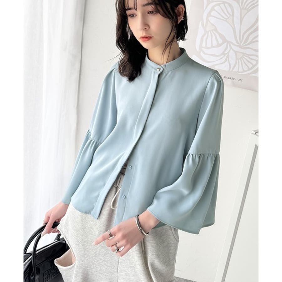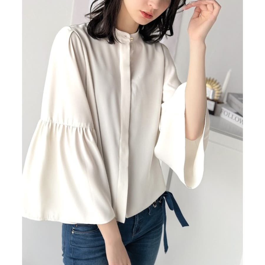 360度可愛い♪フレアスリーブバンドカラーブラウス(長袖)