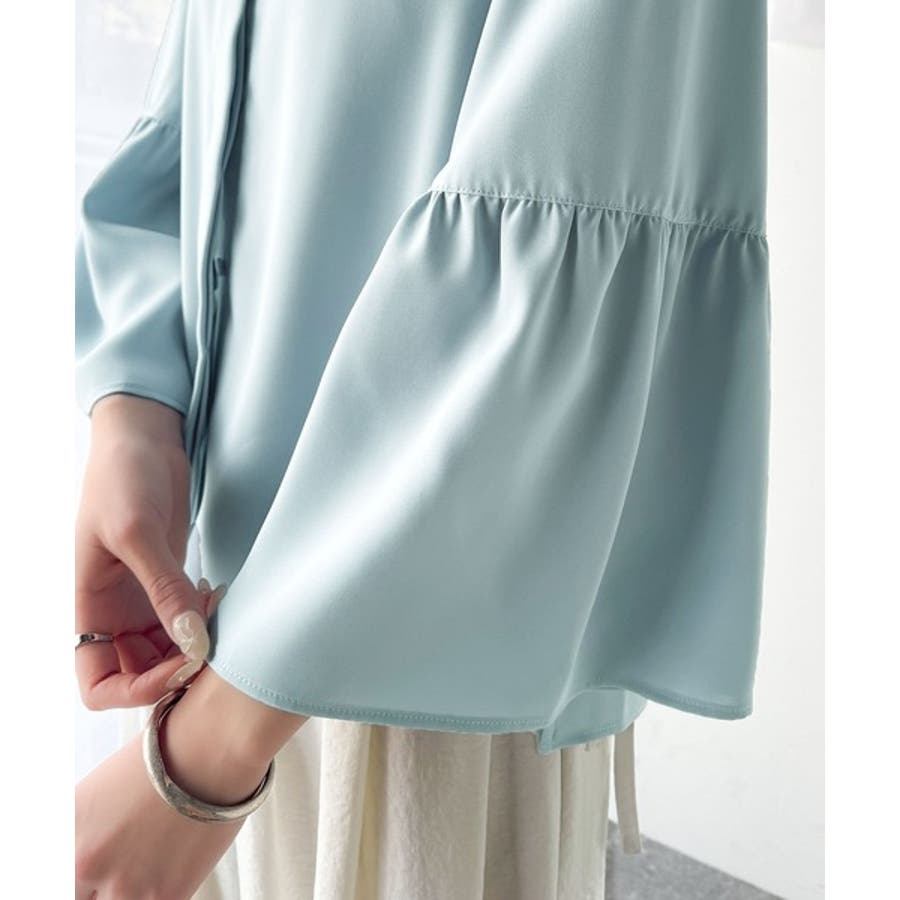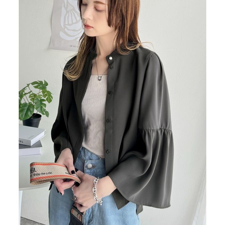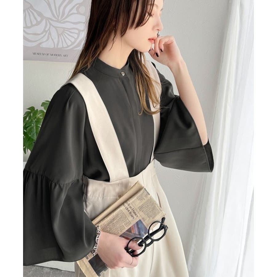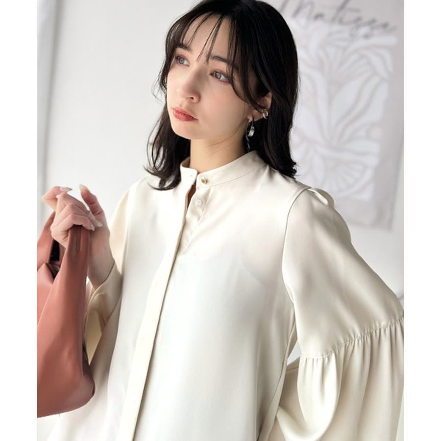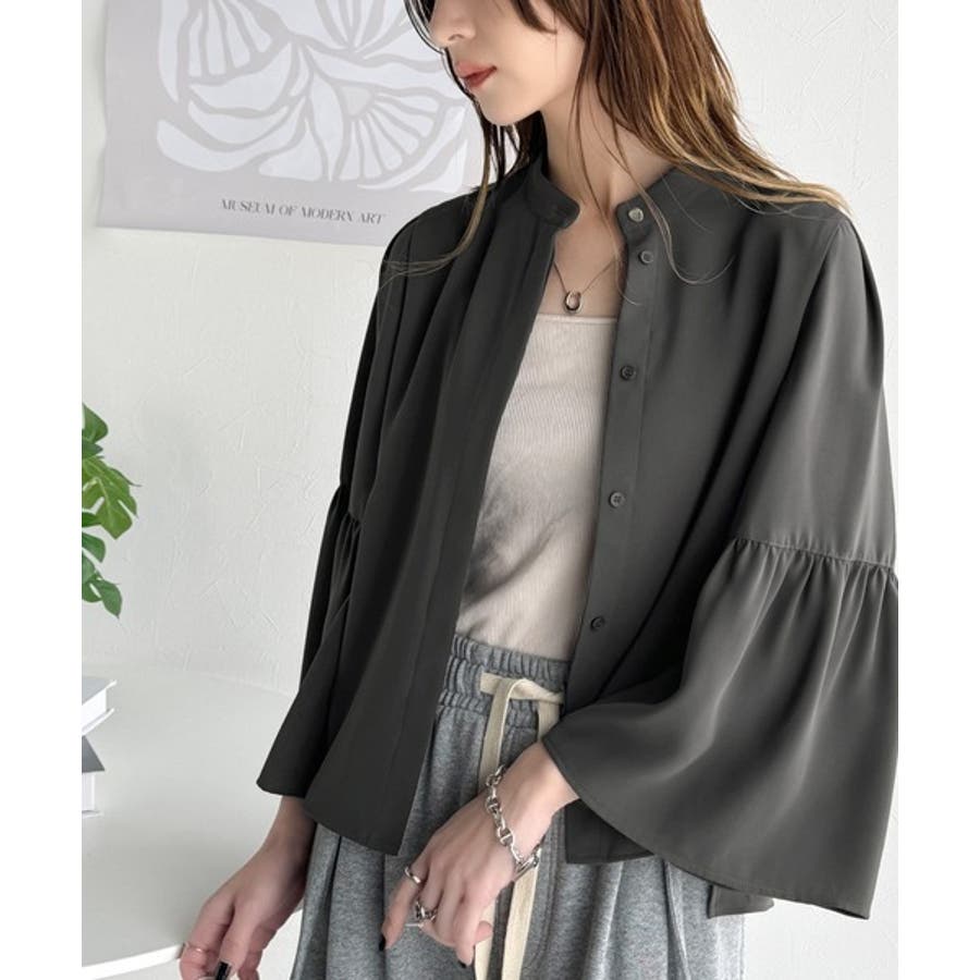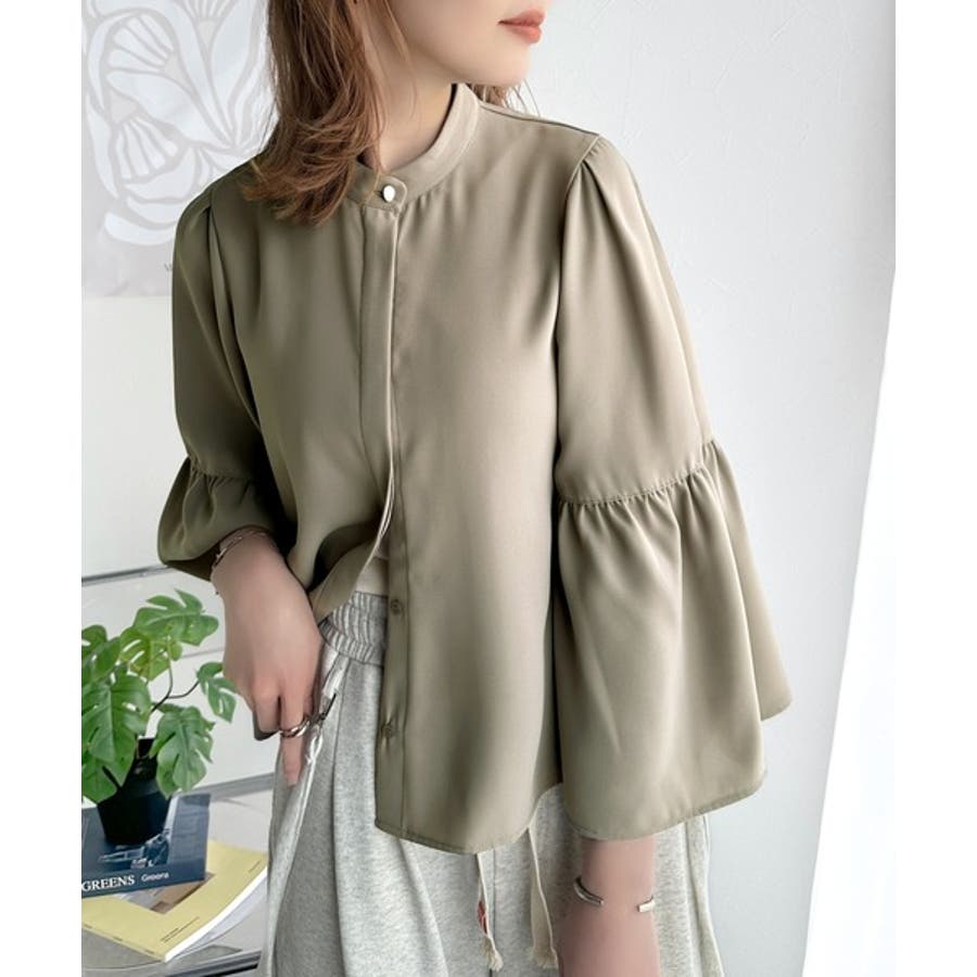 360度可愛い♪フレアスリーブバンドカラーブラウス(長袖)