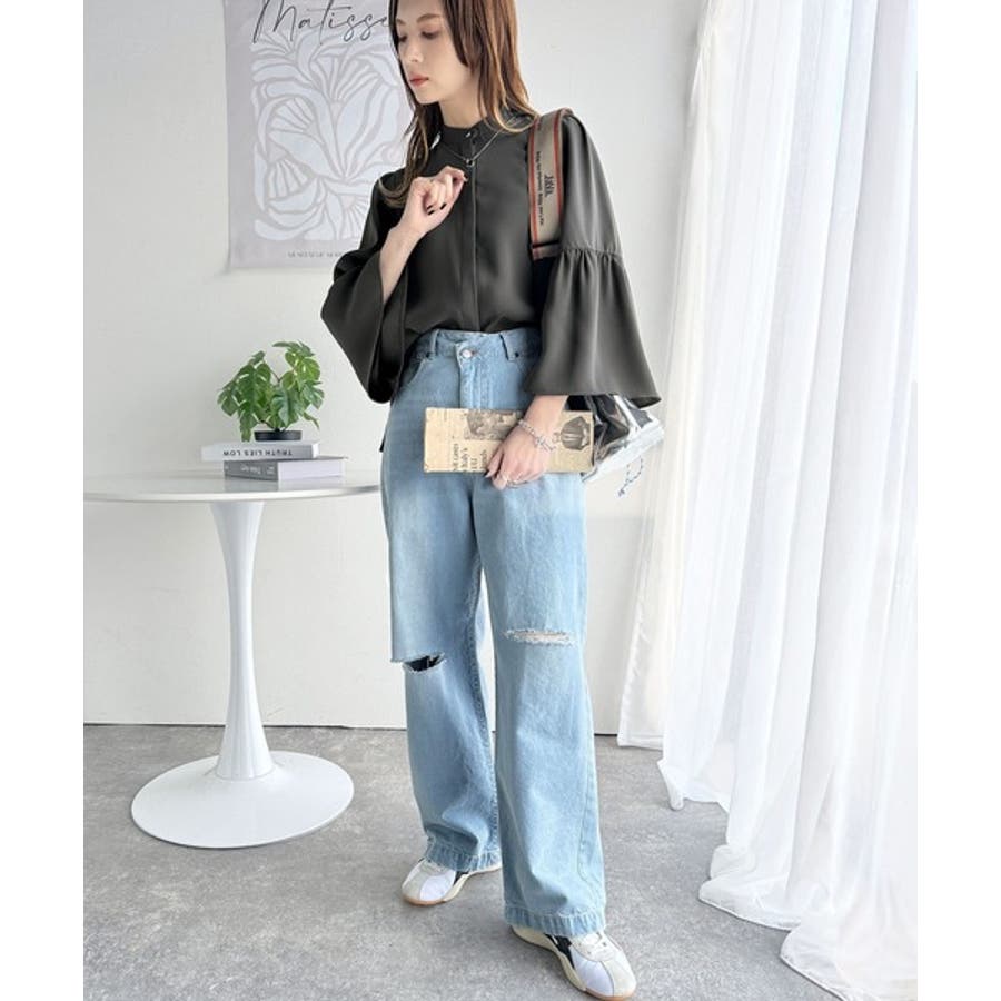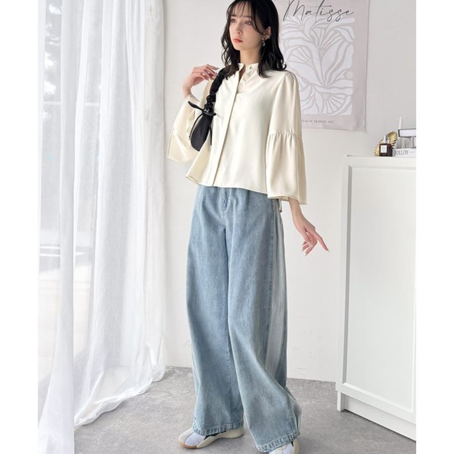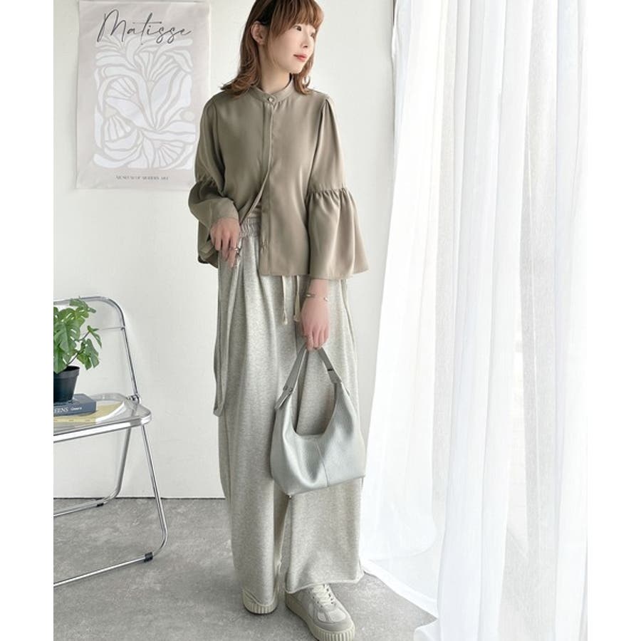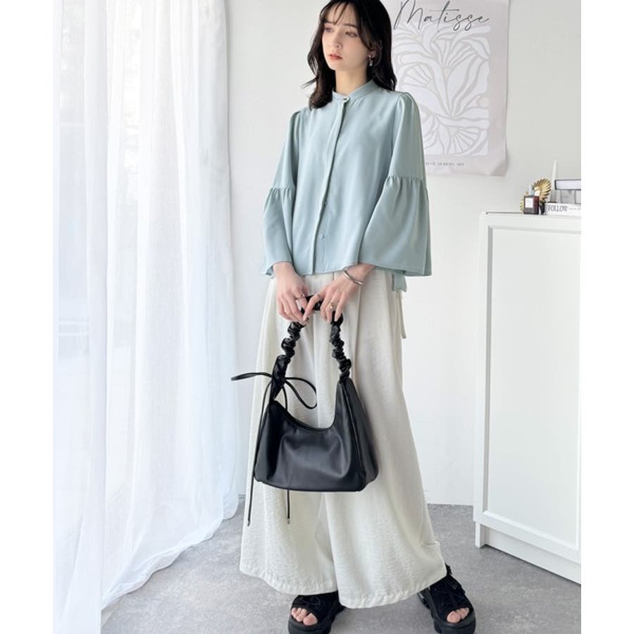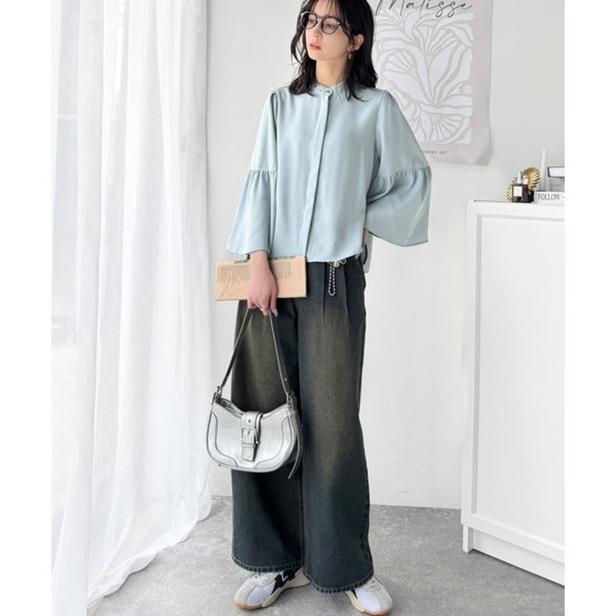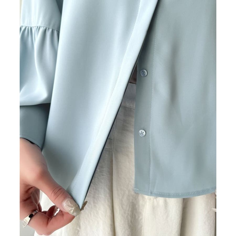 360度可愛い♪フレアスリーブバンドカラーブラウス(長袖)