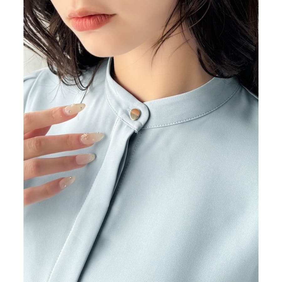 スッキリとしたバンドカラーとフレアスリーブで