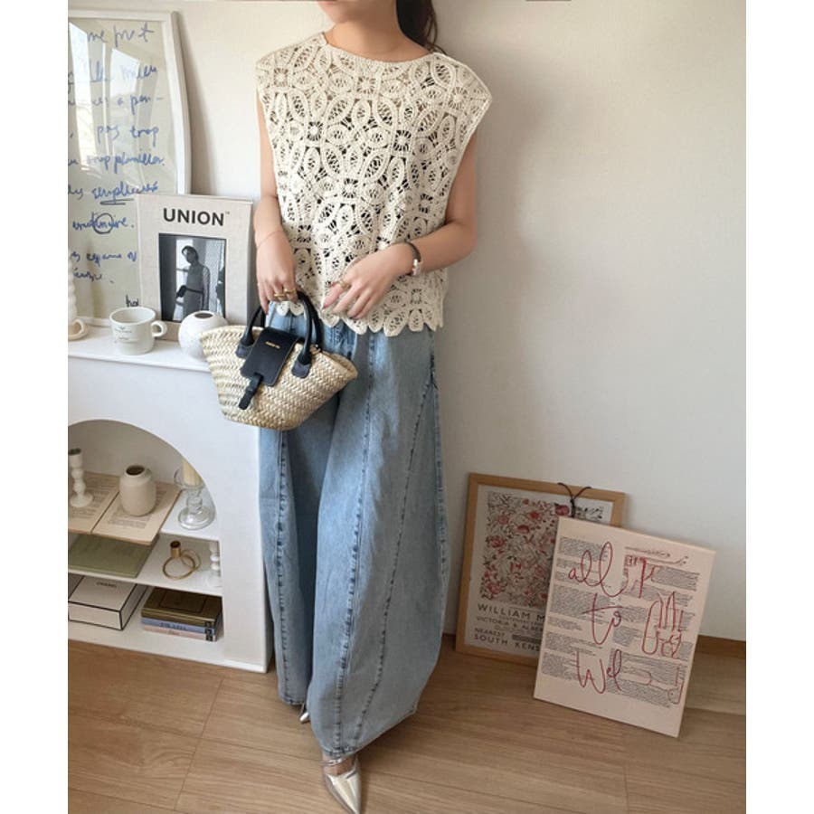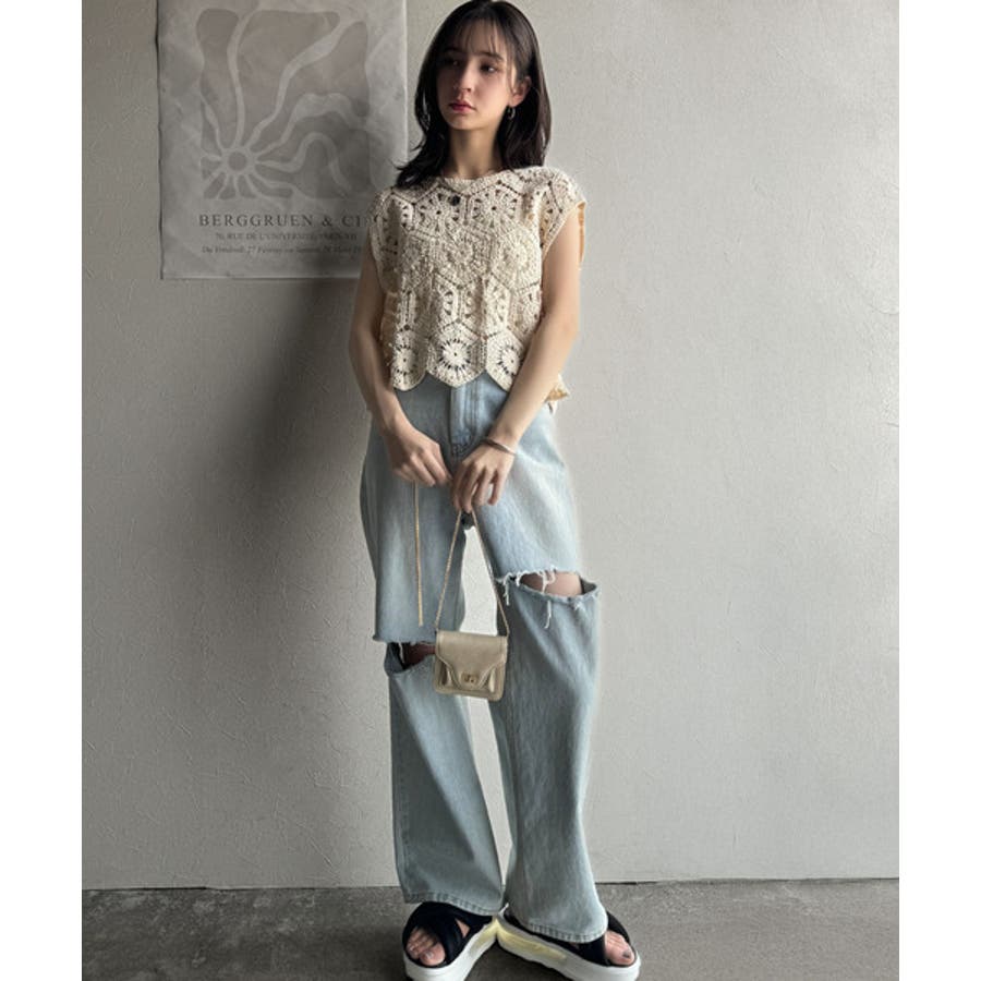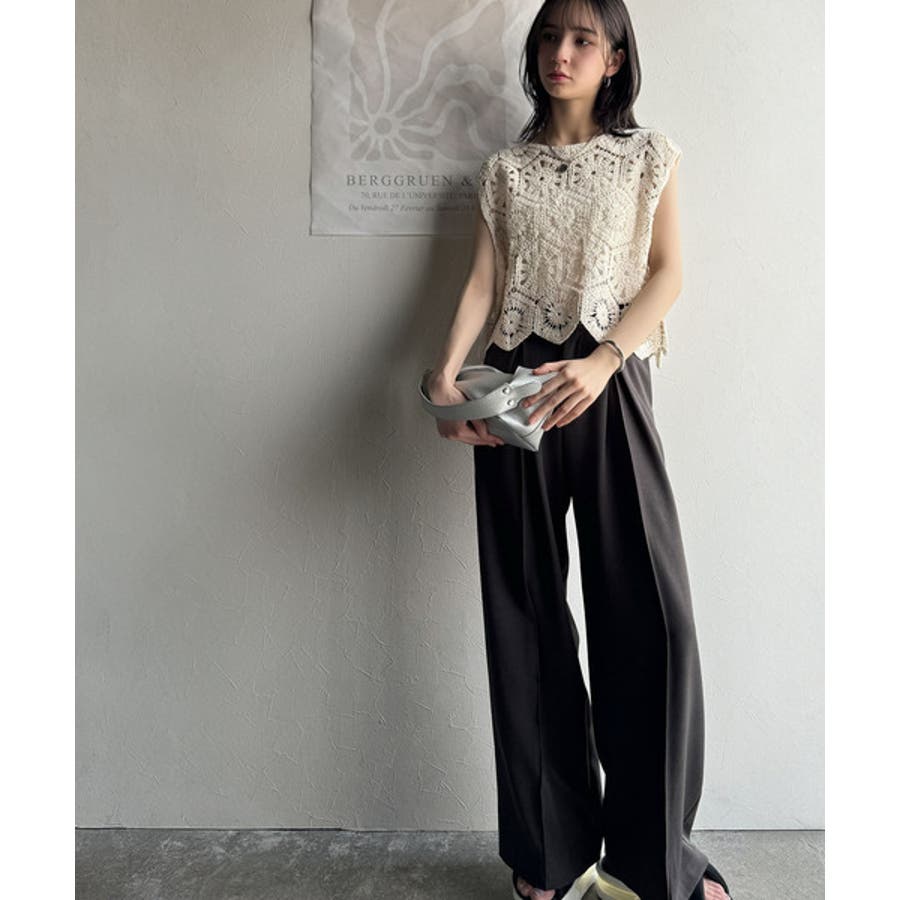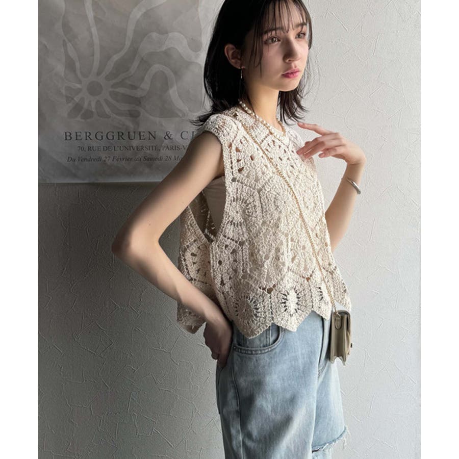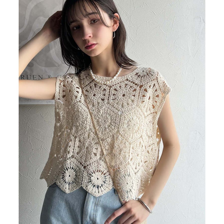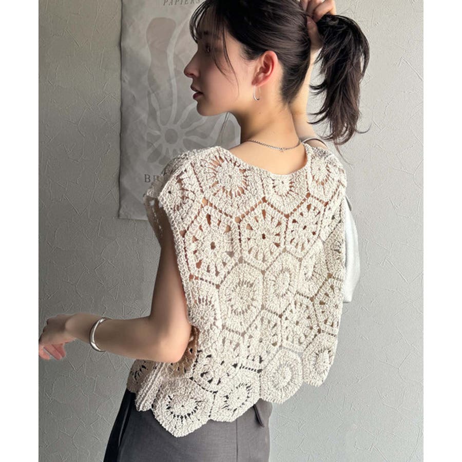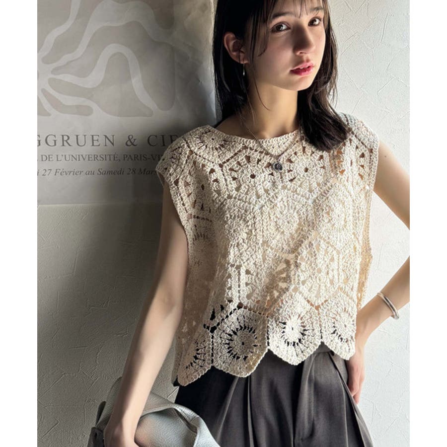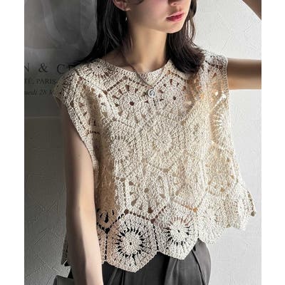 トレンドの鍵編みが、モードな魅力を演出!
