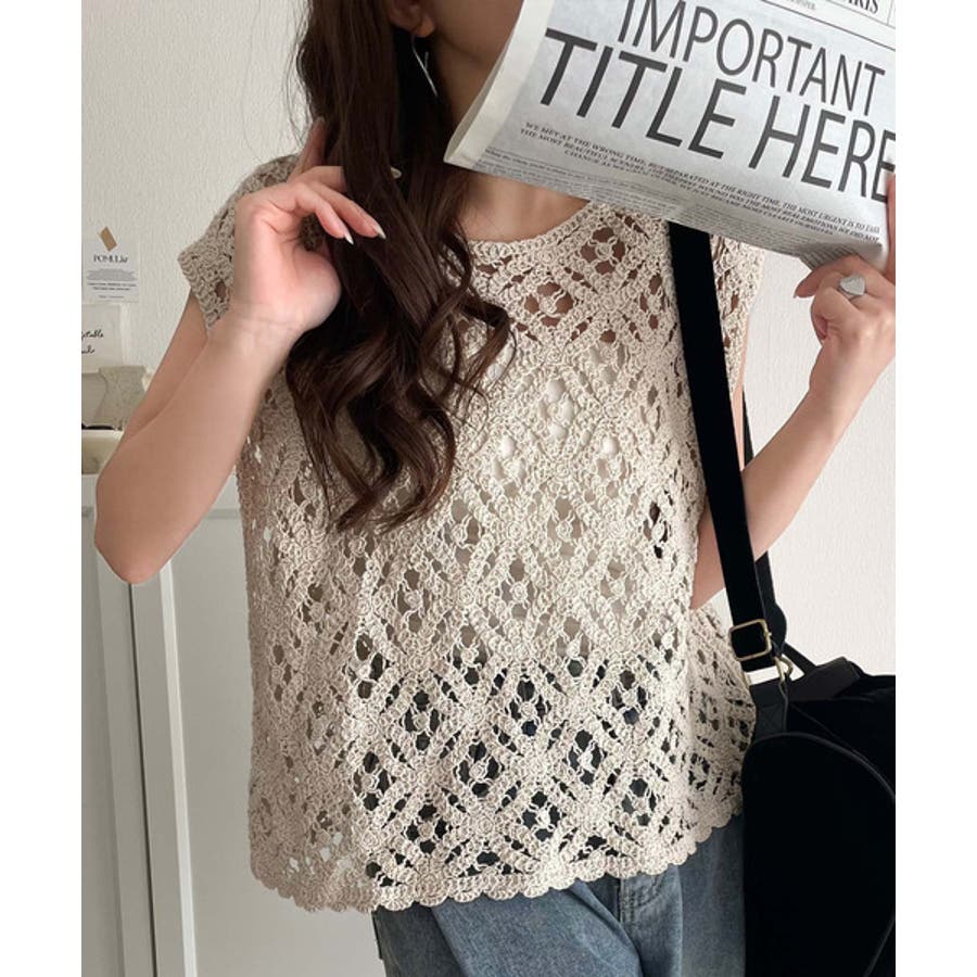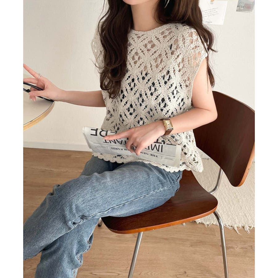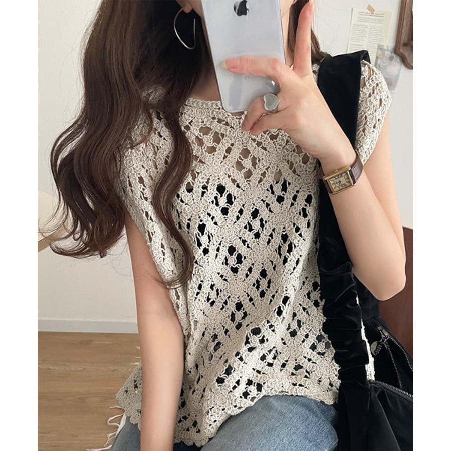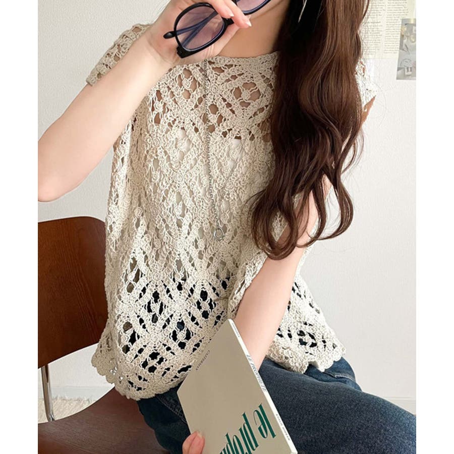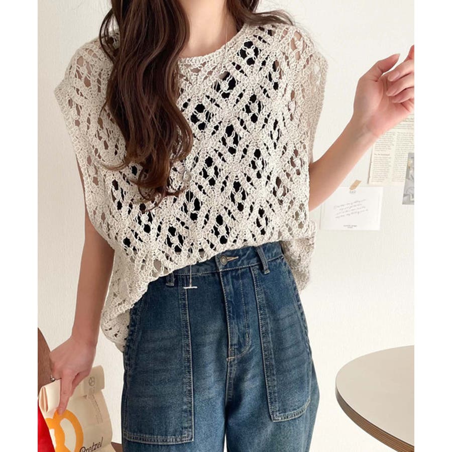 このアイテムは、見え過ぎない程よい透け感の編みデザインが