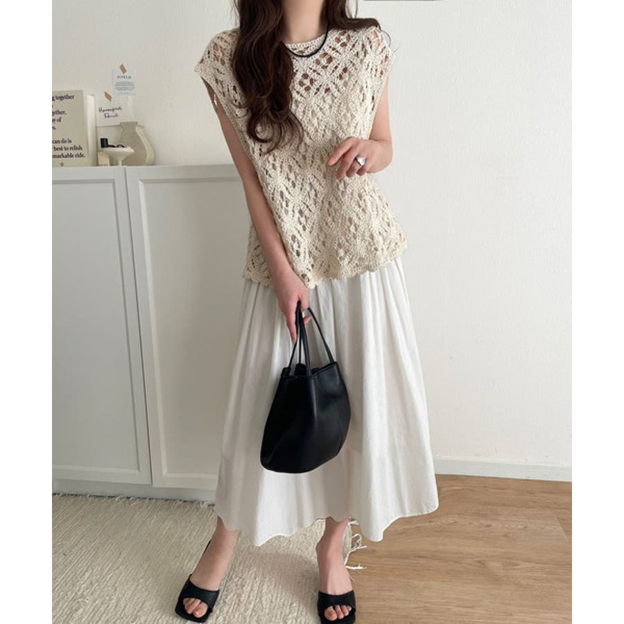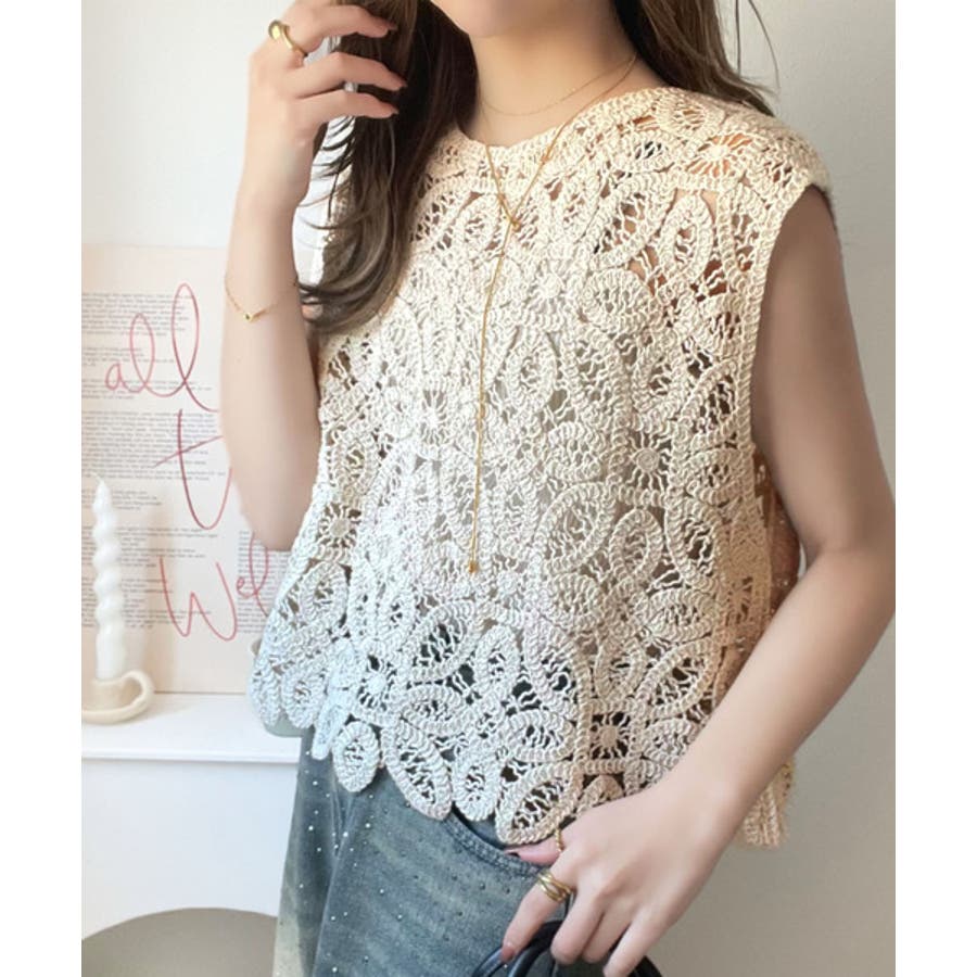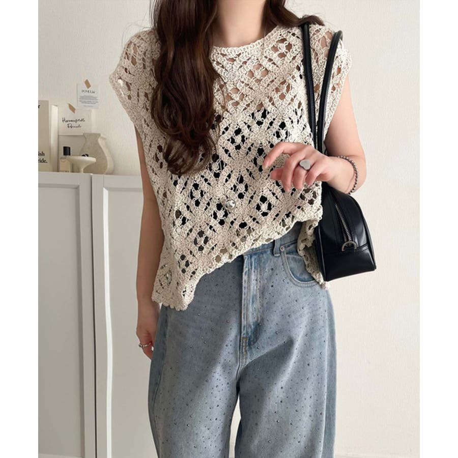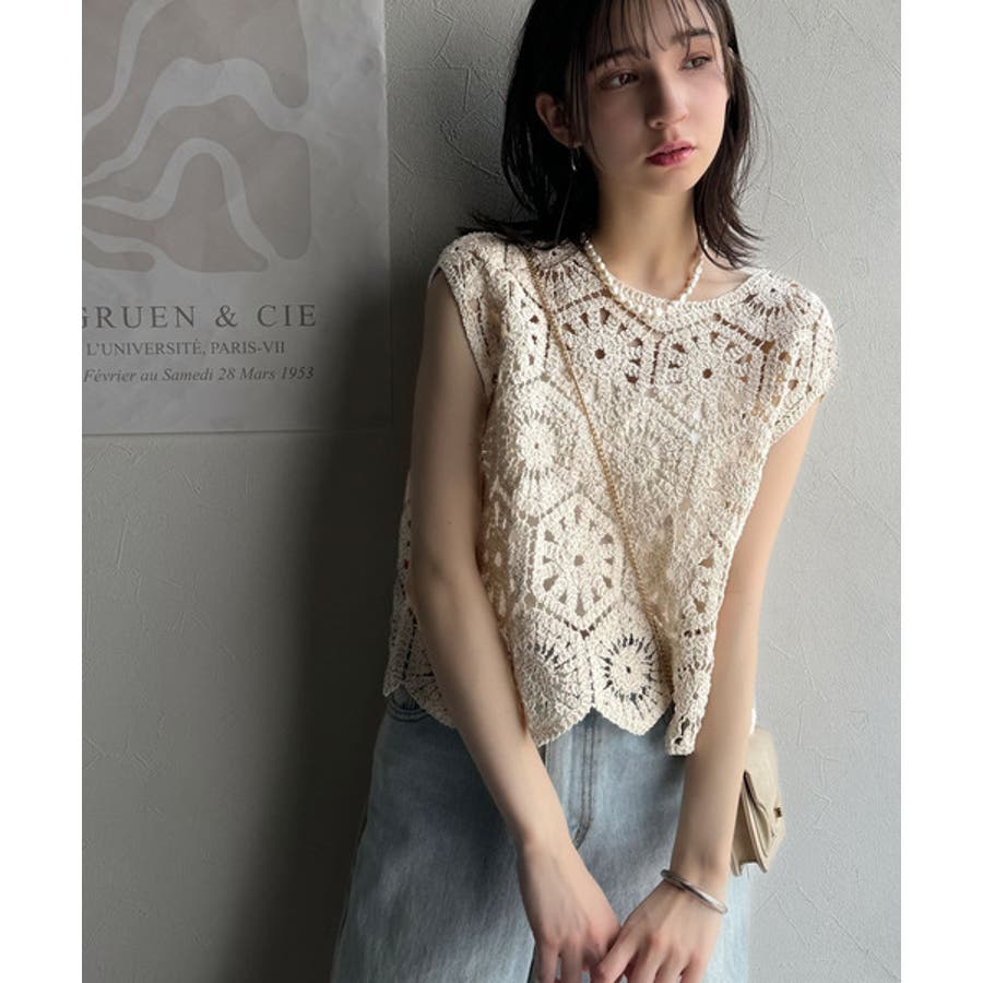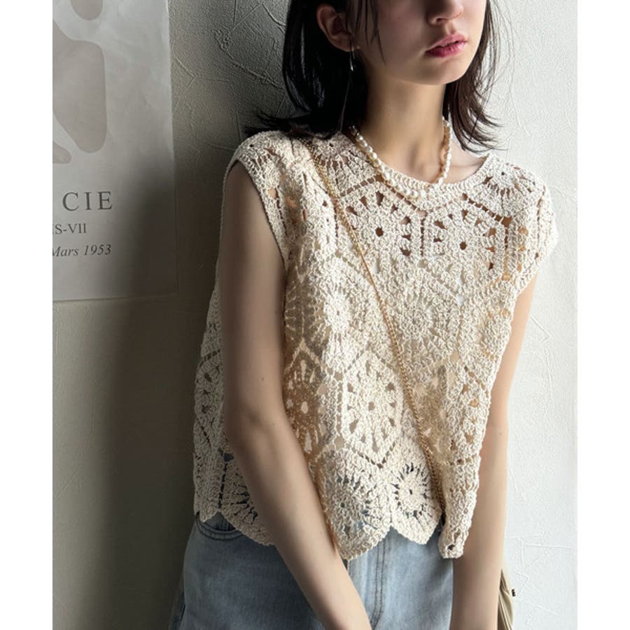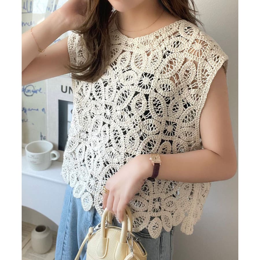 このアイテムは、見え過ぎない程よい透け感の編みデザインが